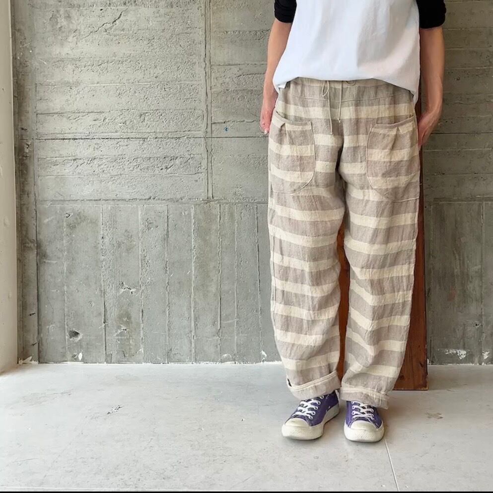 リネン50%、ラミーリネン50%のナチュラル感たっぷりの素材で仕立てた、ストレートパンツ。