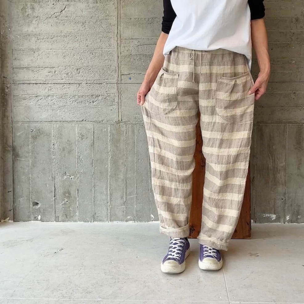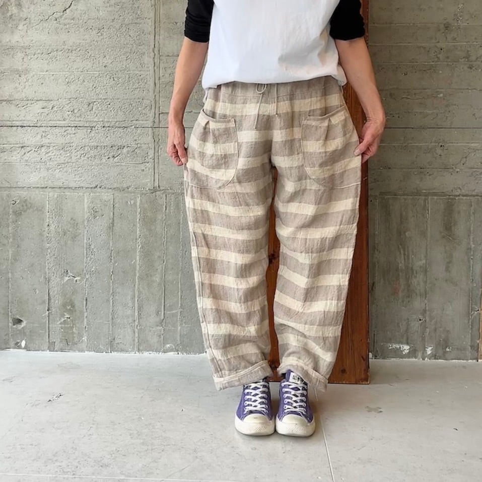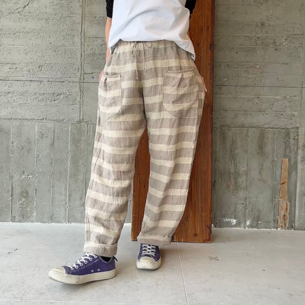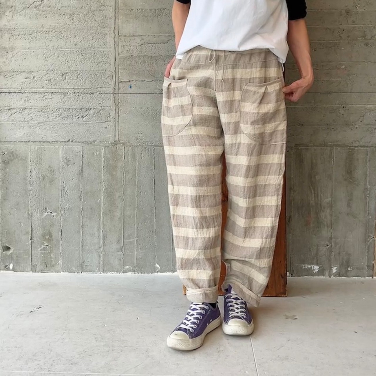 ナチュラルな配色の太めボーダー柄で、シンプルなトップスとも好相性です。
