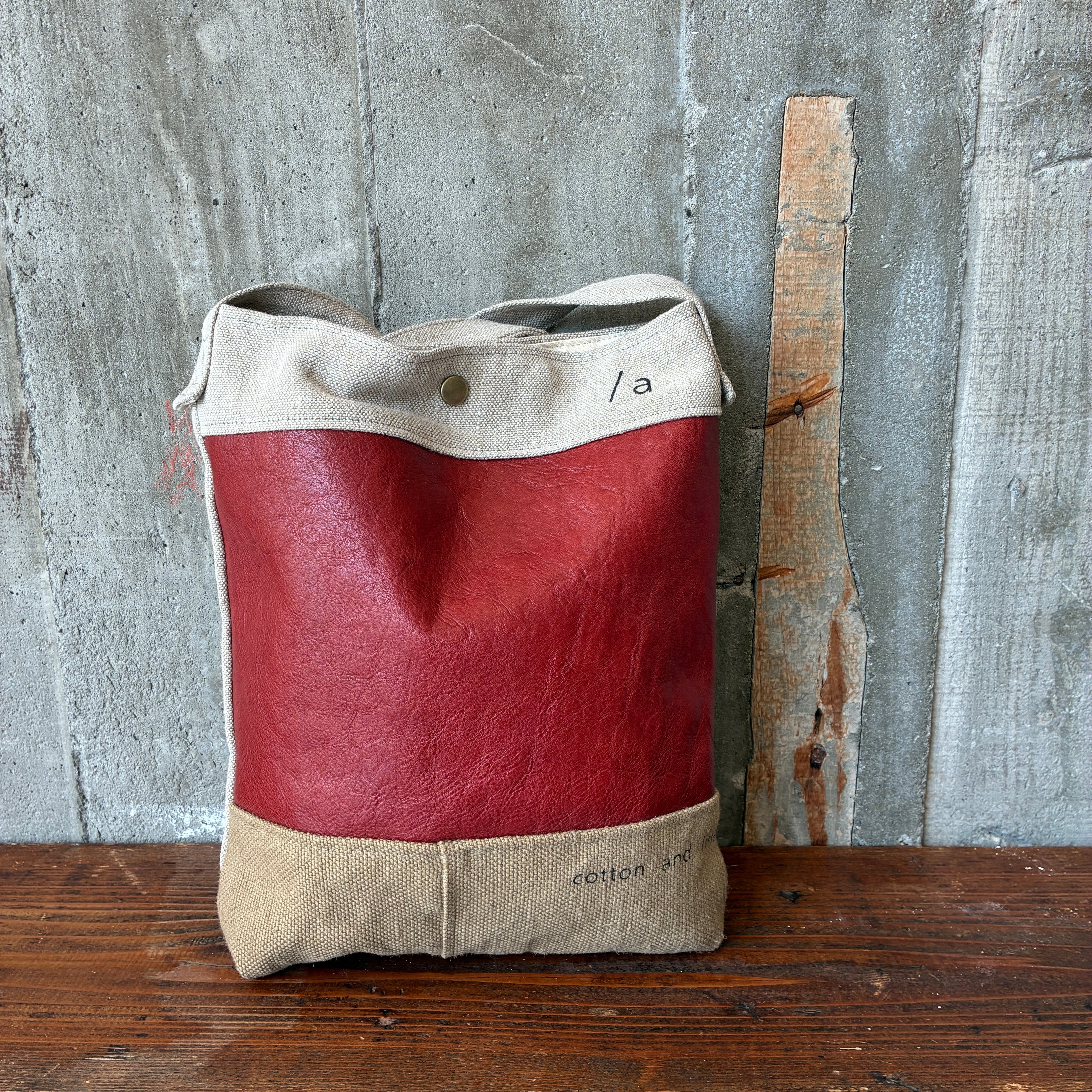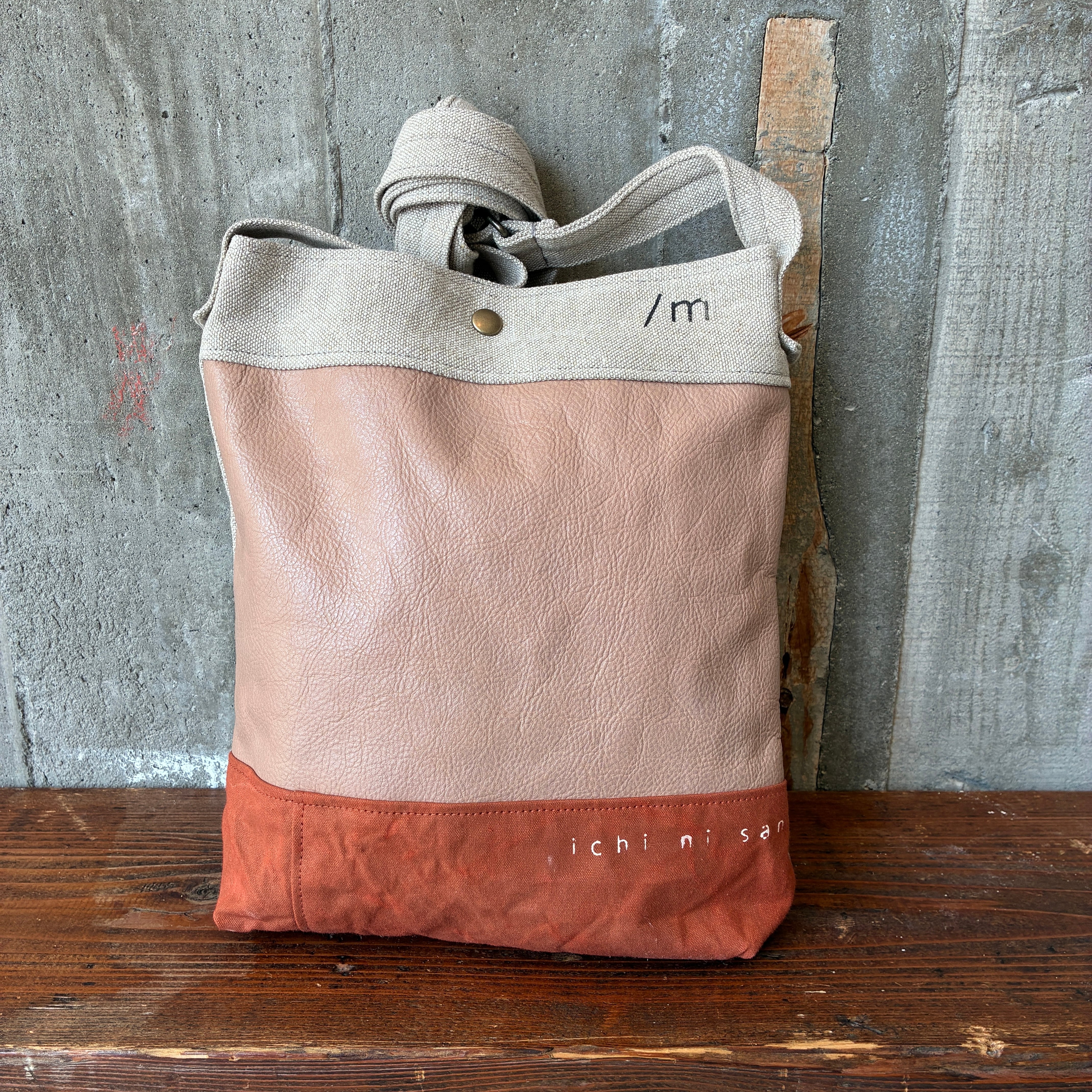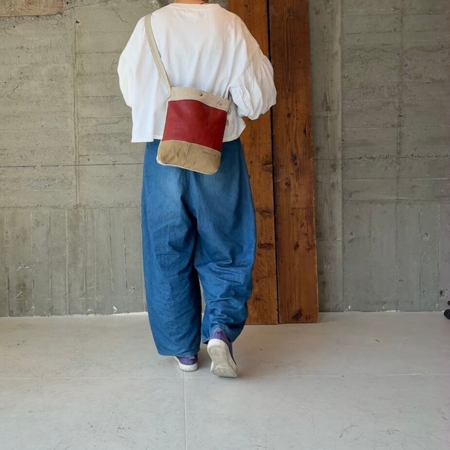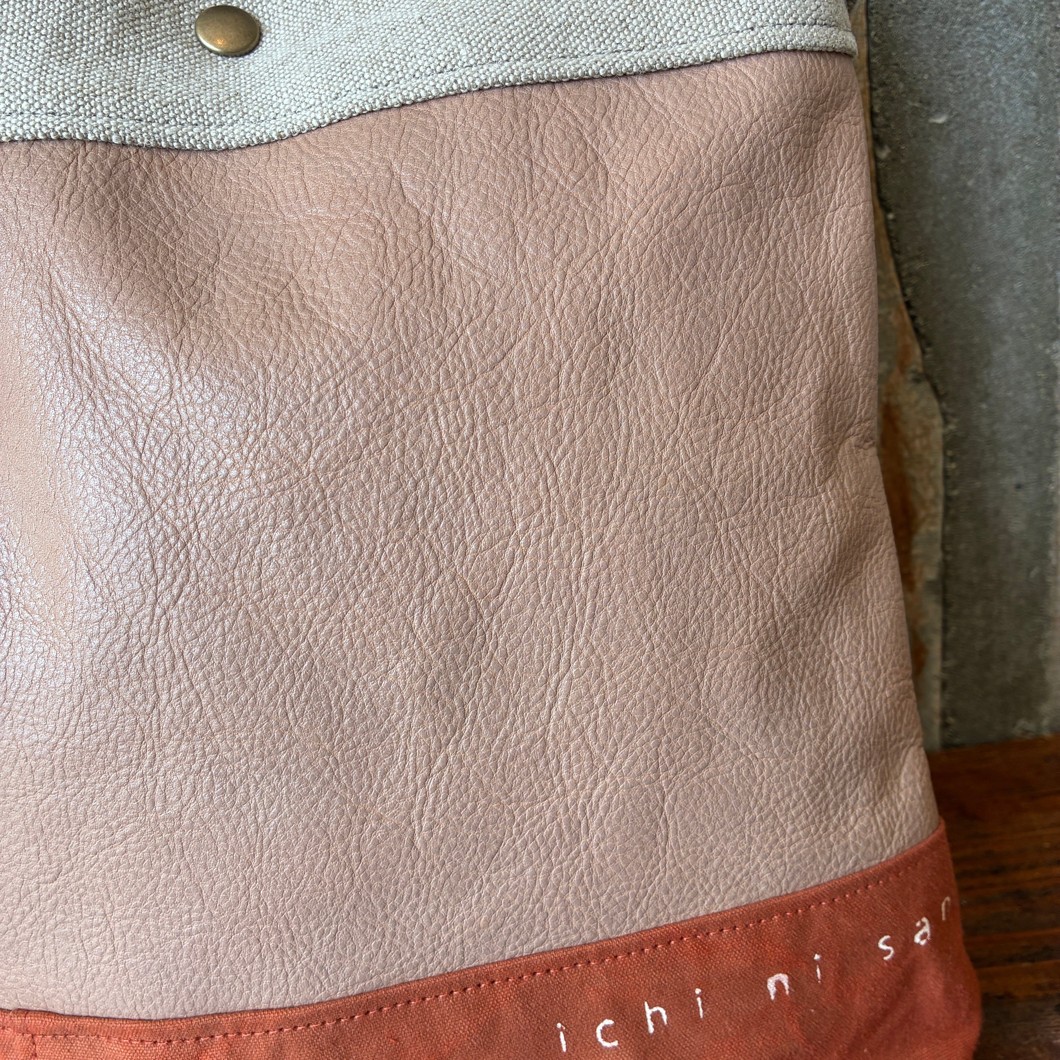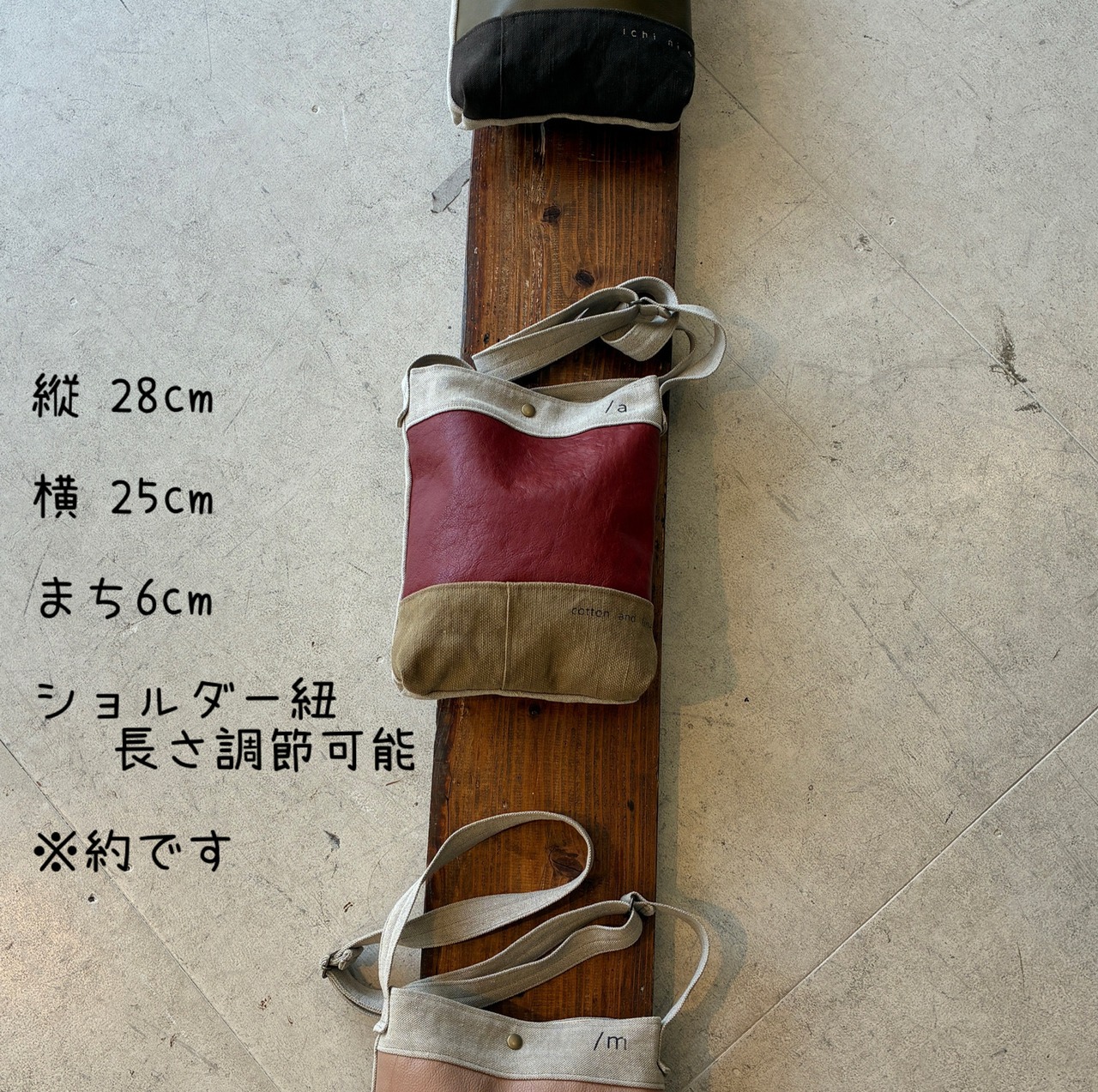 目を引くレザーカラーにナチュラルなリネン色のリネンを合わせ合わせやすいデザインに仕上げました。