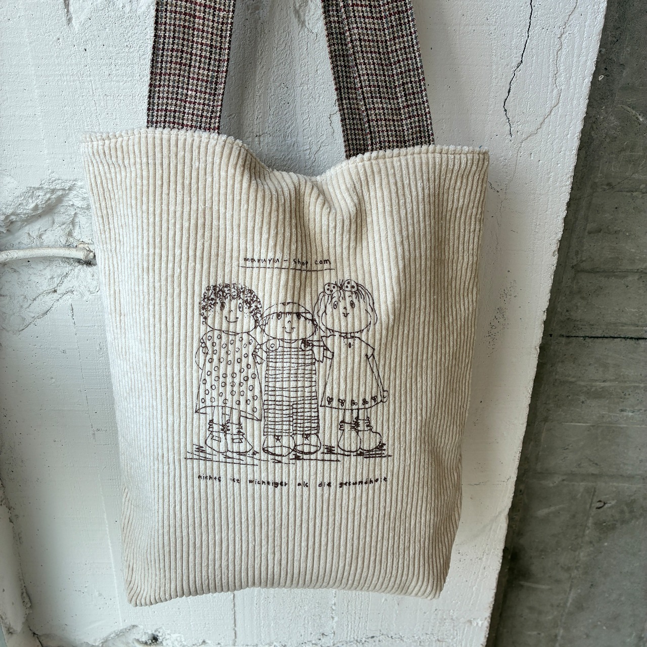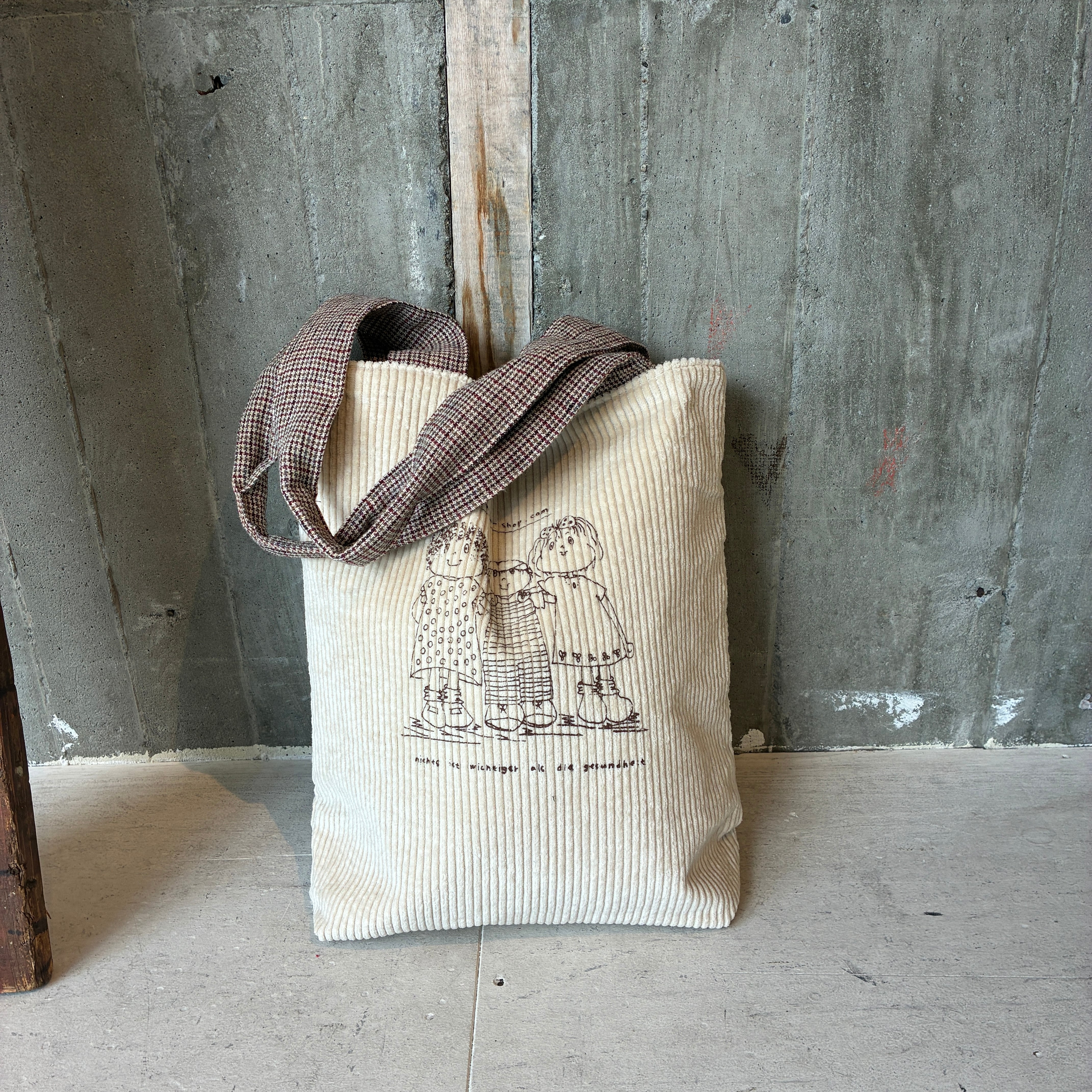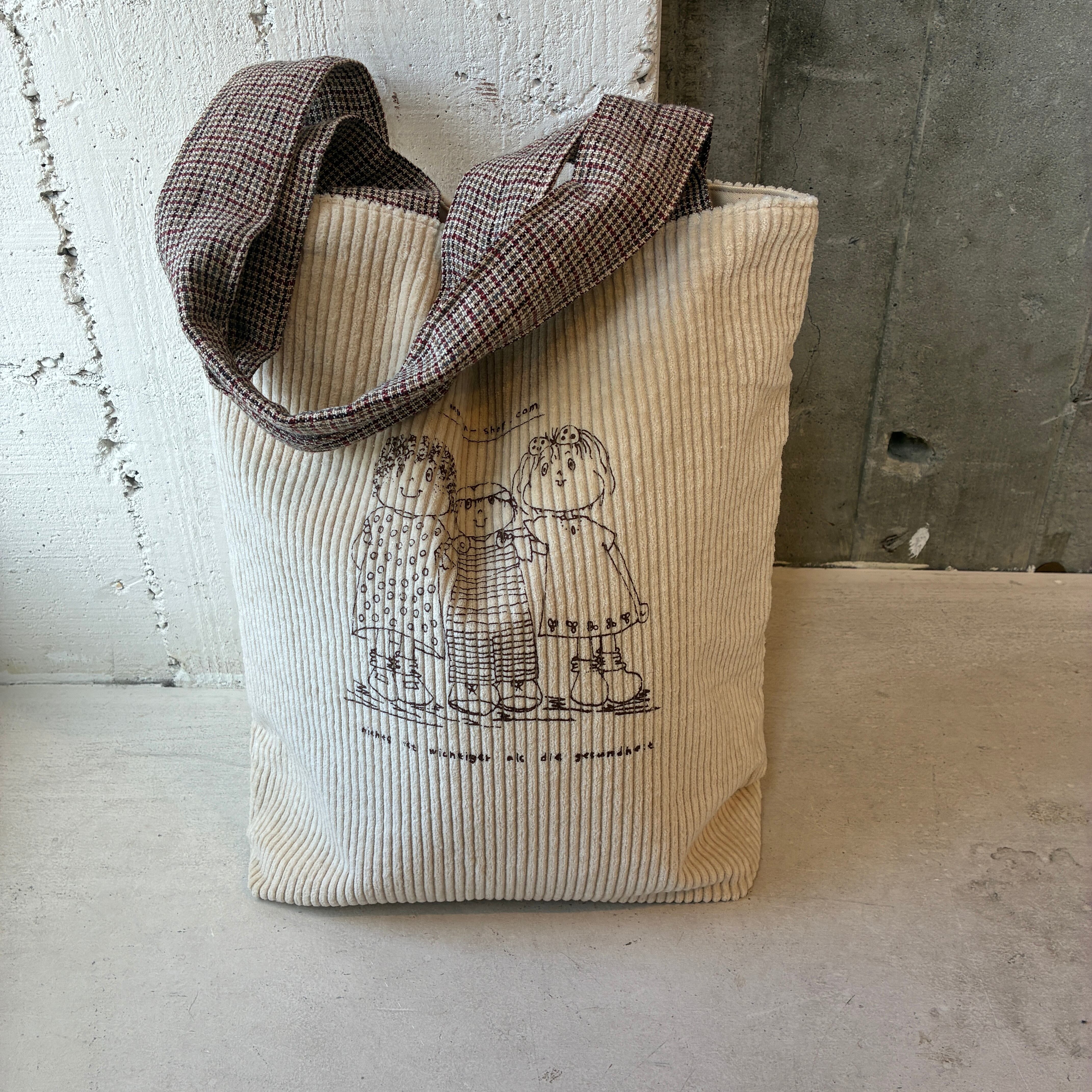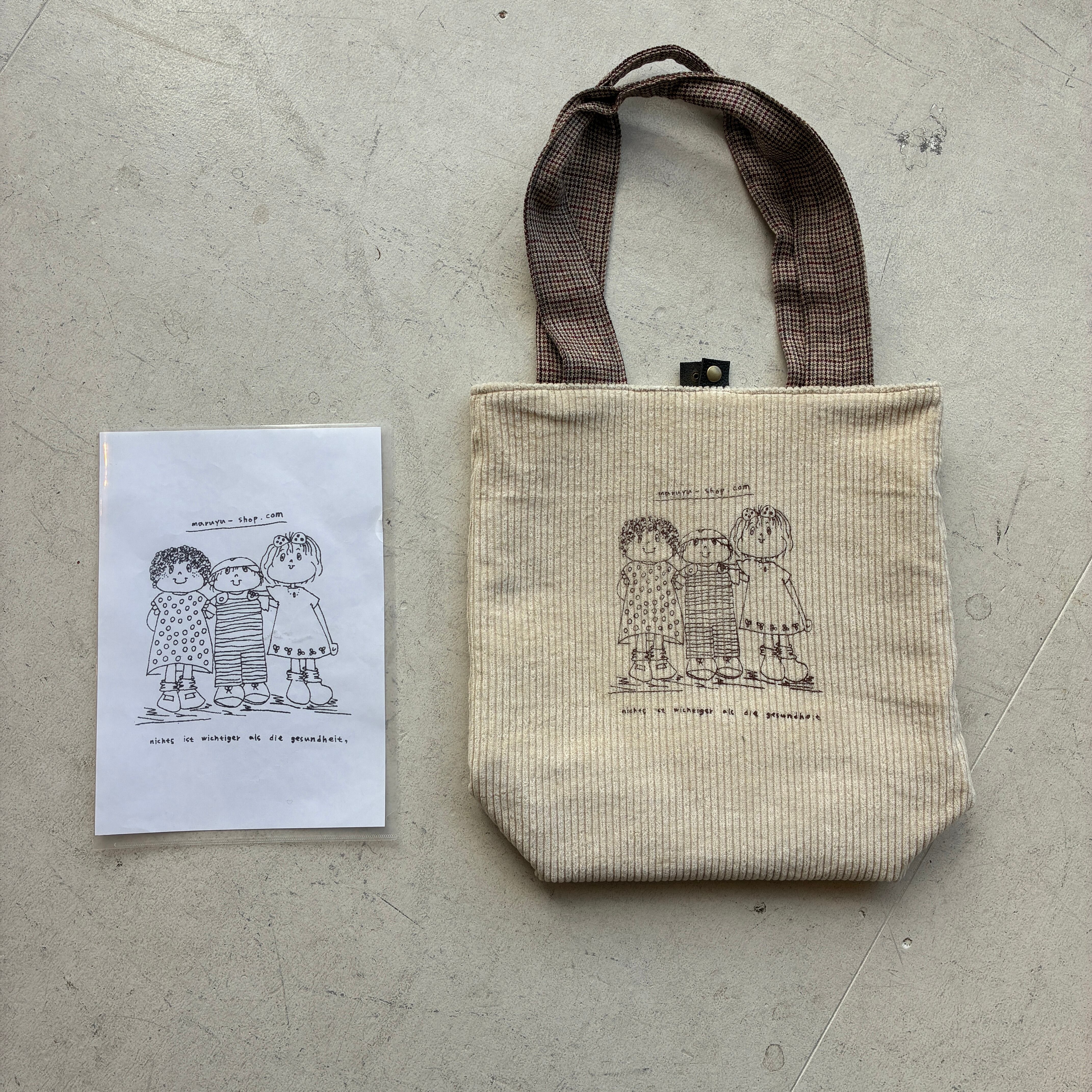 手描きのあたたかみをそのままに、シルクスクリーンで丁寧に仕上げたイラストが魅力のトートバッグ。