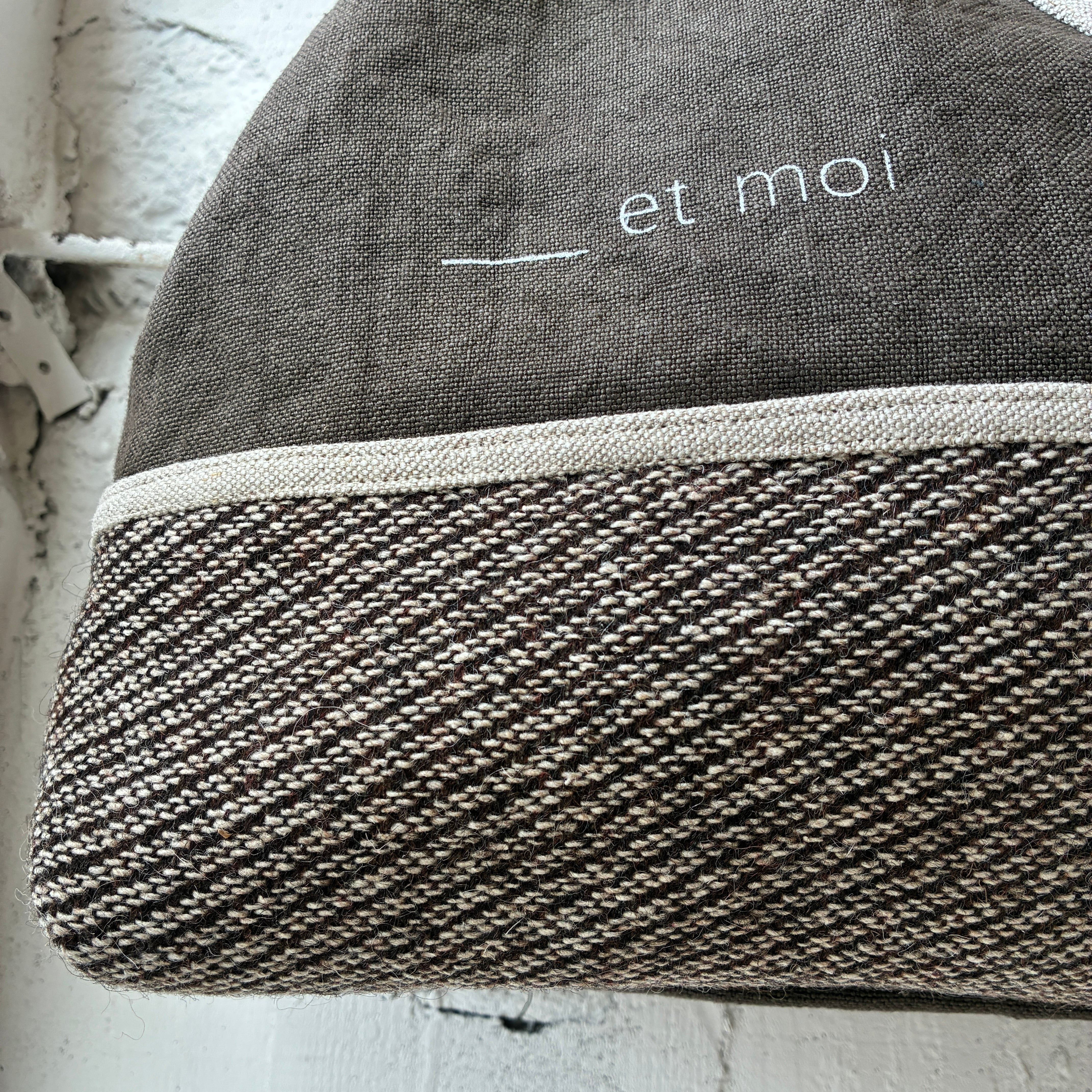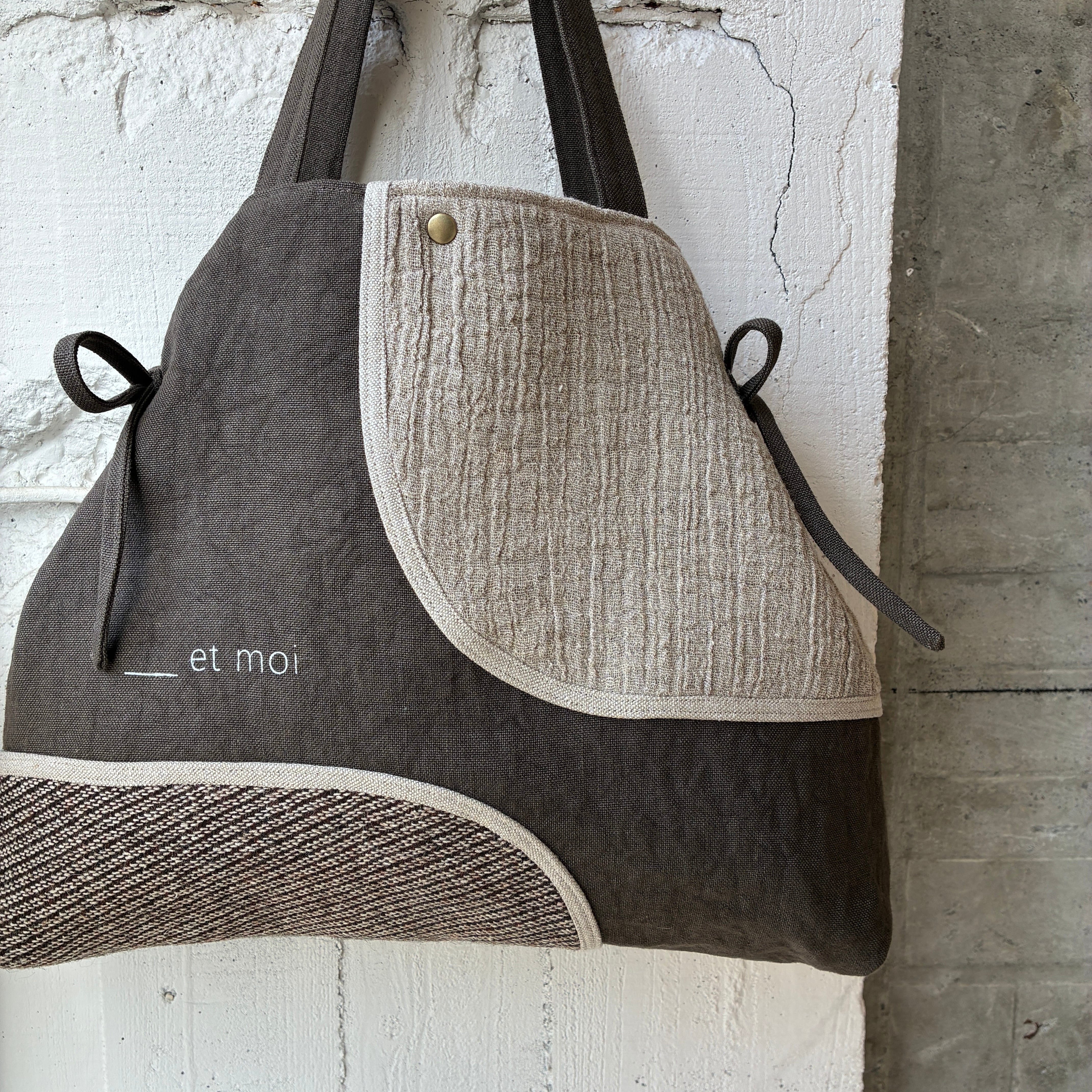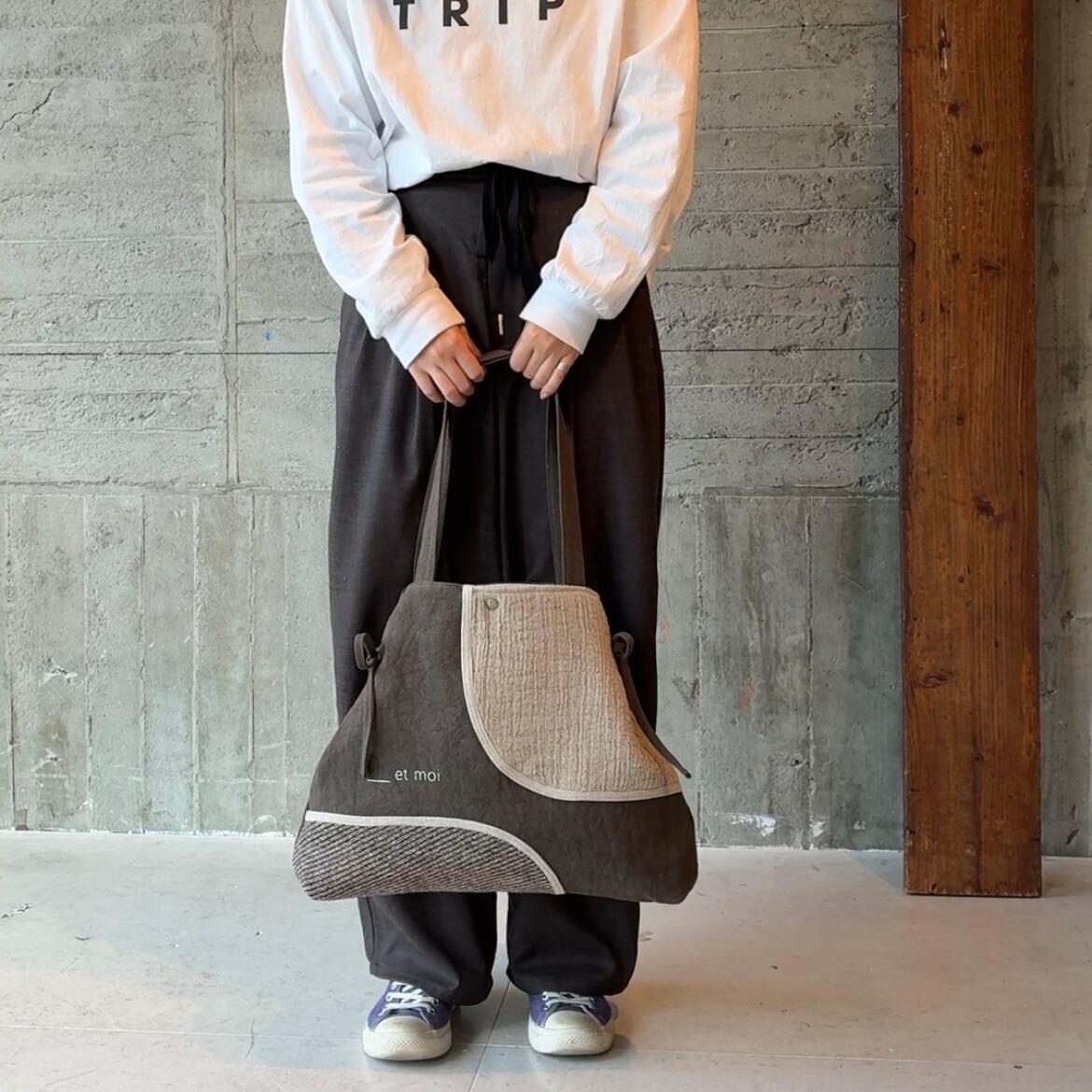 ブラウンのリネン帆布に遊び心を加えたデザインに仕上げた maruyuオリジナルリボントートです。