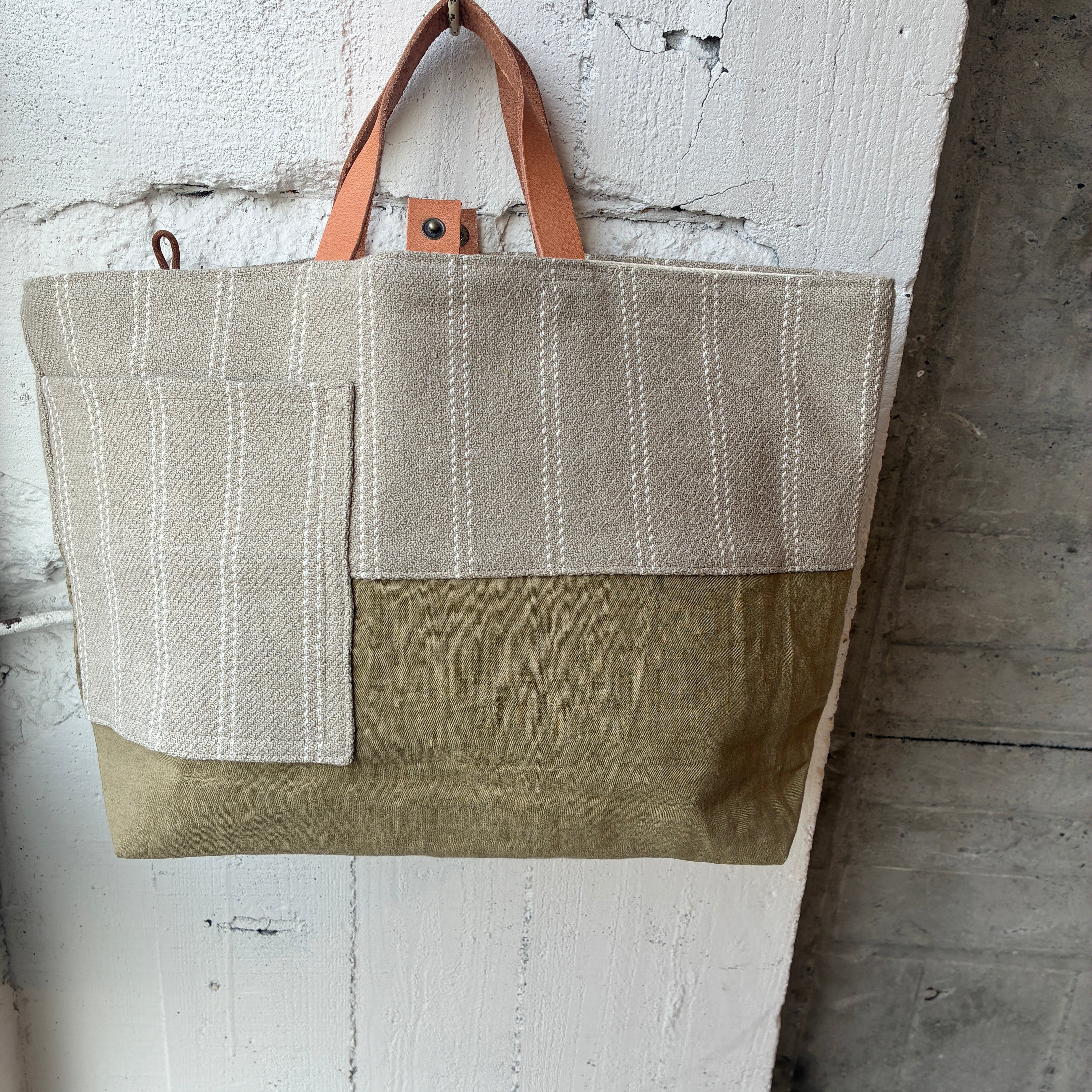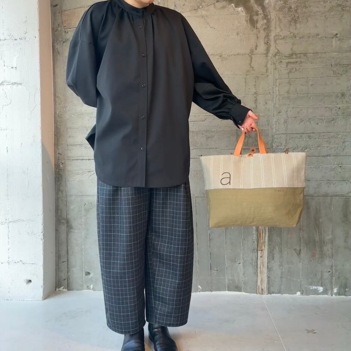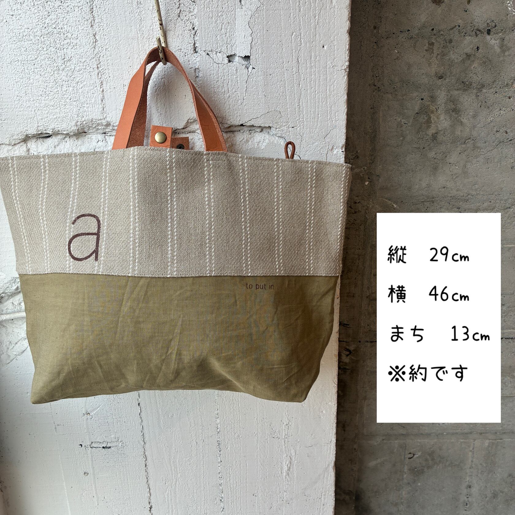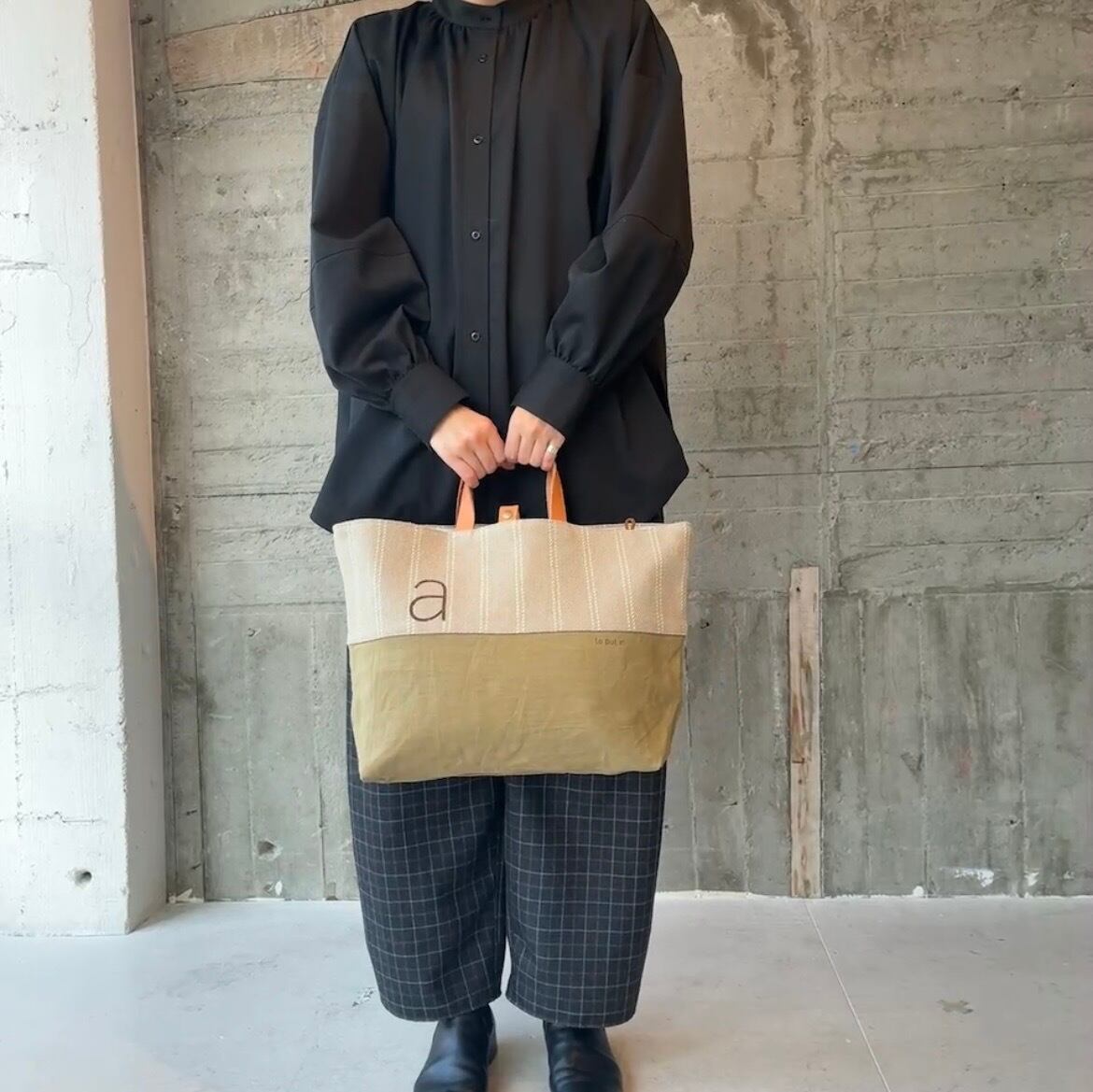 持ち手短めの大きめトートです。