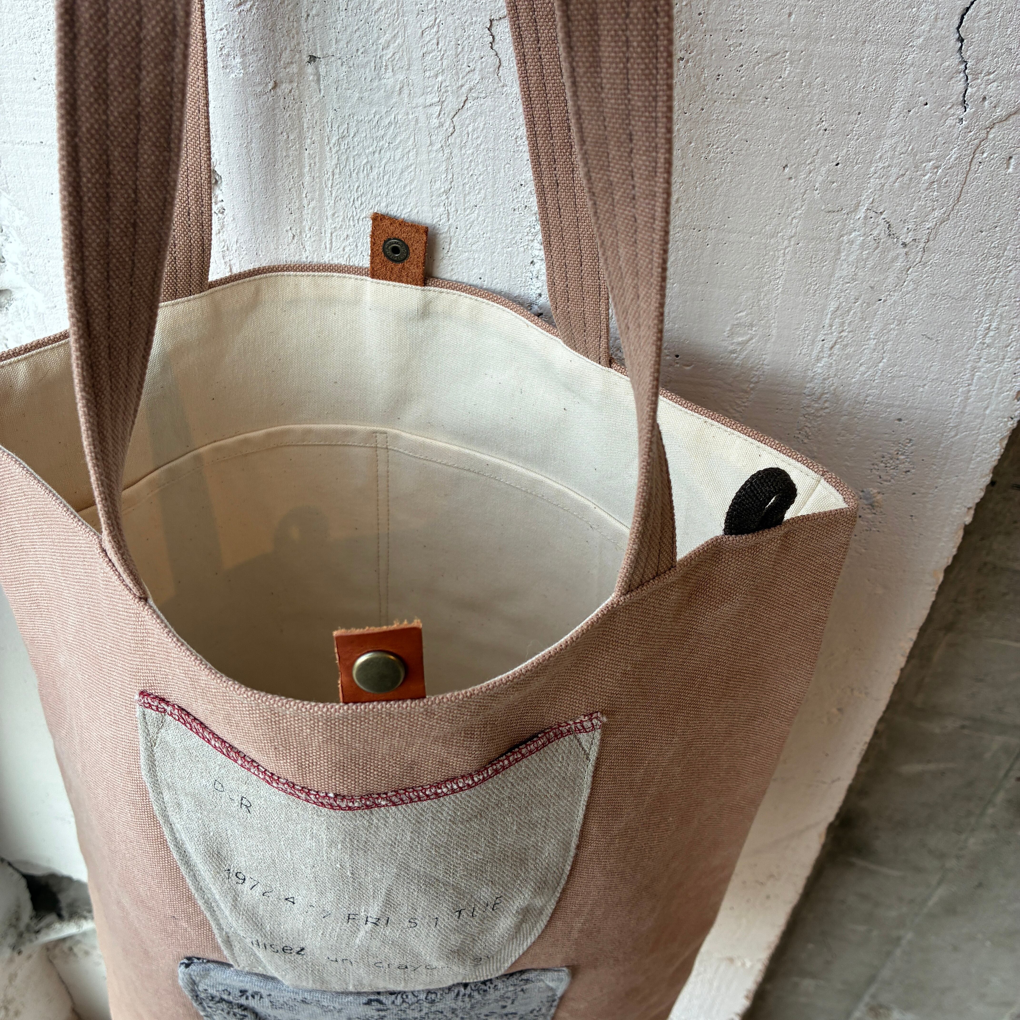 淡いピンクかわ可愛い8号帆布を使用した定番トートです。