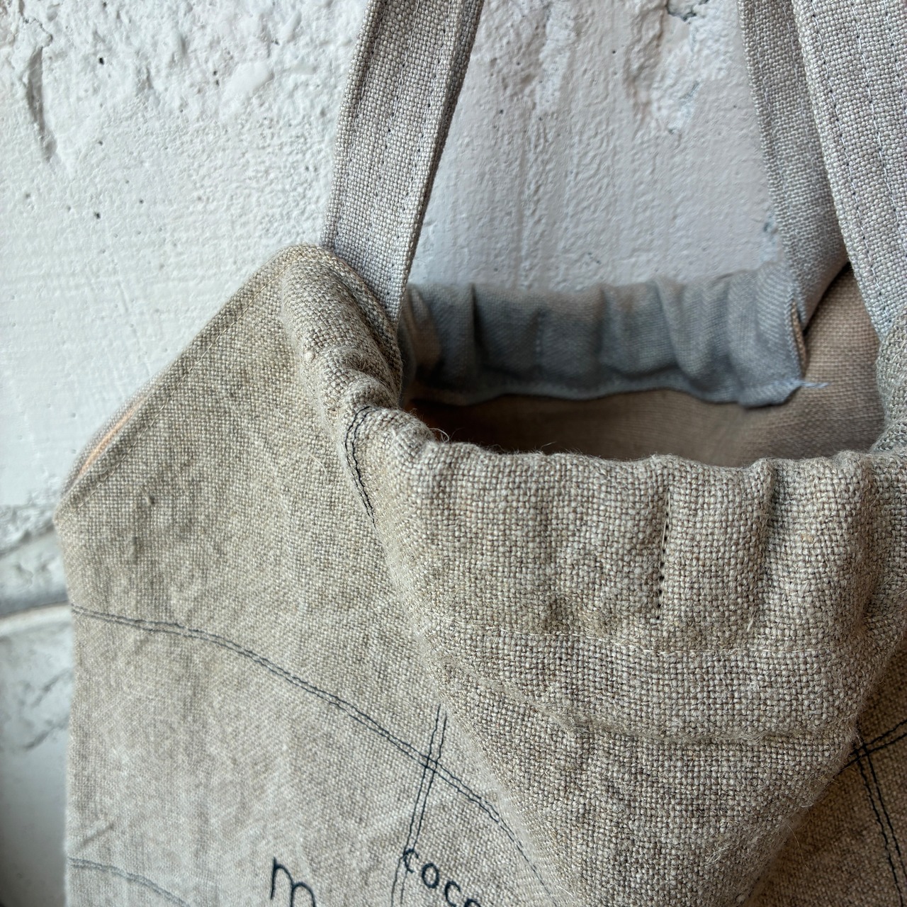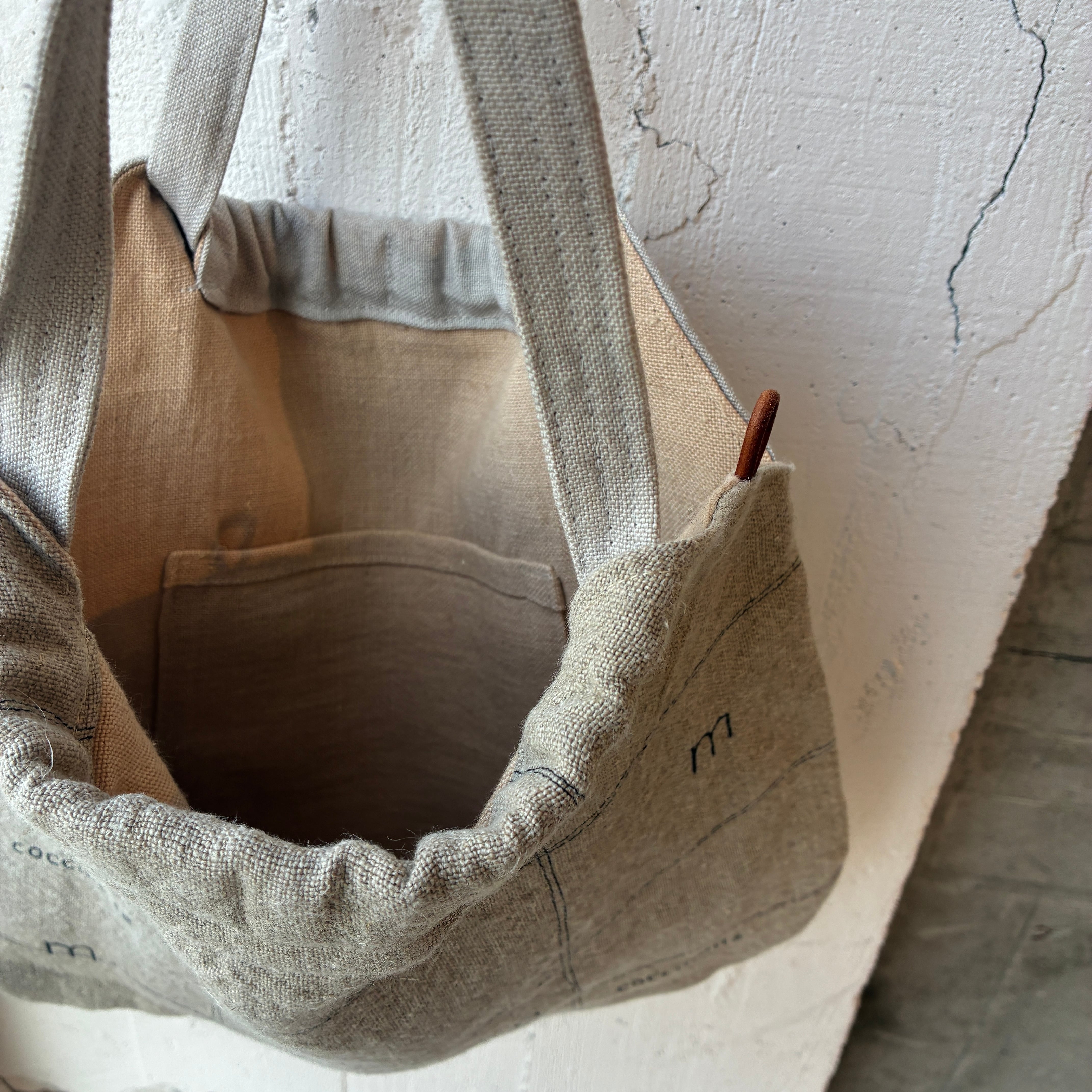 裏地も、リネンを使用した贅沢トートです。