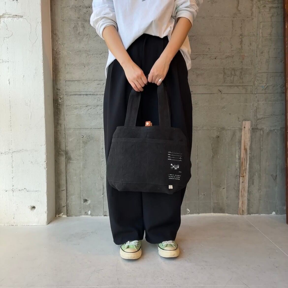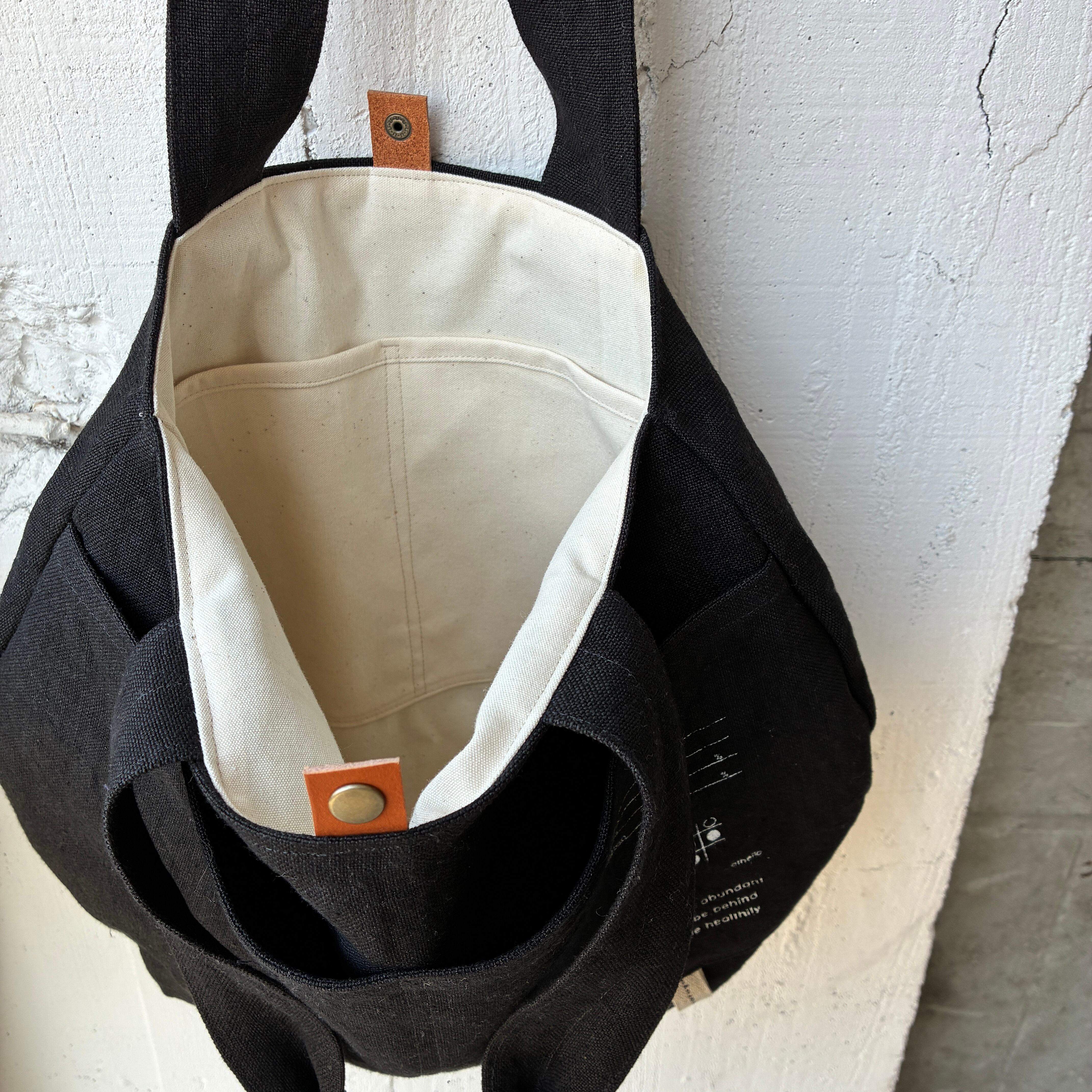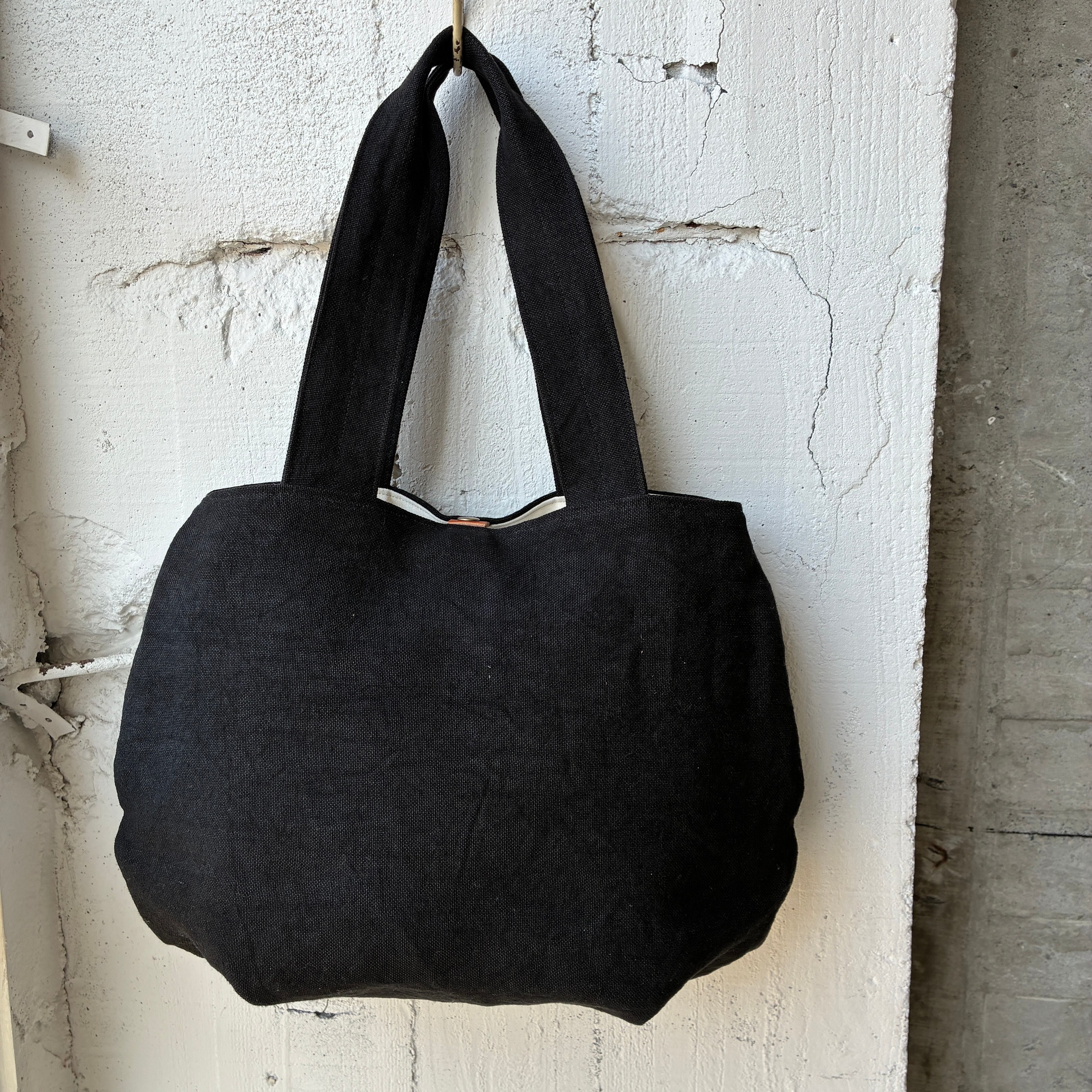 ころっと丸っこい形に仕上げたトートです。