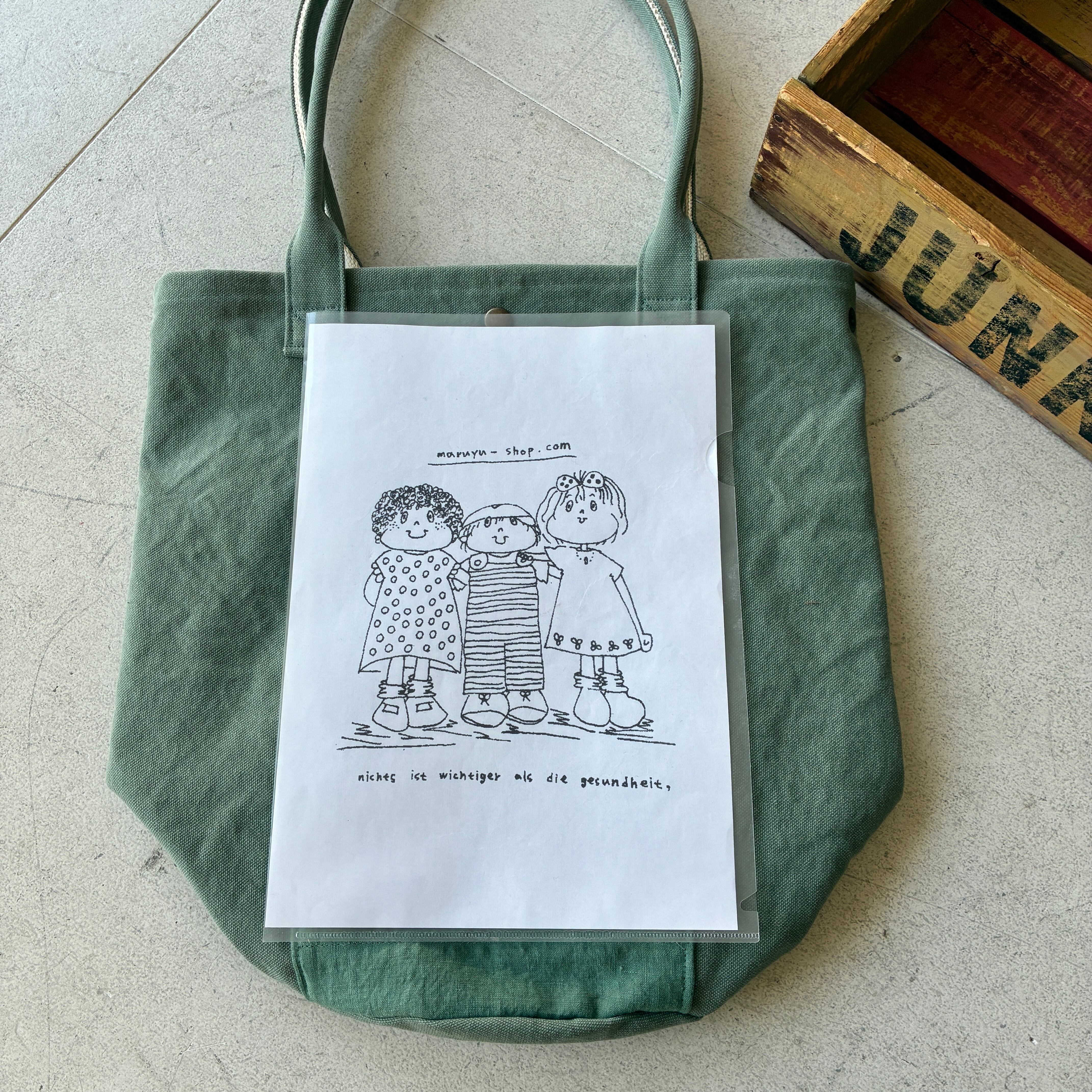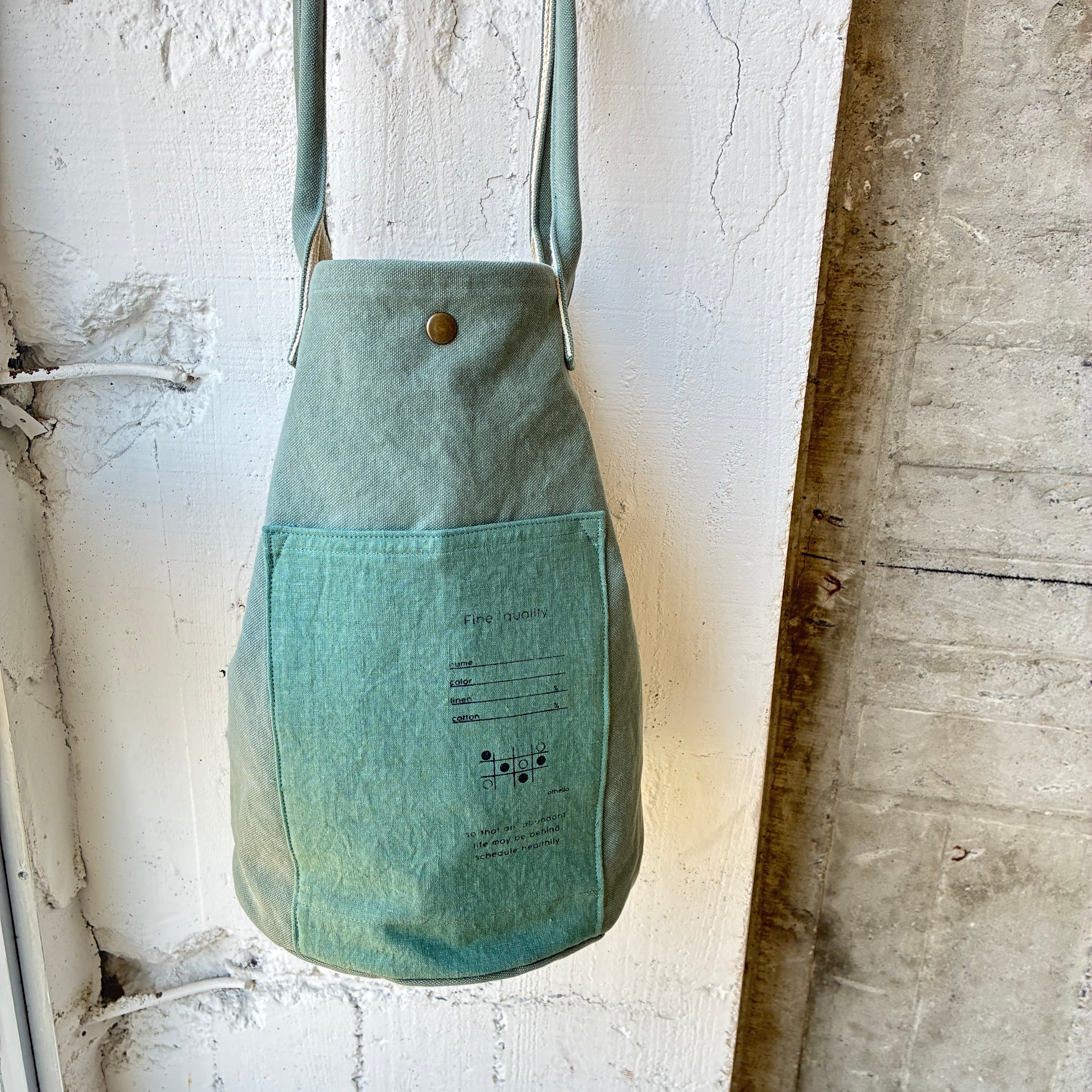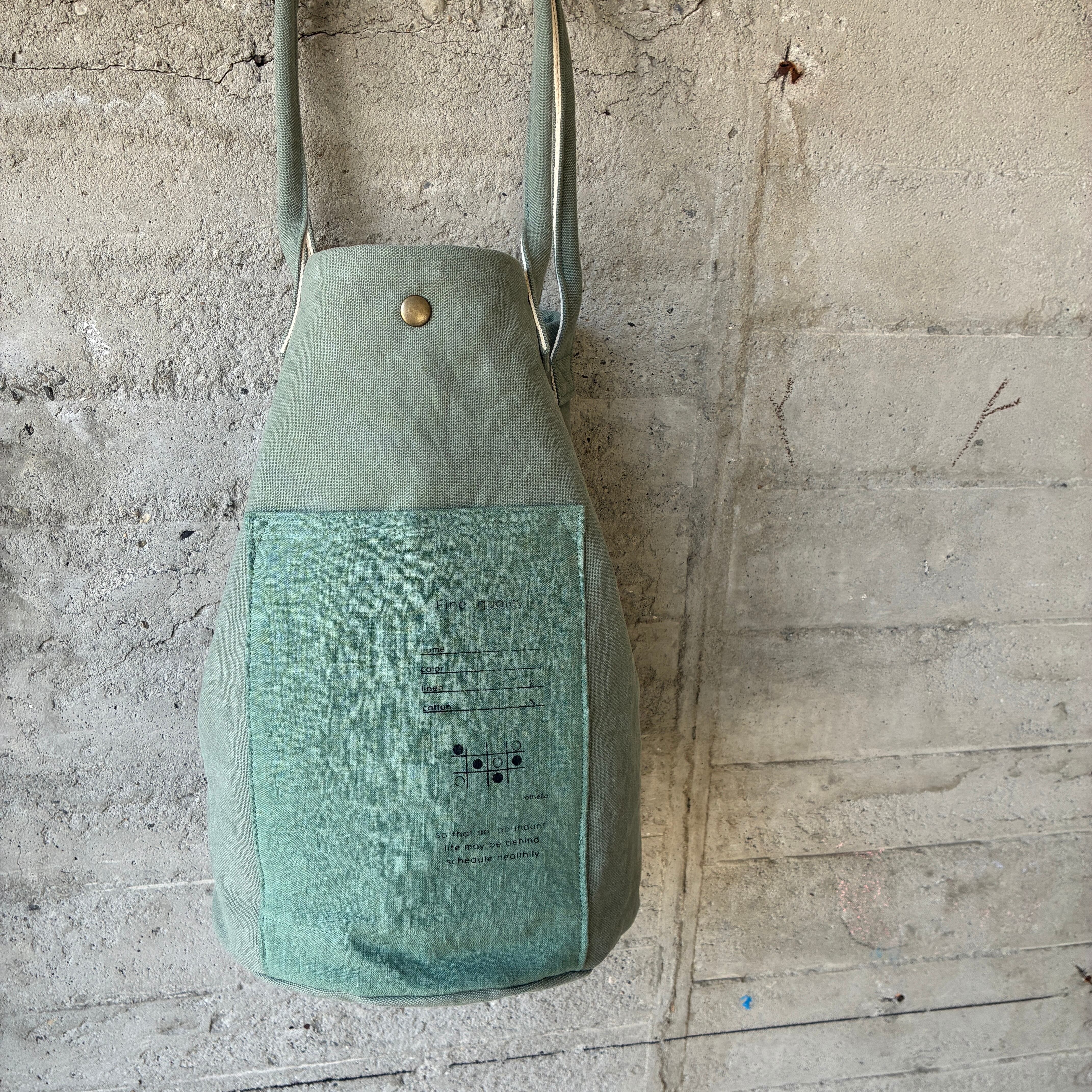 前ポケットに同系色のリネンを組み合わせたシンプルだけどmaruyuらしいデザインです。