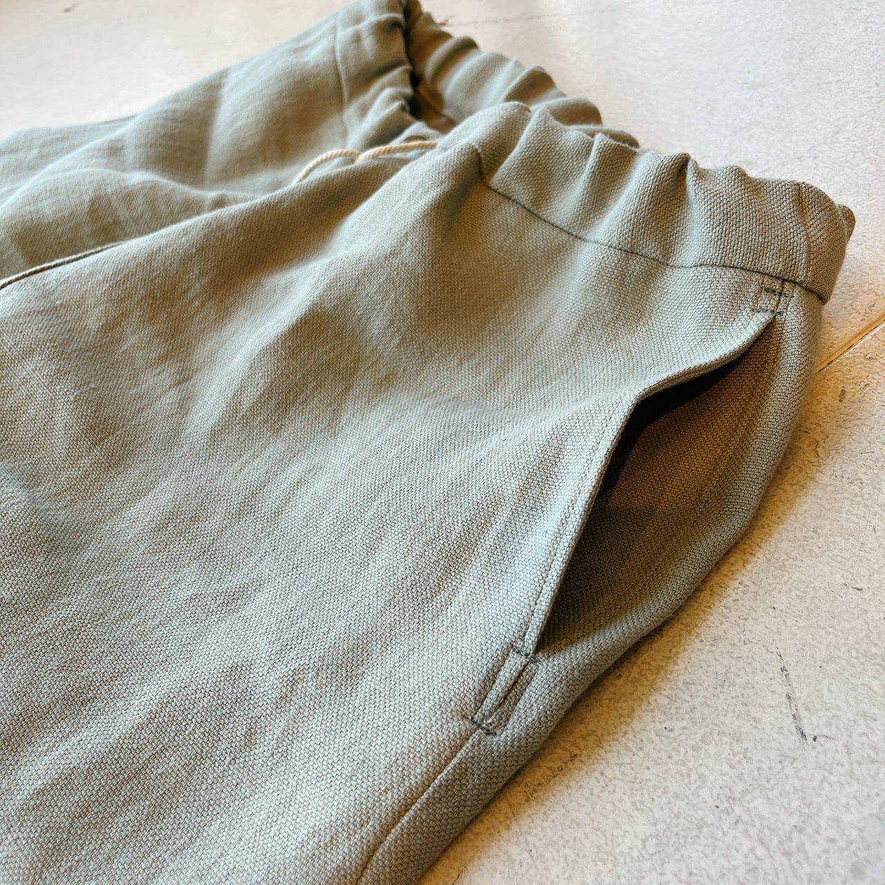 8番手リネンの独自な厚みと天日干しの奥深い風合いの素材とオリジナルに作ってもらったざっくりと雰囲気のあるリネンのコラボ