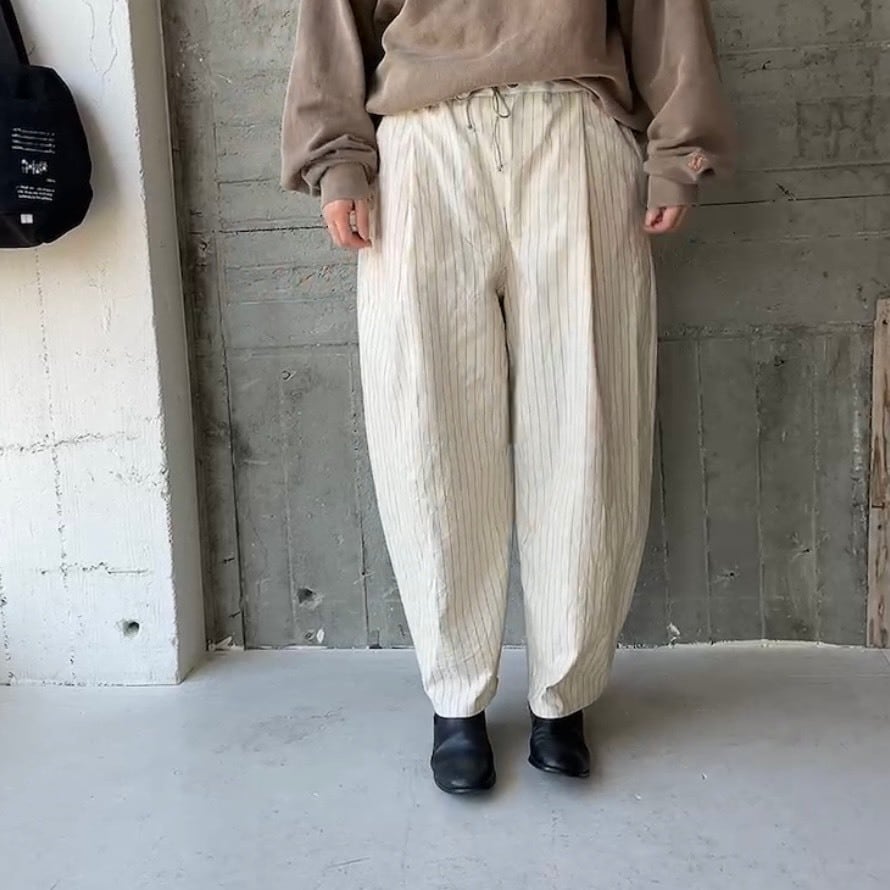 ストライプ柄のリラックスパンツ。
