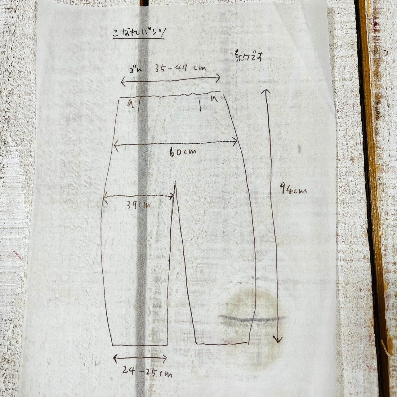 ウエストはゴム+紐仕様。