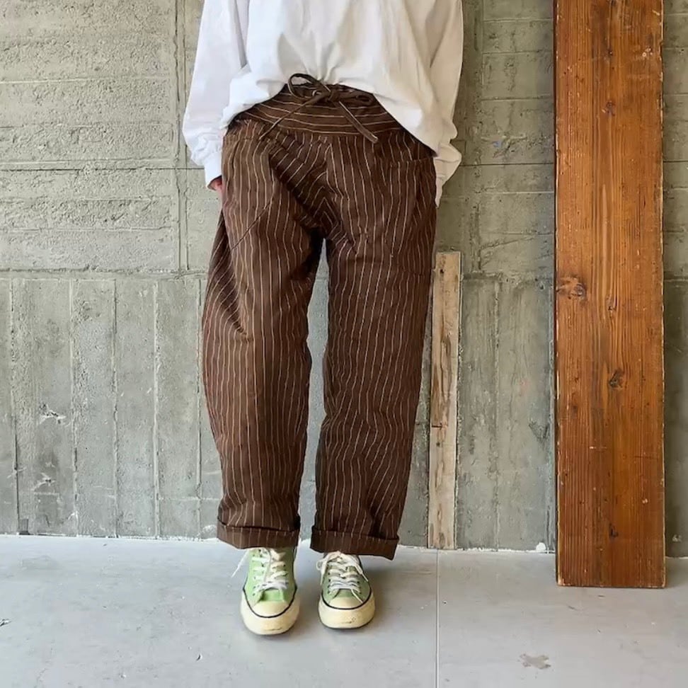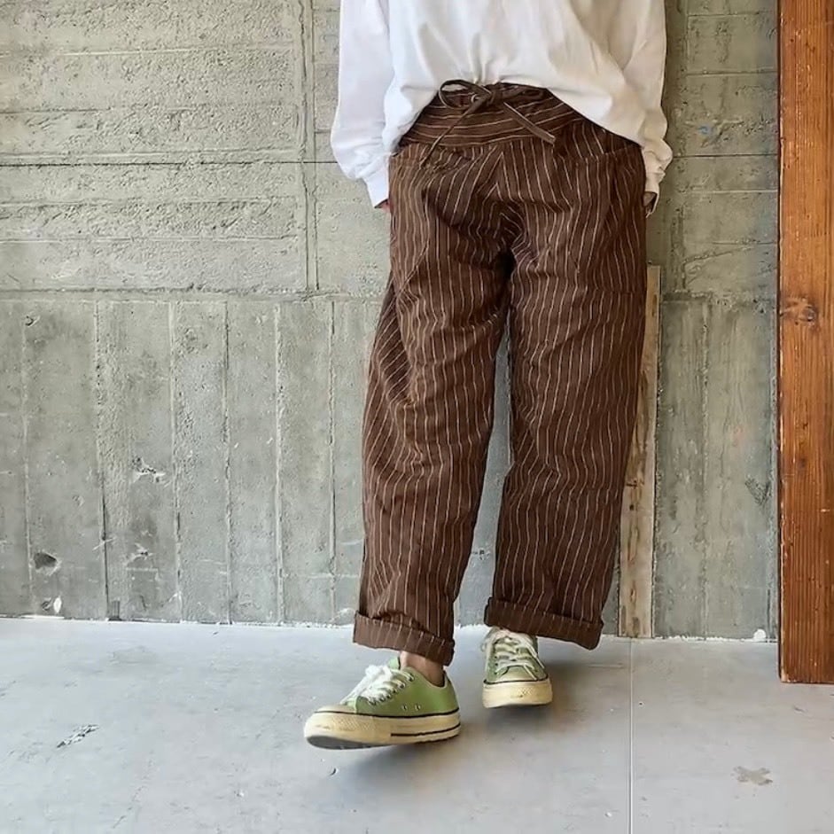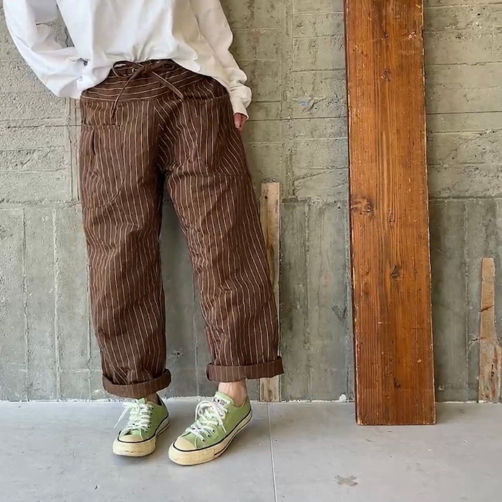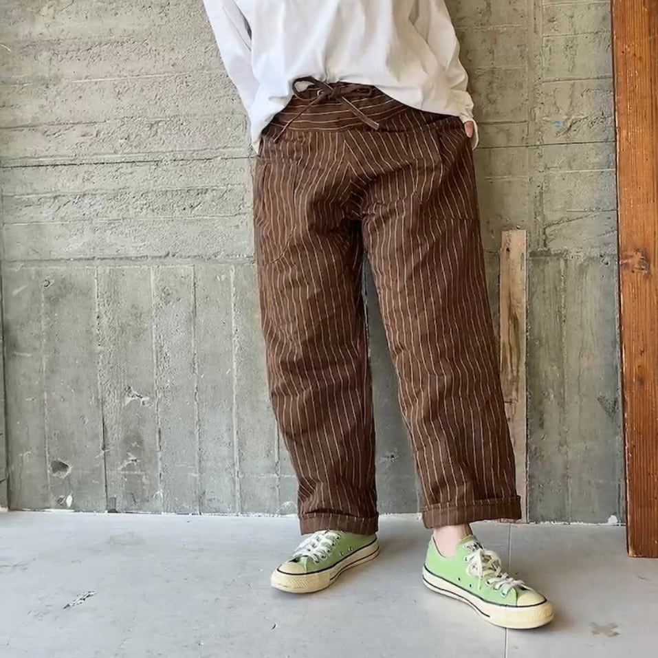 brownピンライン*cottonストレートパンツ