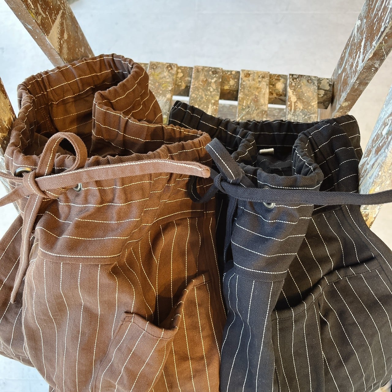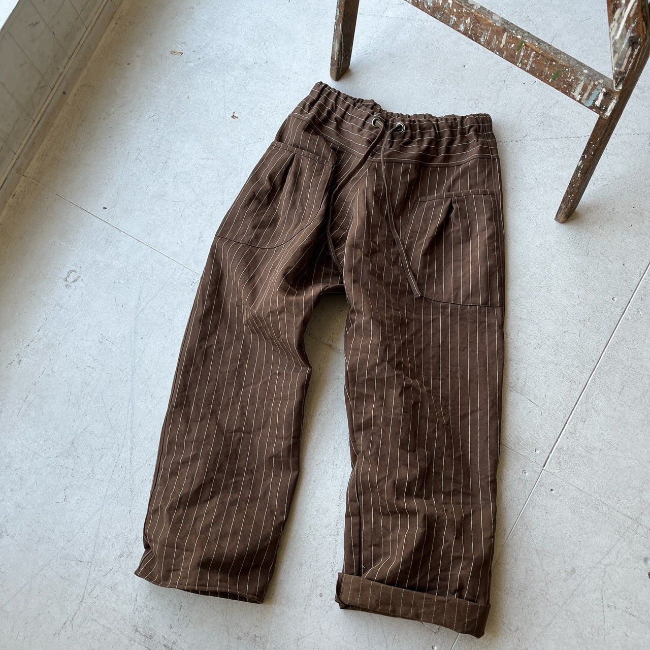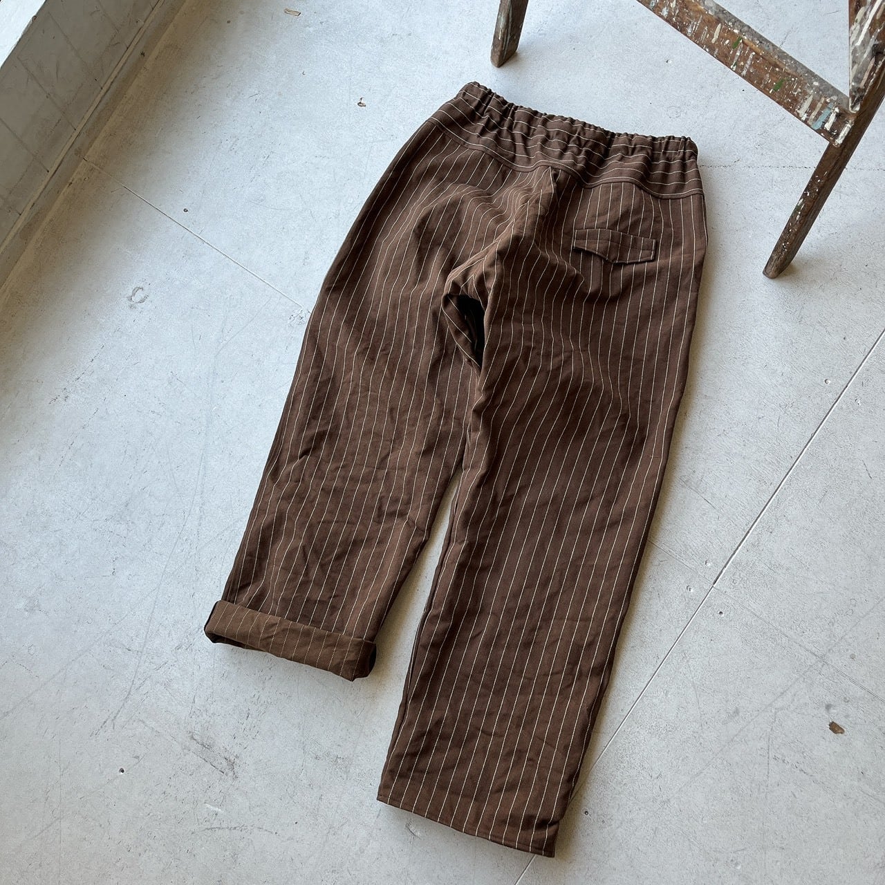 brownピンライン*cottonストレートパンツ