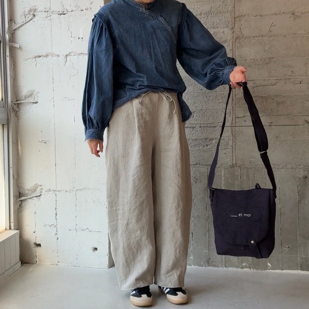 毎日にちょうどいい、リネン帆布のショルダーバッグ。