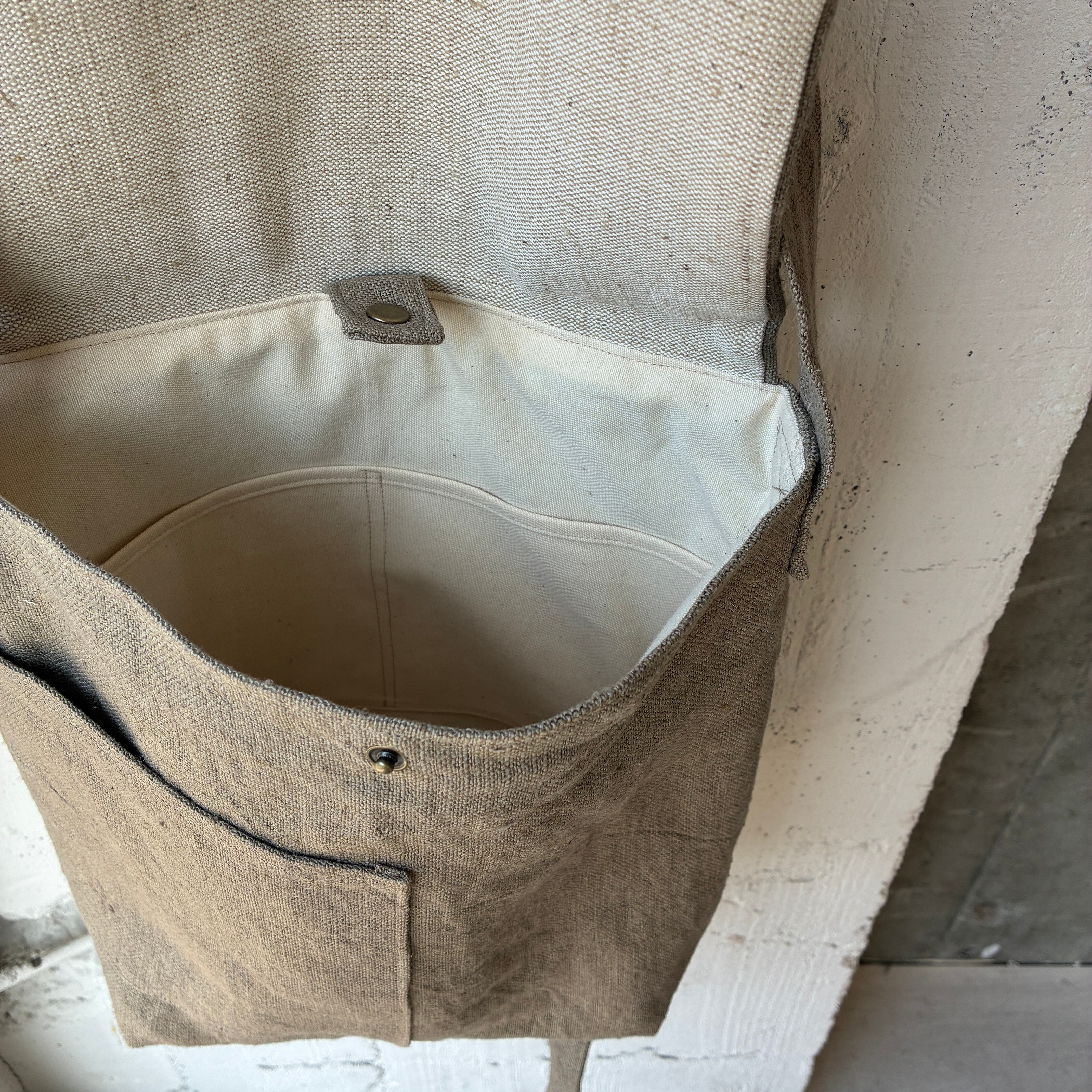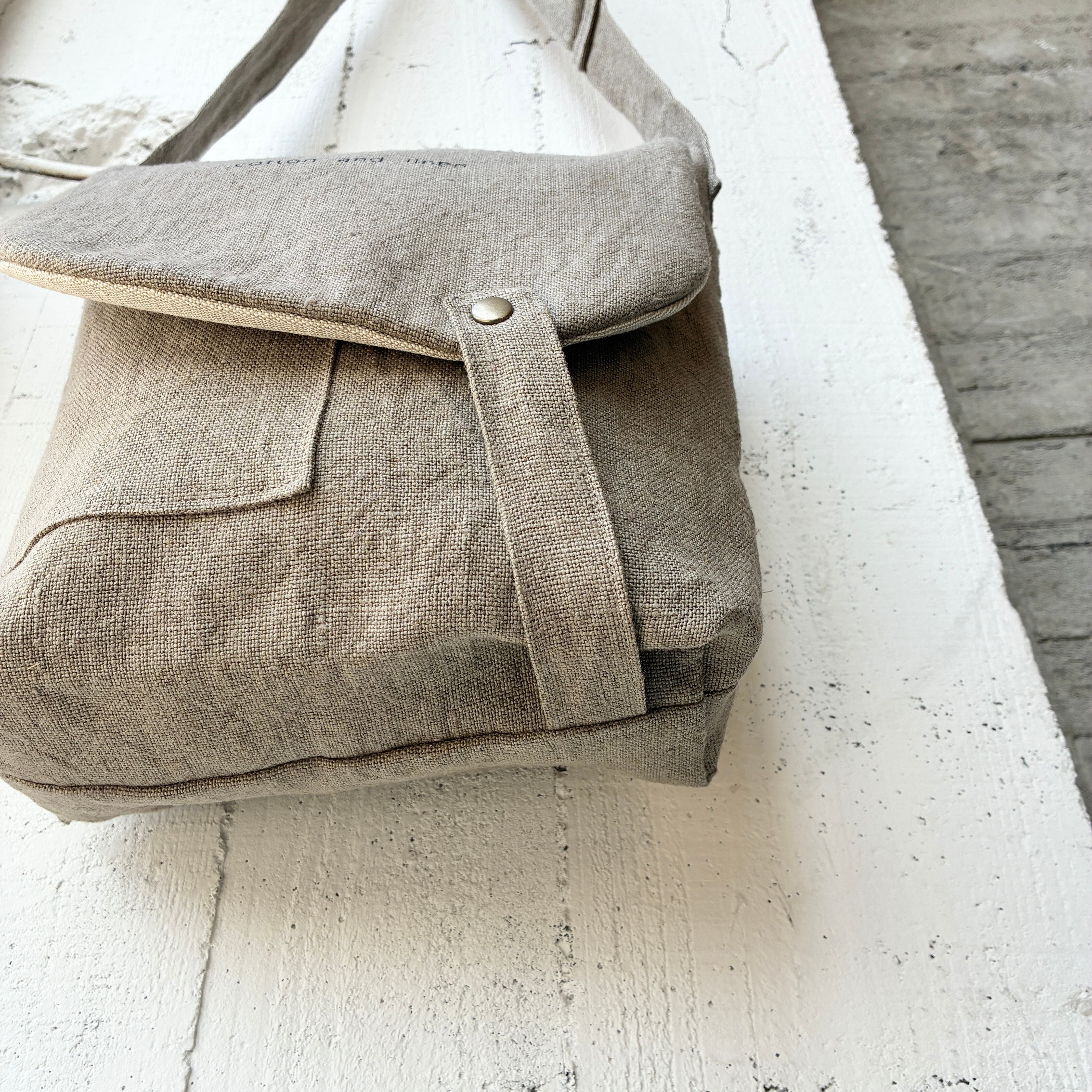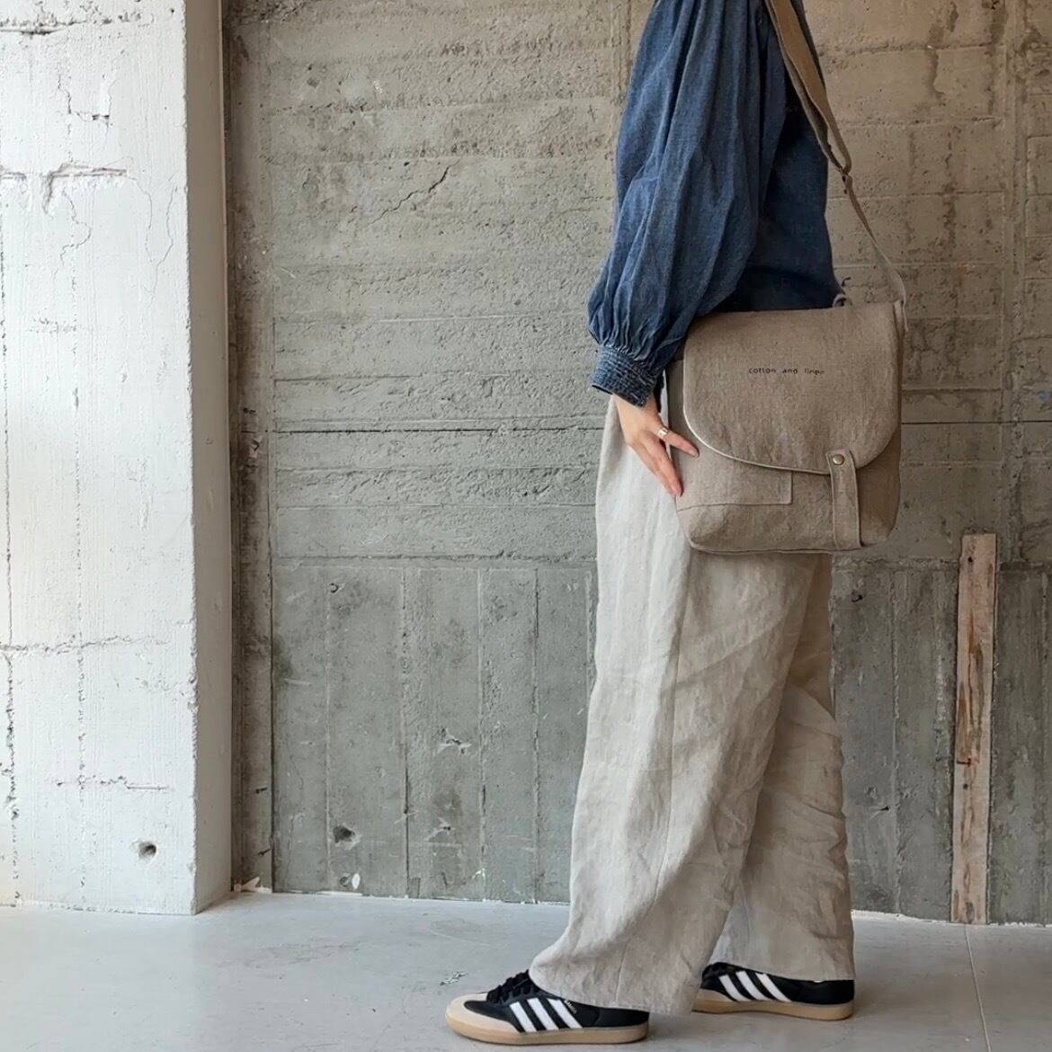 やさしい色合いと、大きめのふた(フラップ)が印象的なデザイン。