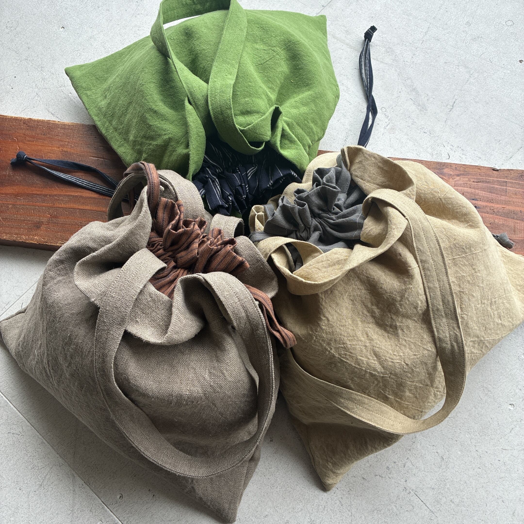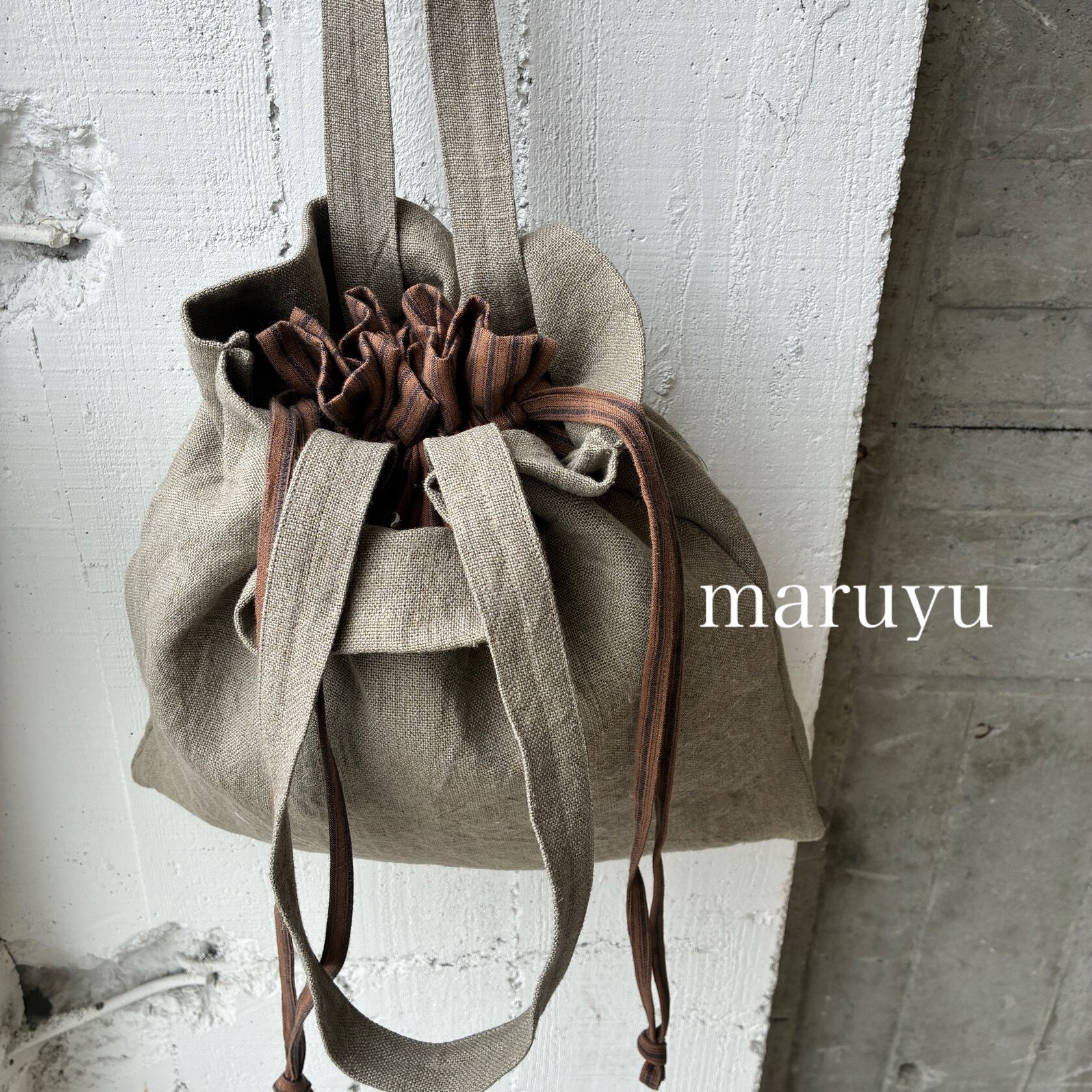-maruyu- リネン素材の巾着トート