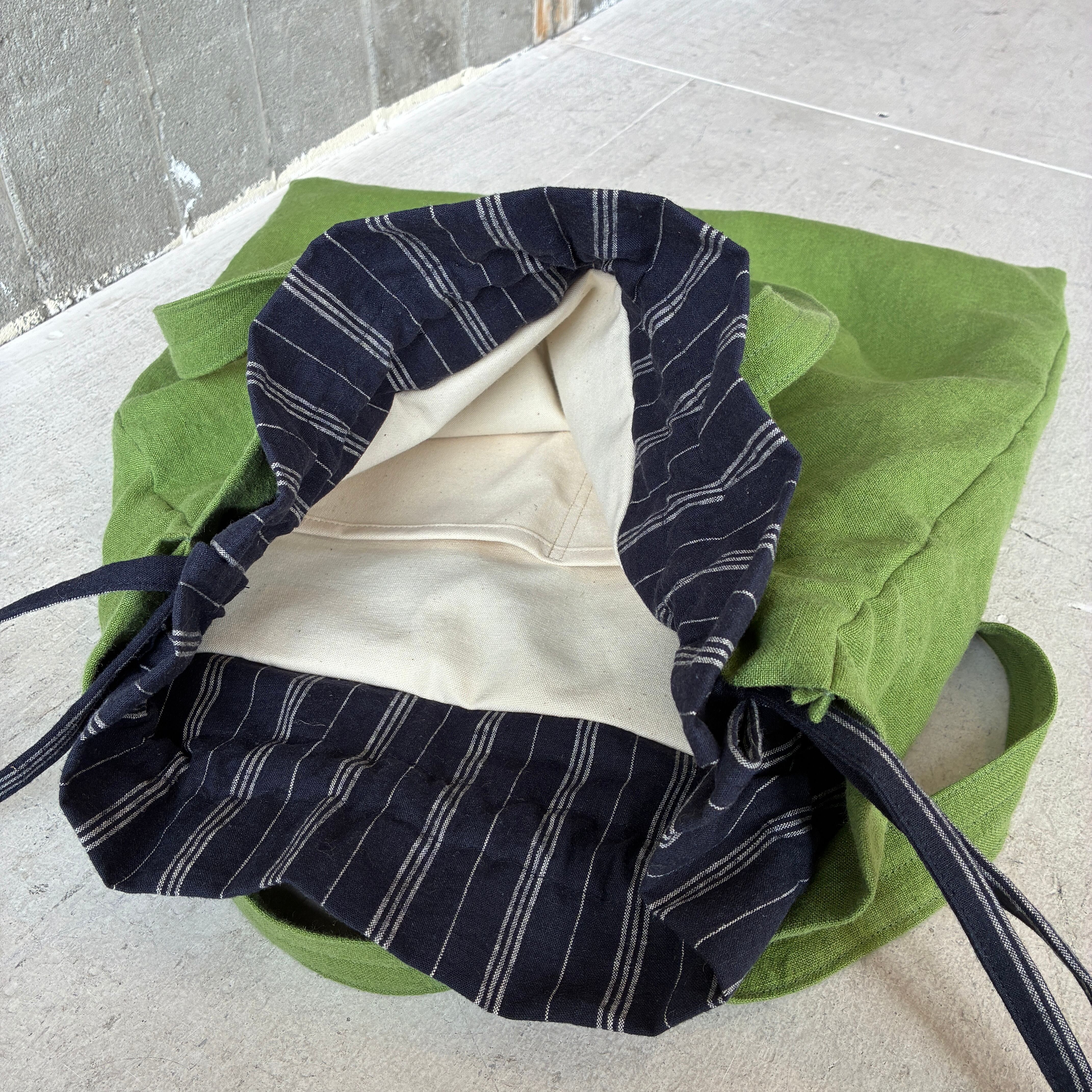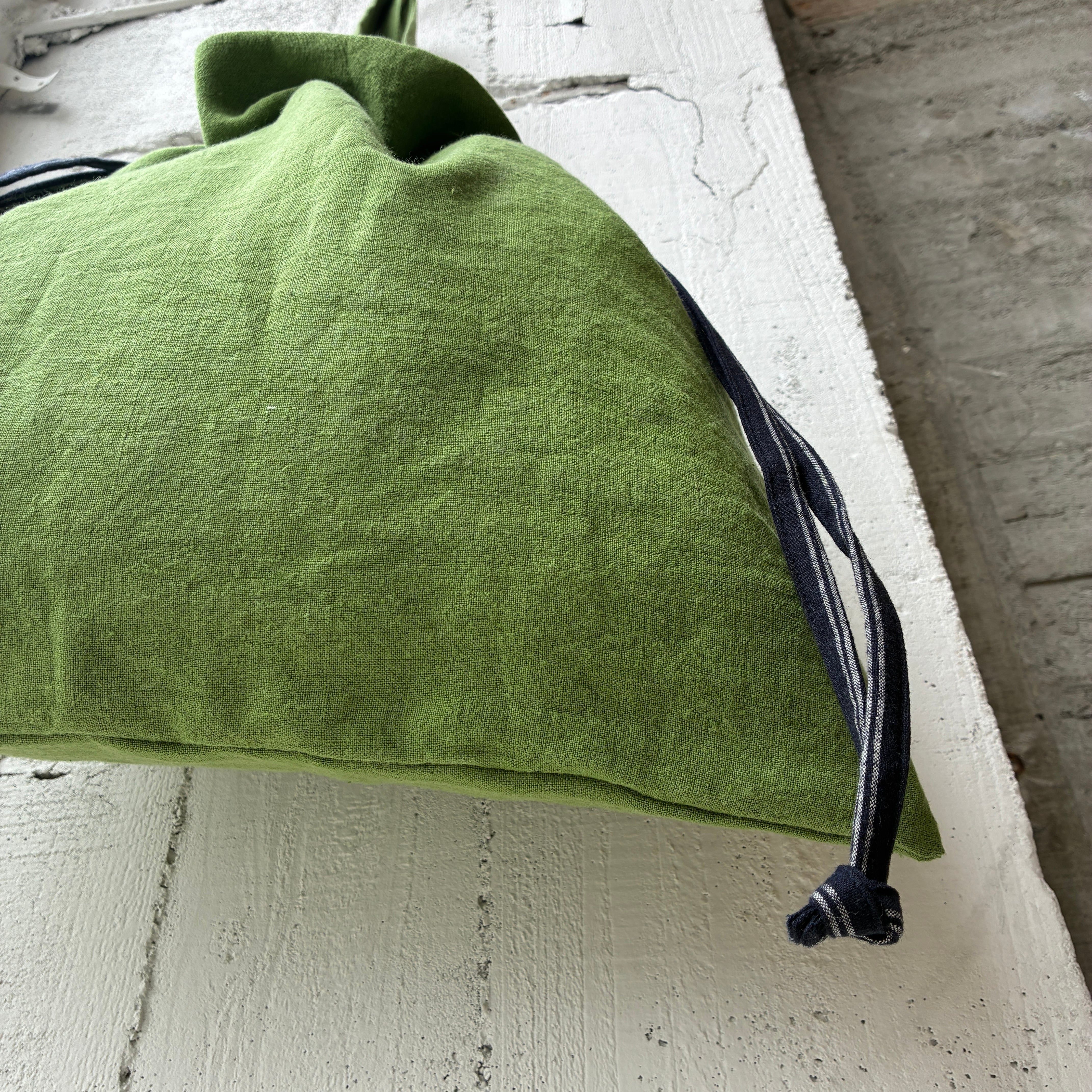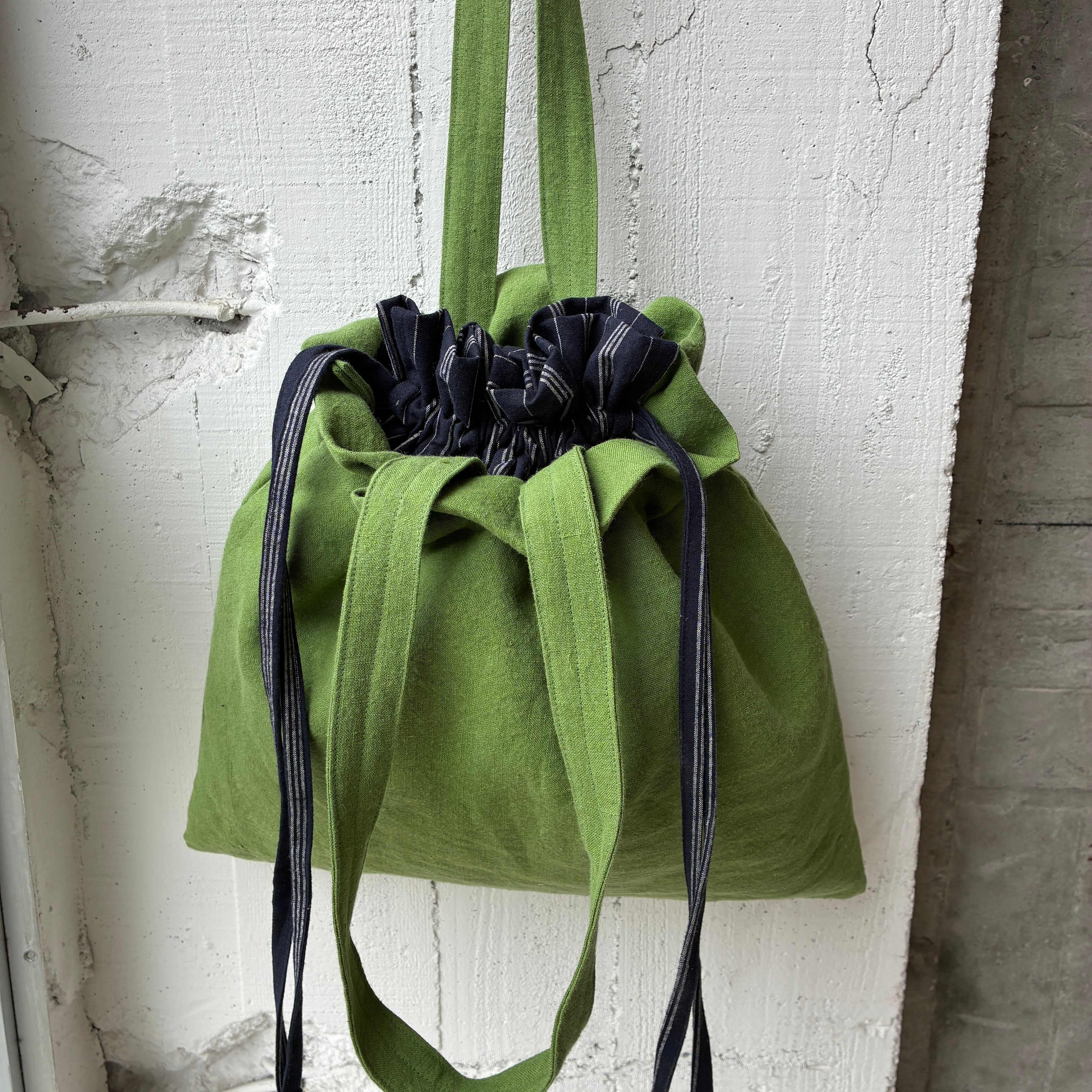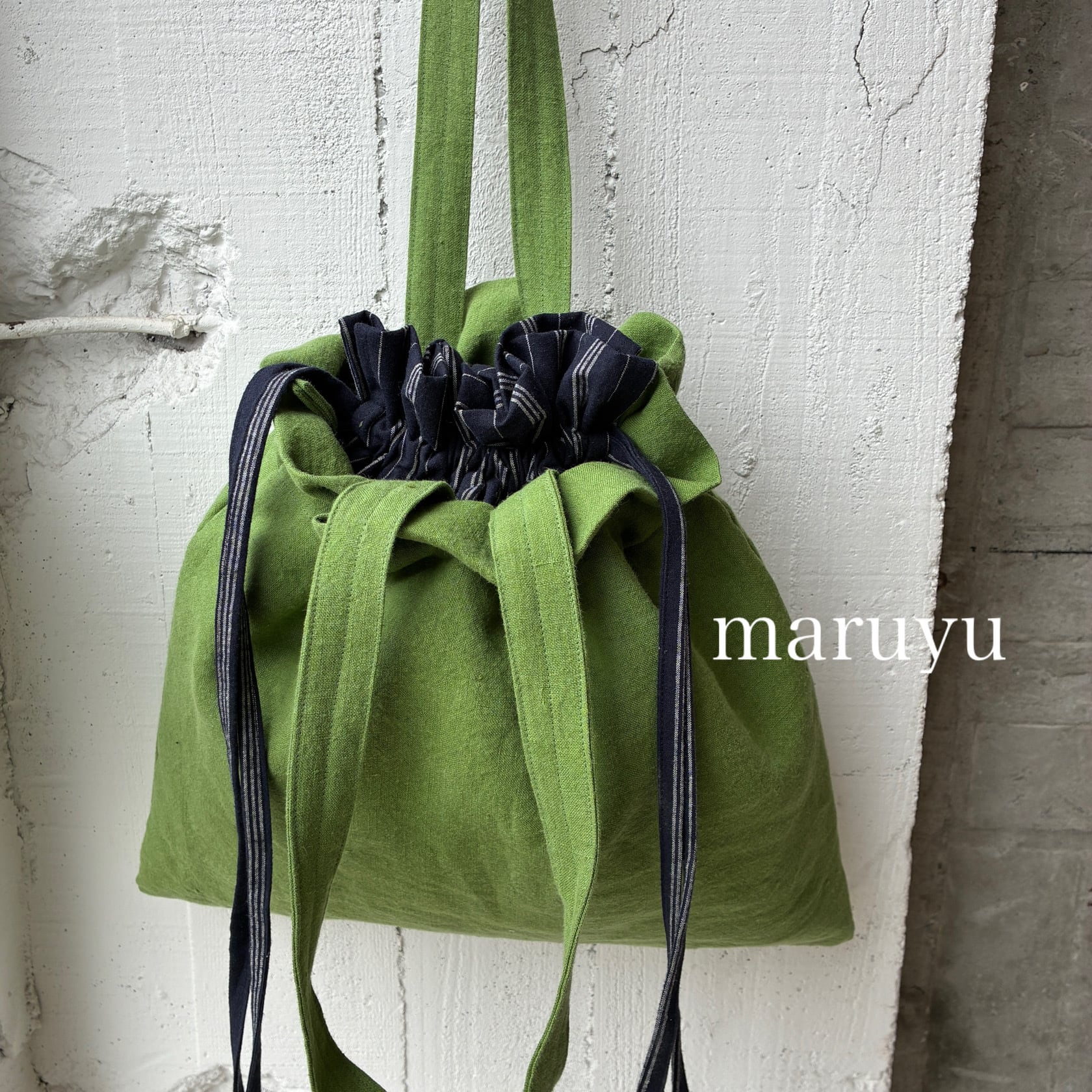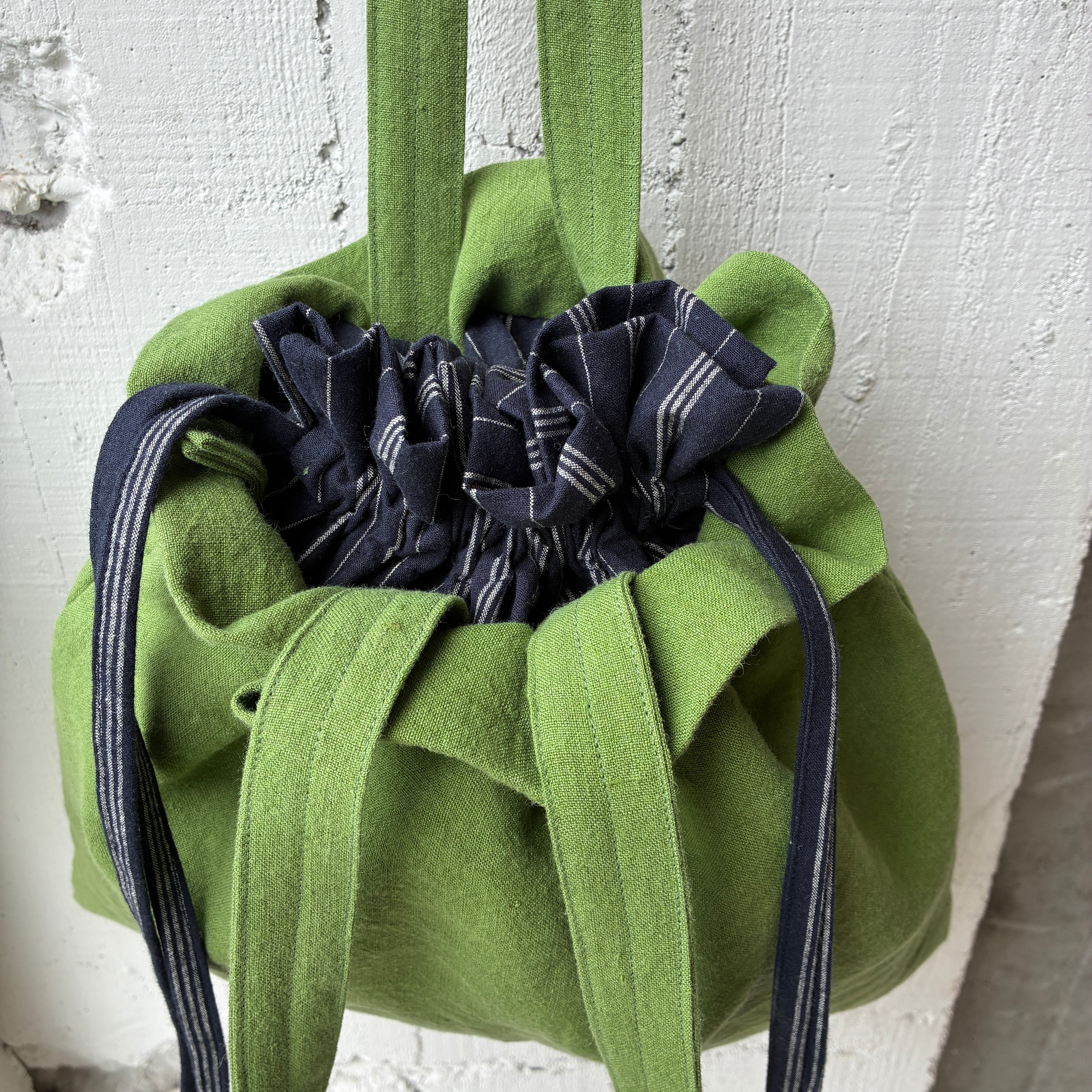 くったりリネンに、内側を巾着仕様にしたデザイン。