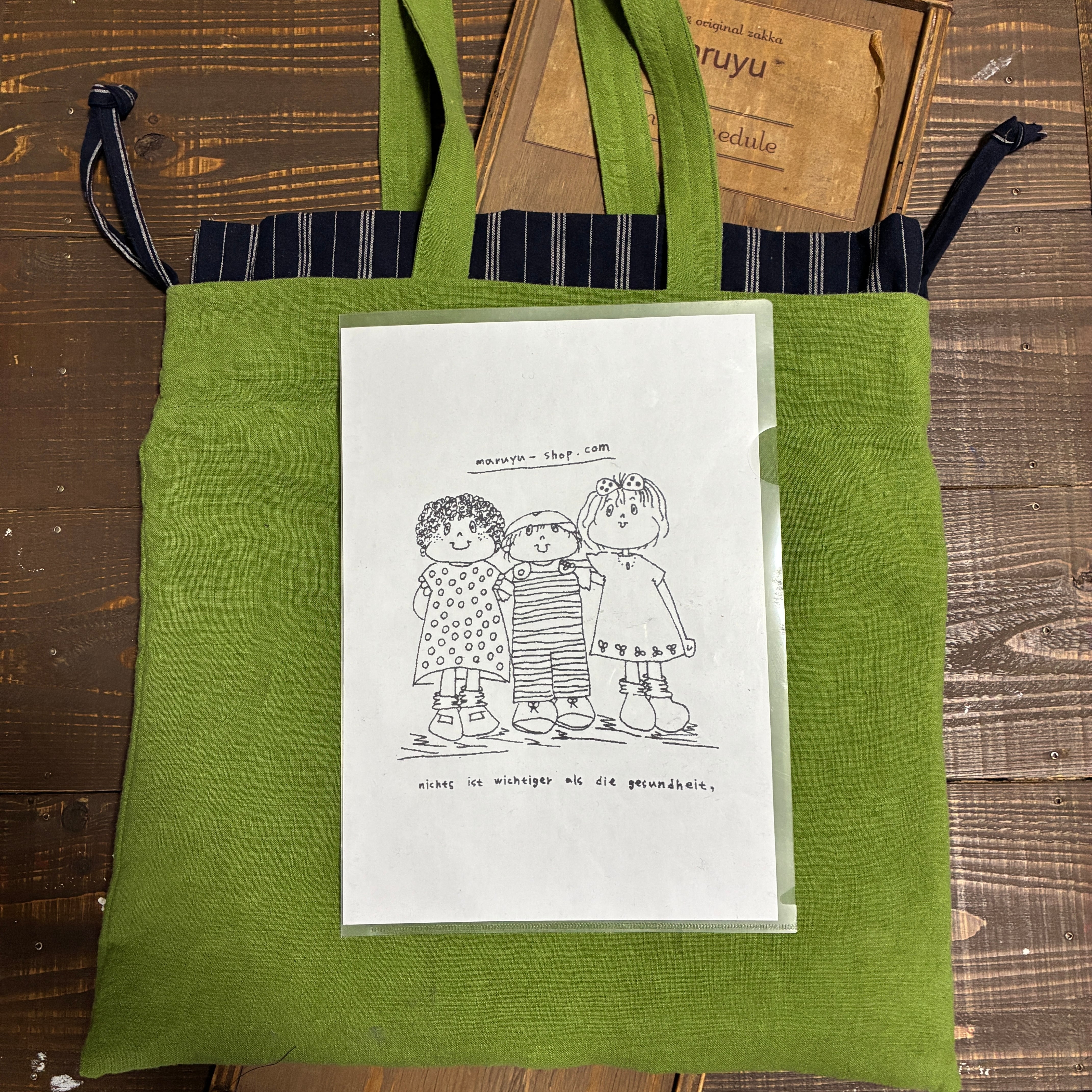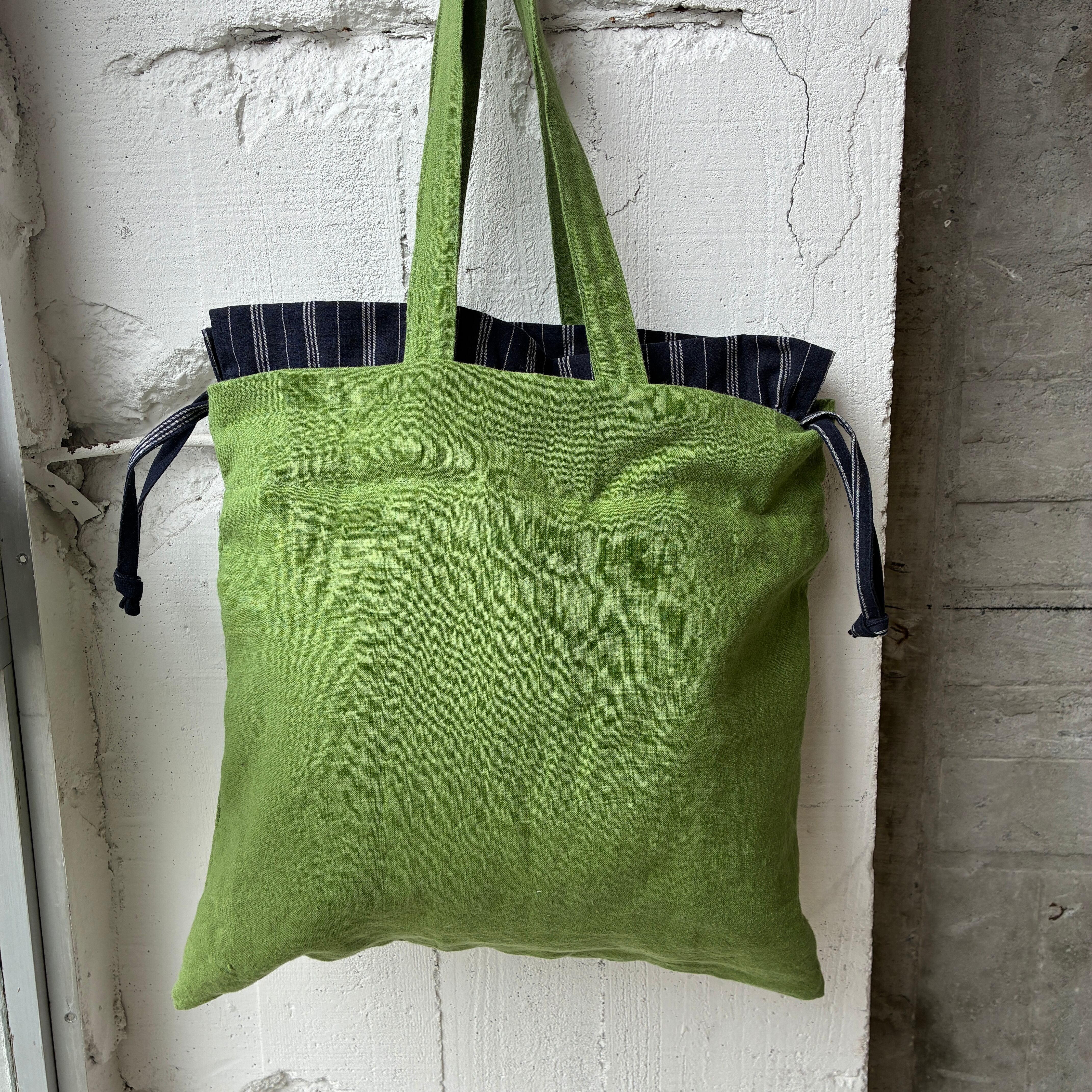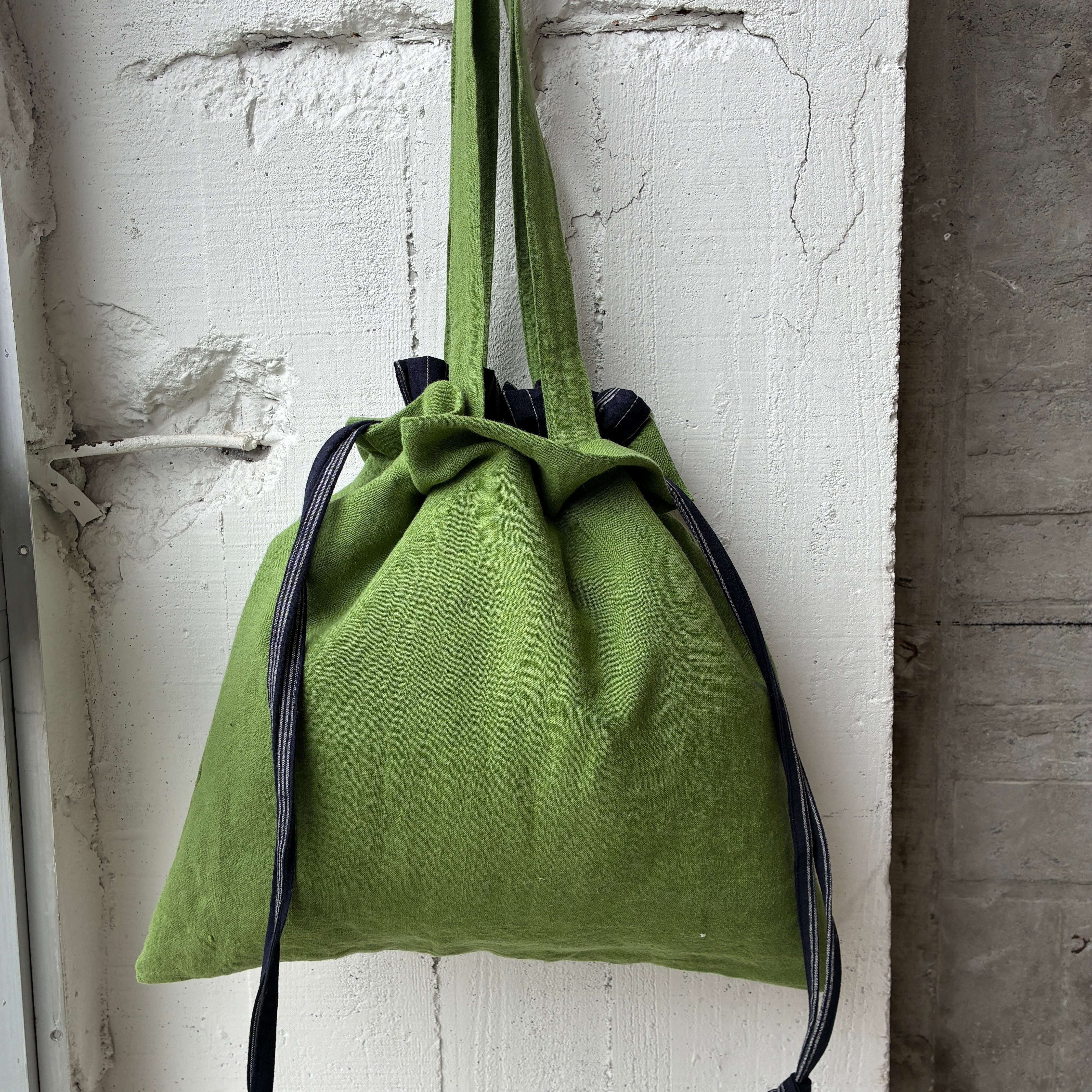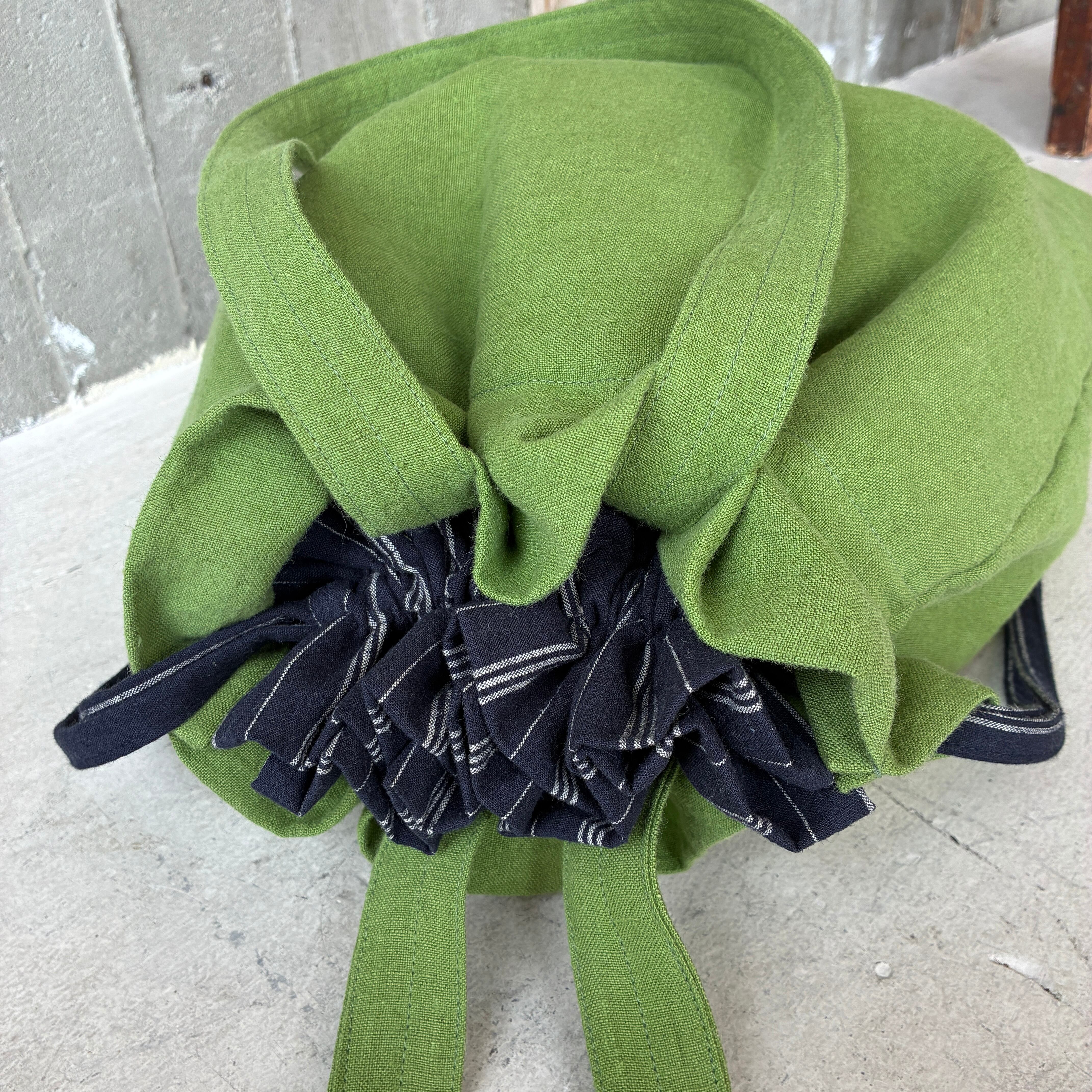 くったりリネンに、内側を巾着仕様にしたデザイン。