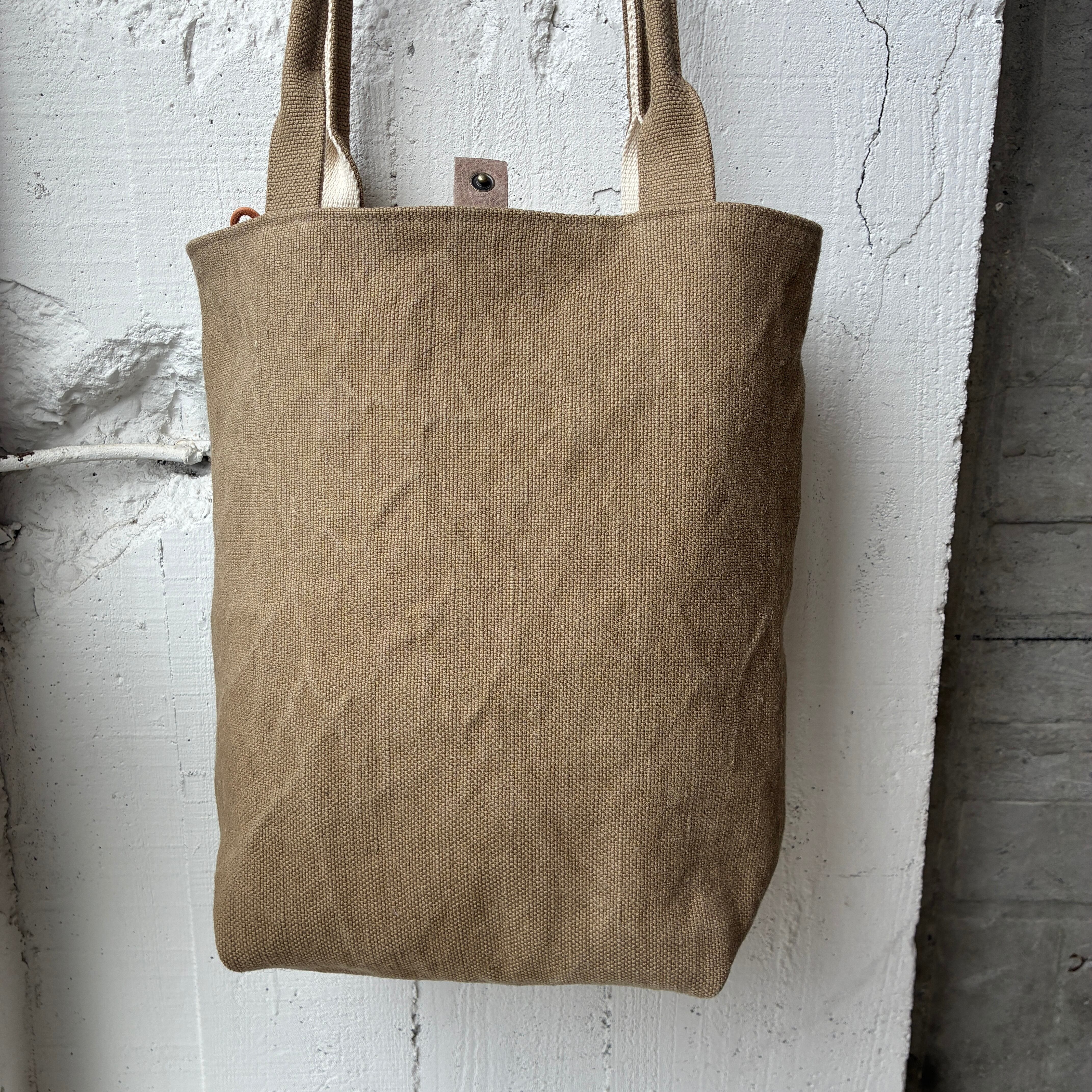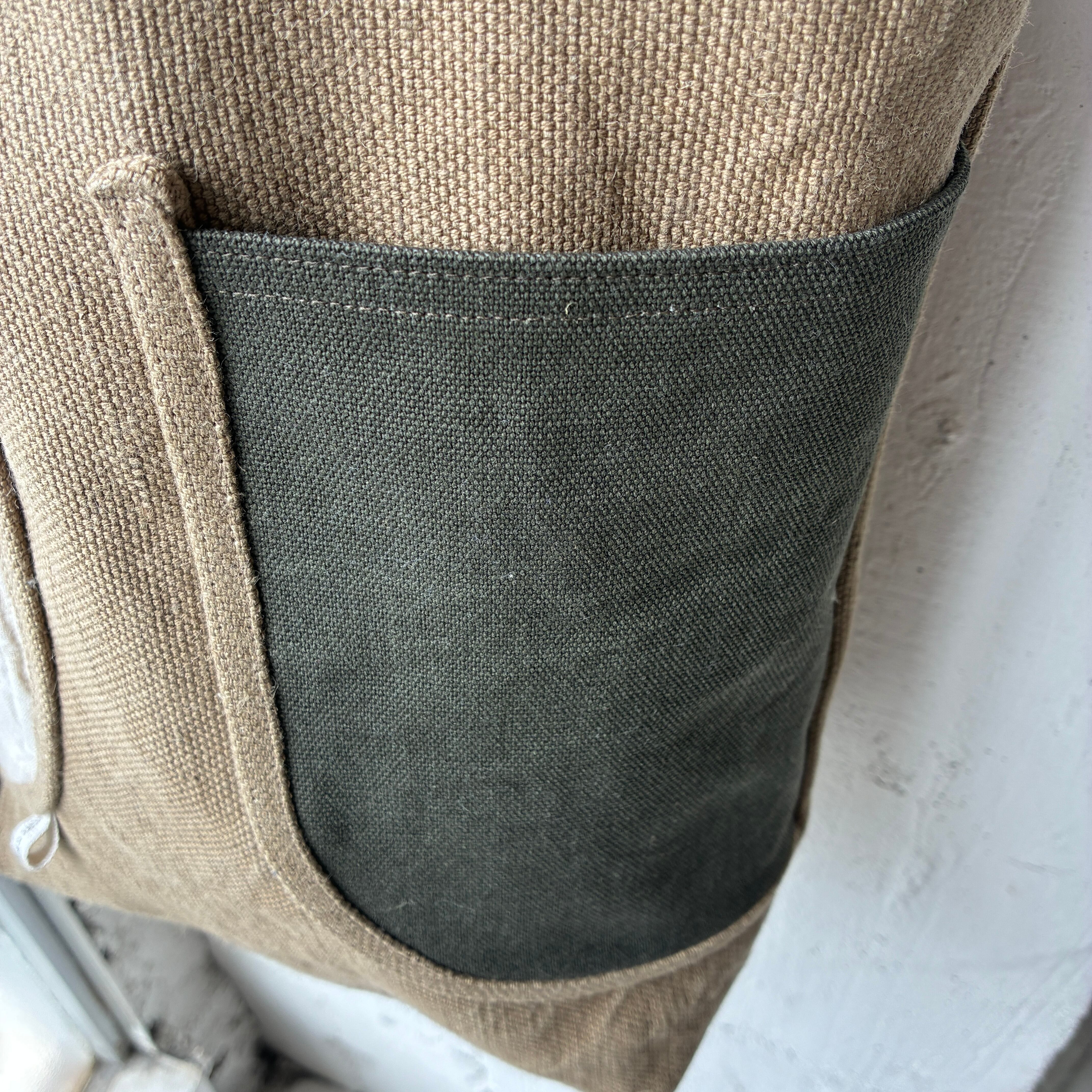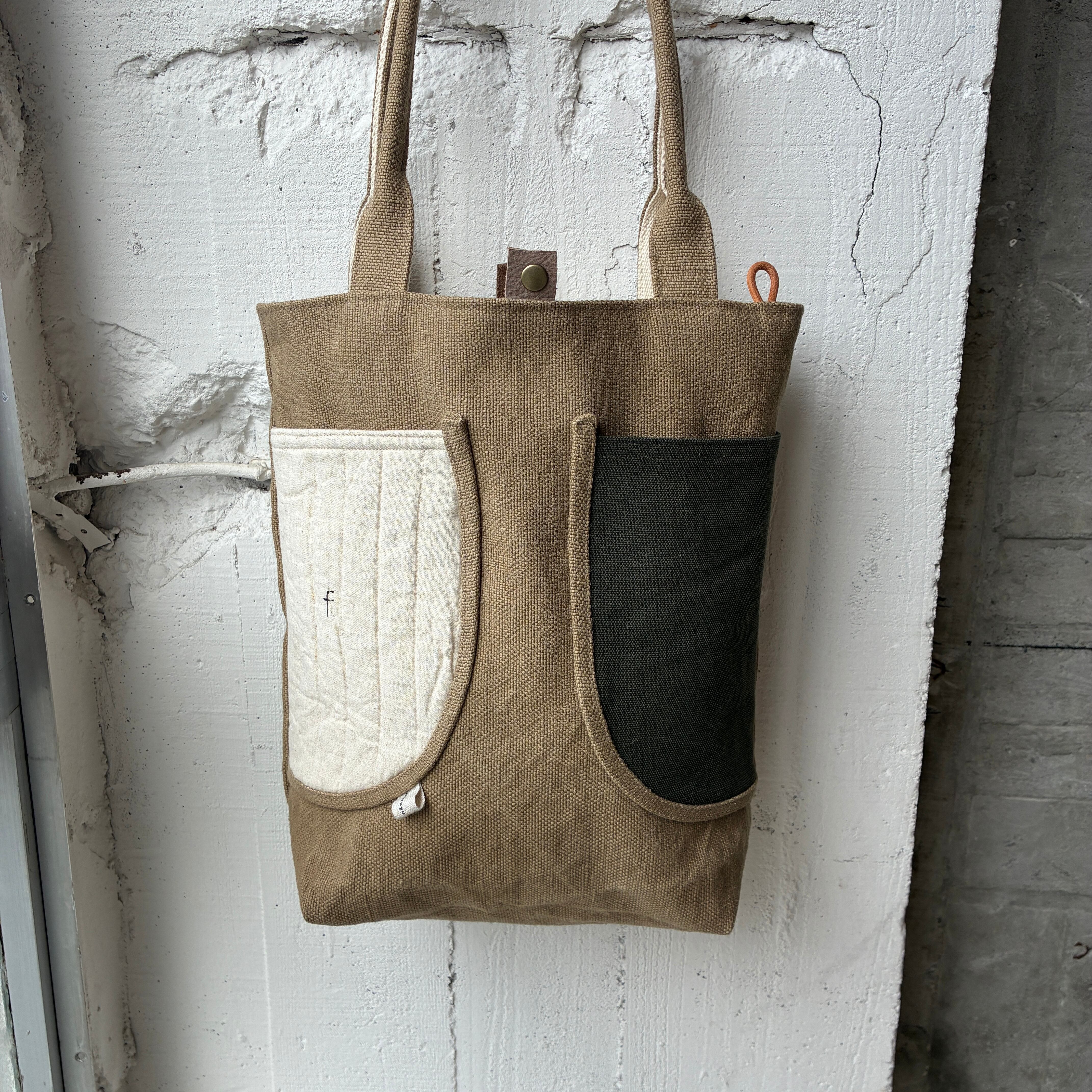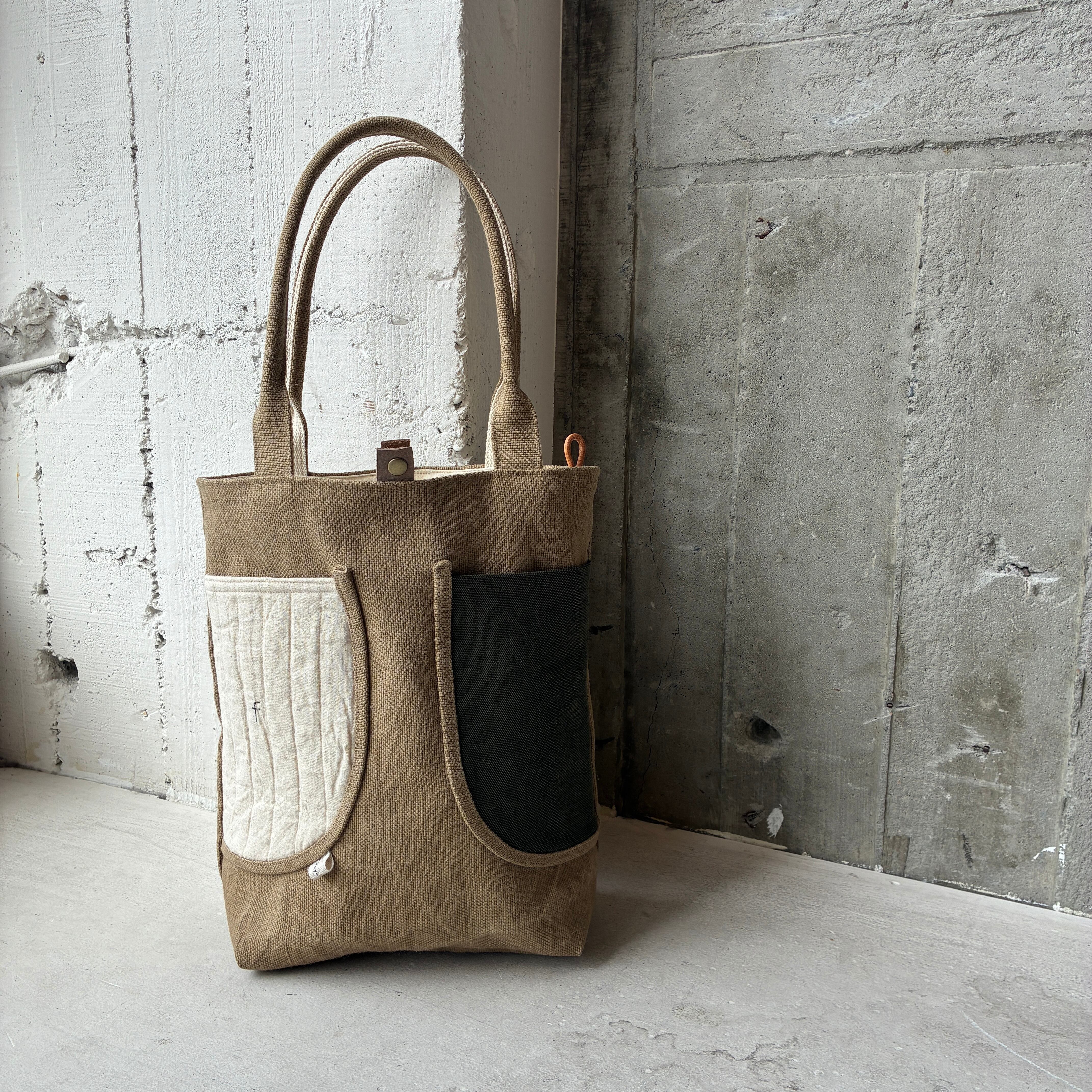 ジュートのしっかりとした質感をベースに、リネンのやわらかさを重ねたmaruyuで人気のポケット付きトート。
