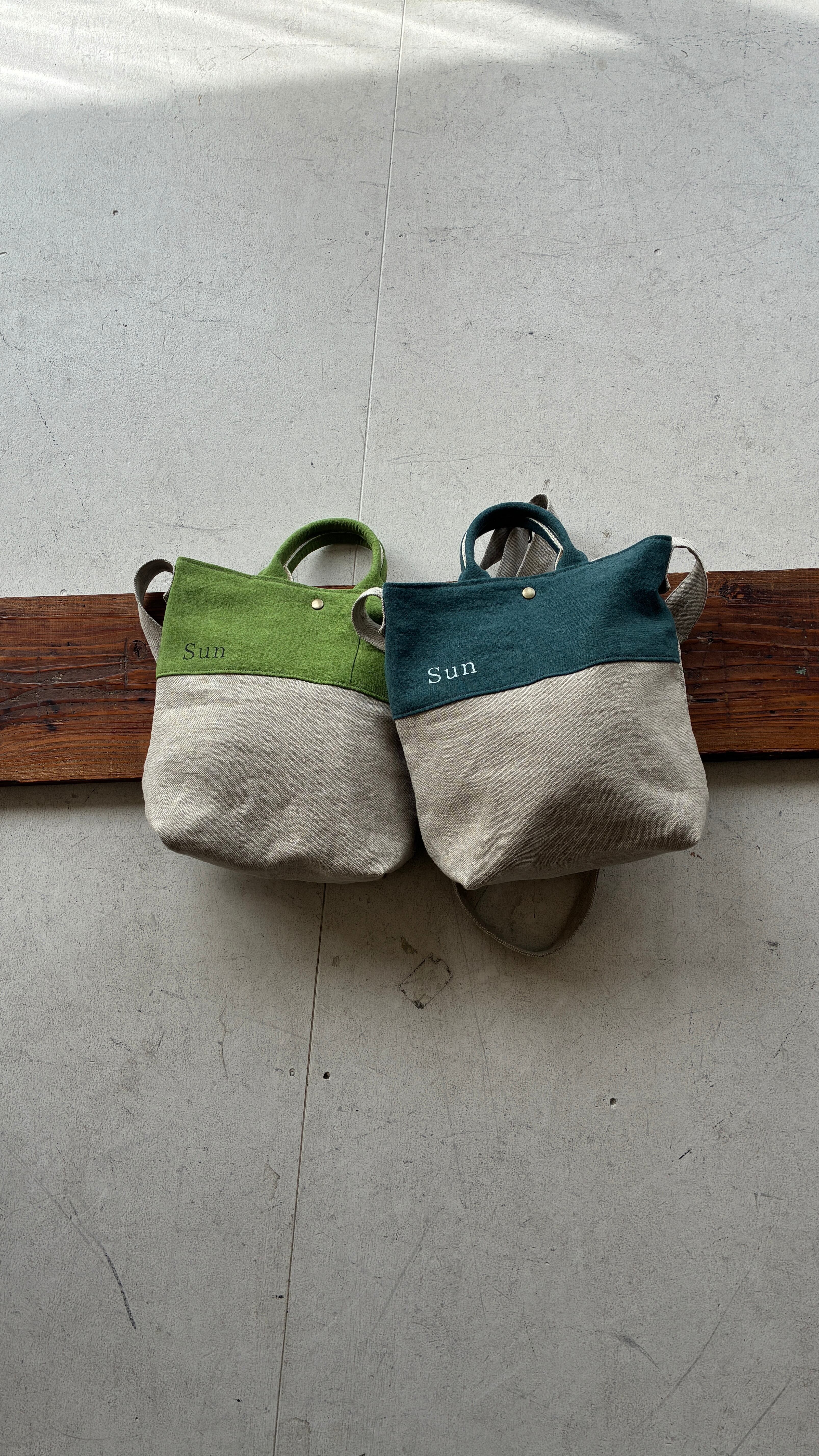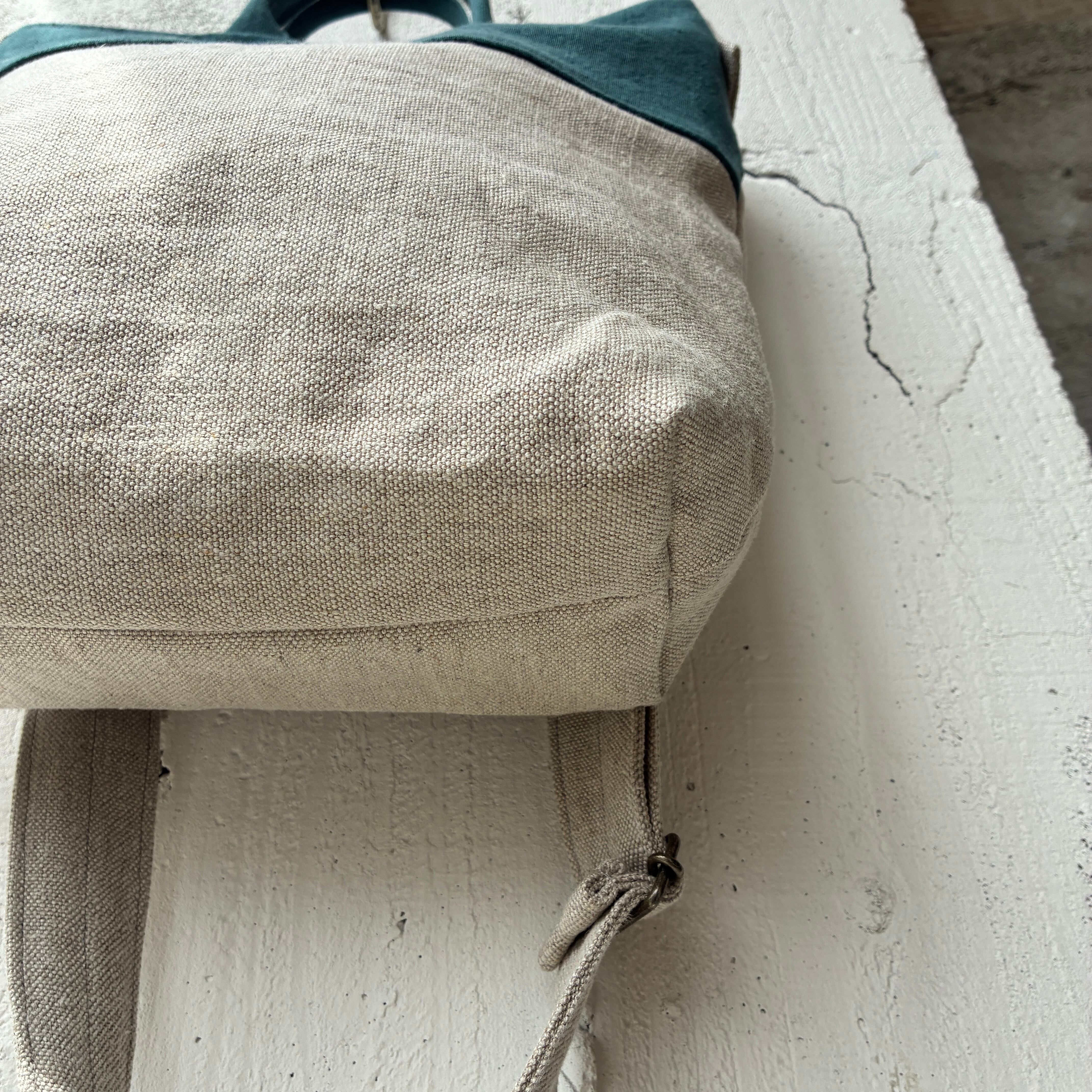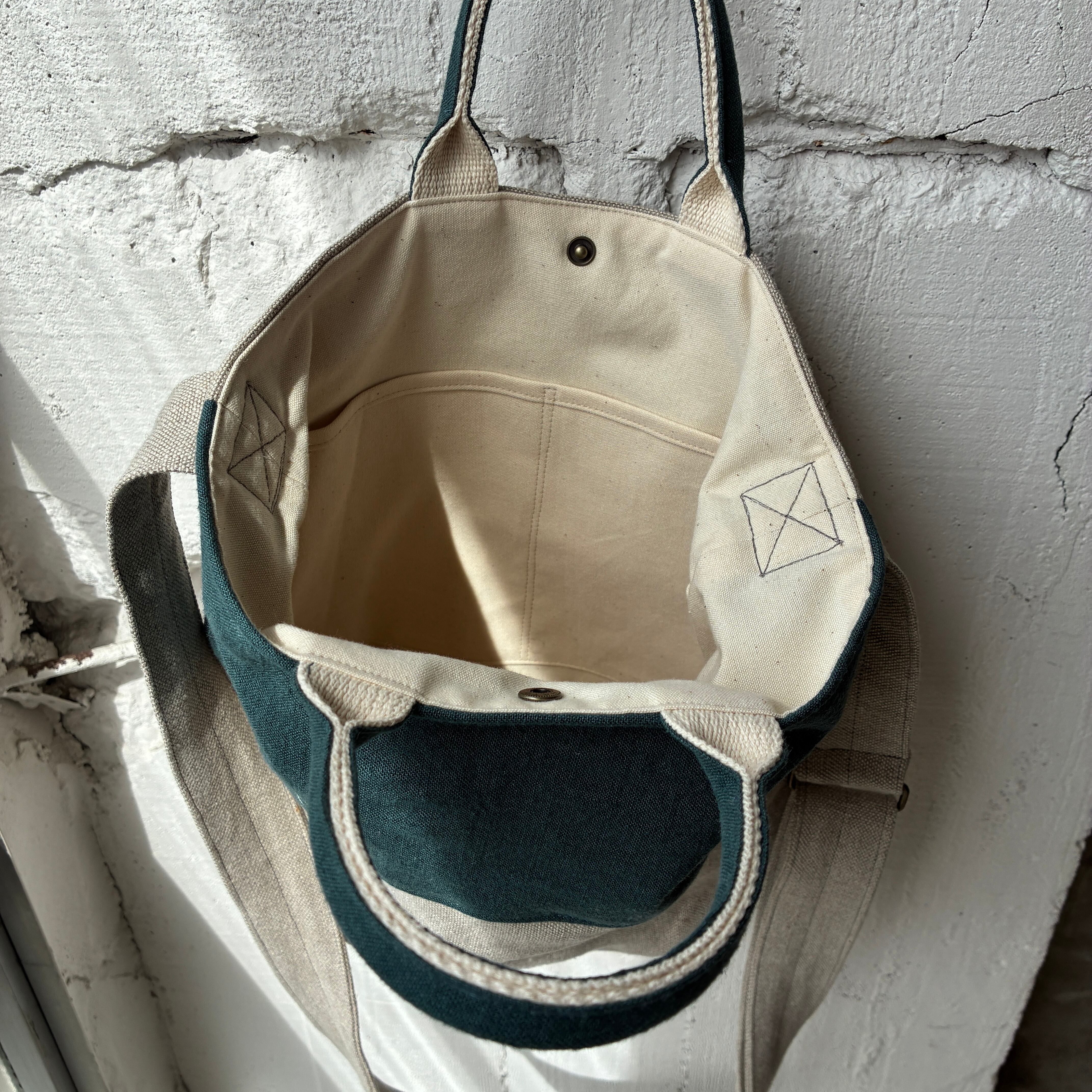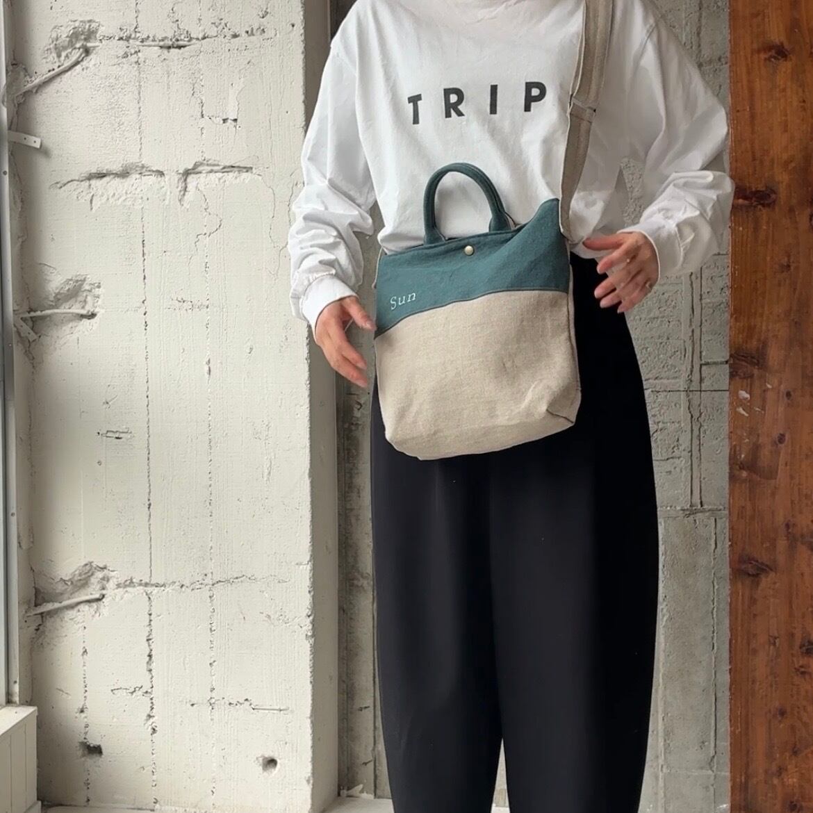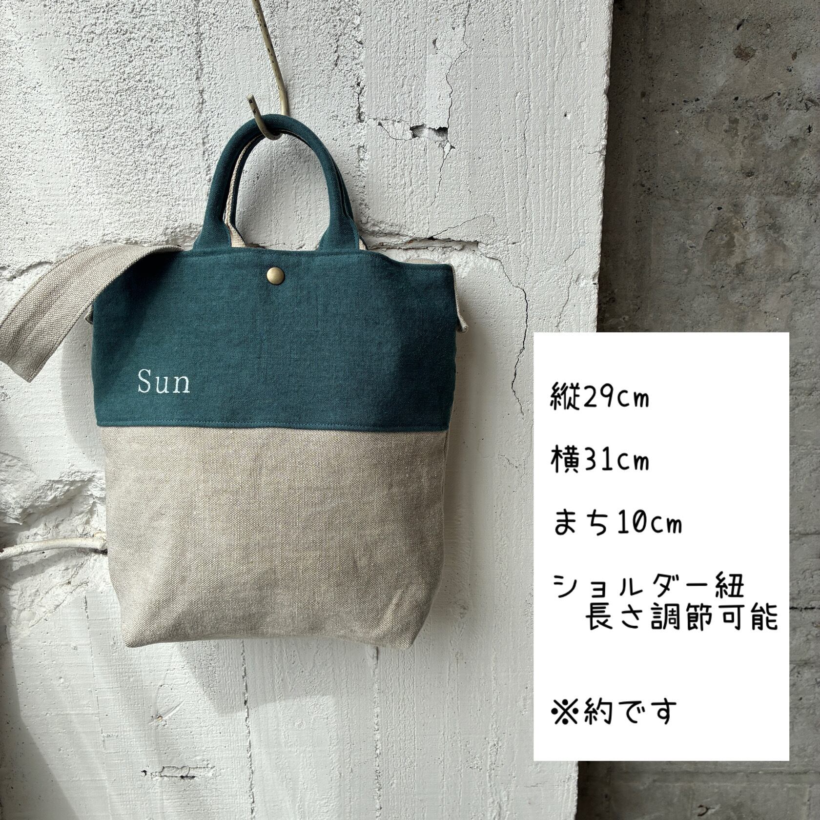 異なるlinen素材の組み合わせが楽しめる、切り替えデザインのショルダーバック