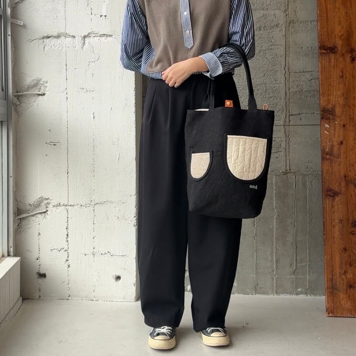 異素材ポケットの組み合わせが可愛い。