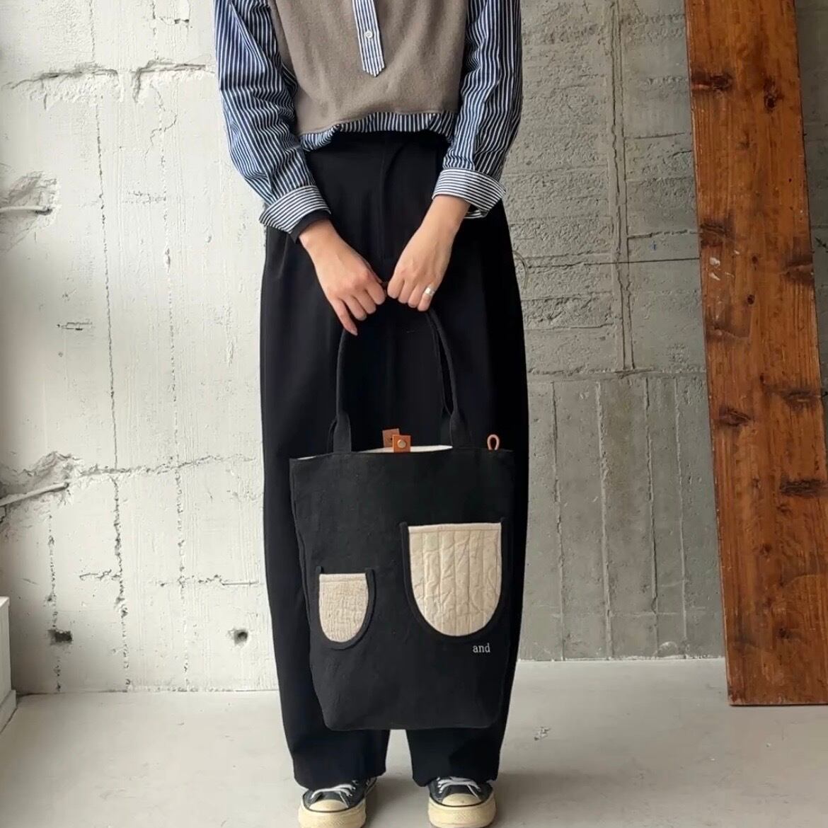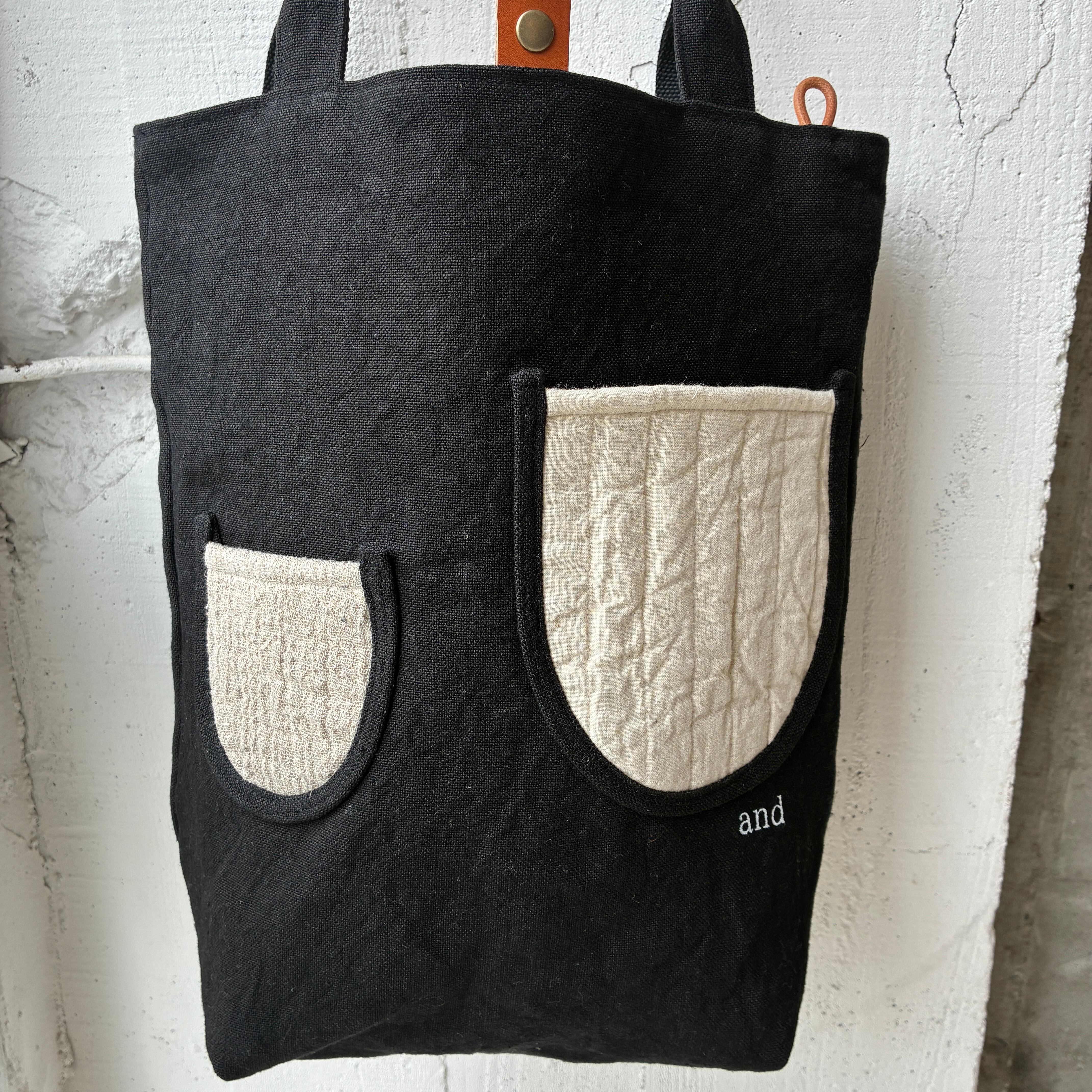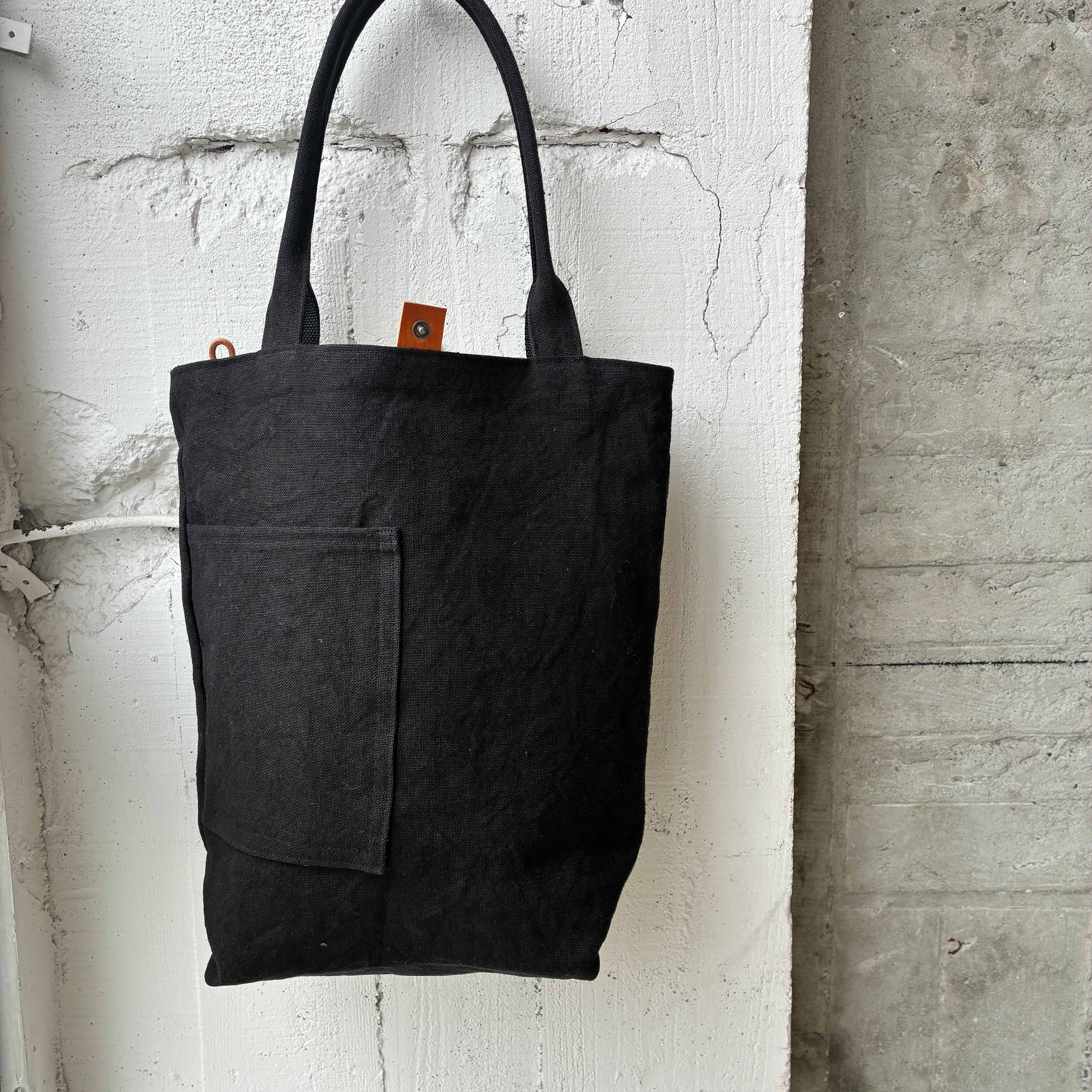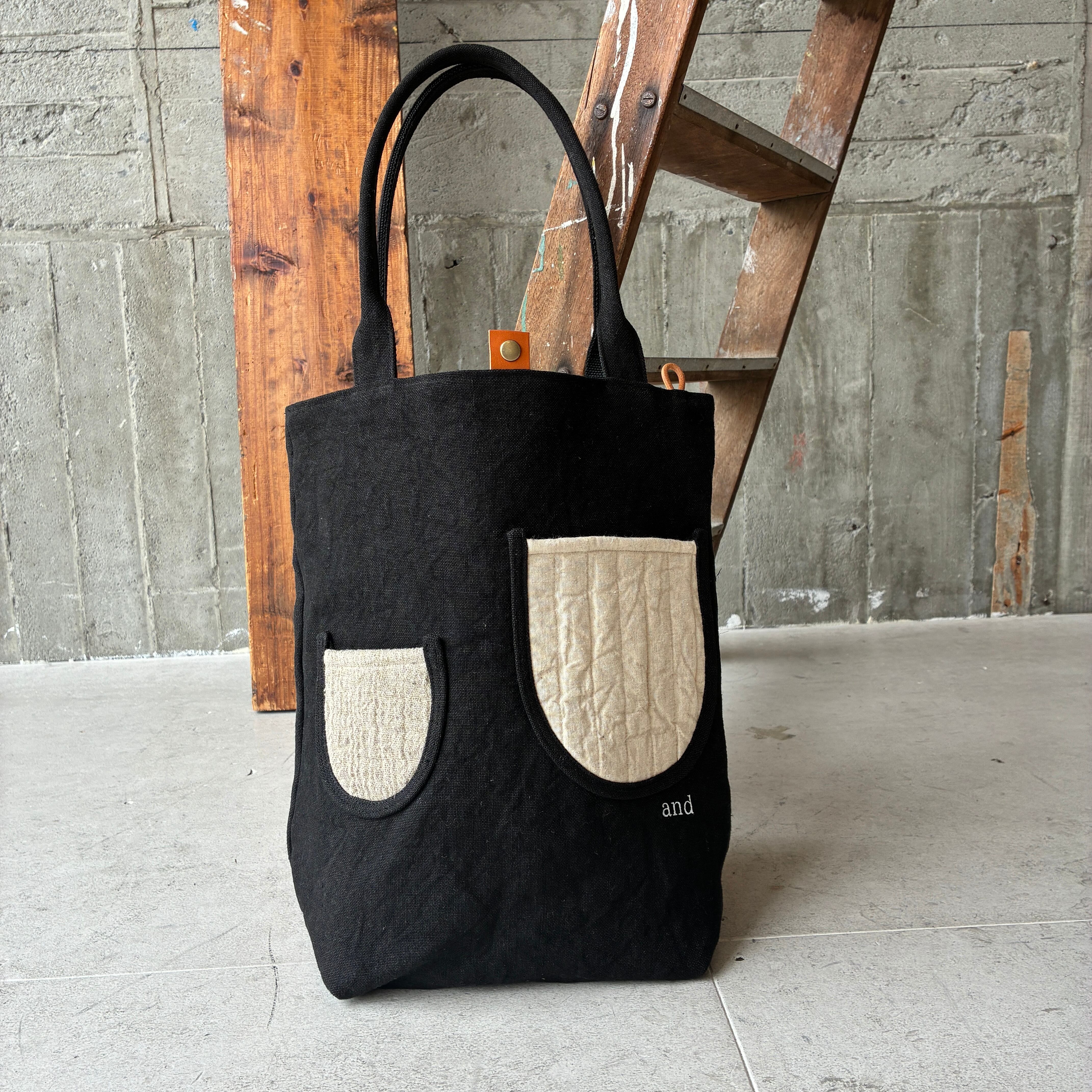 贅沢linen帆布を使用したポケットデザインが可愛い定番トート