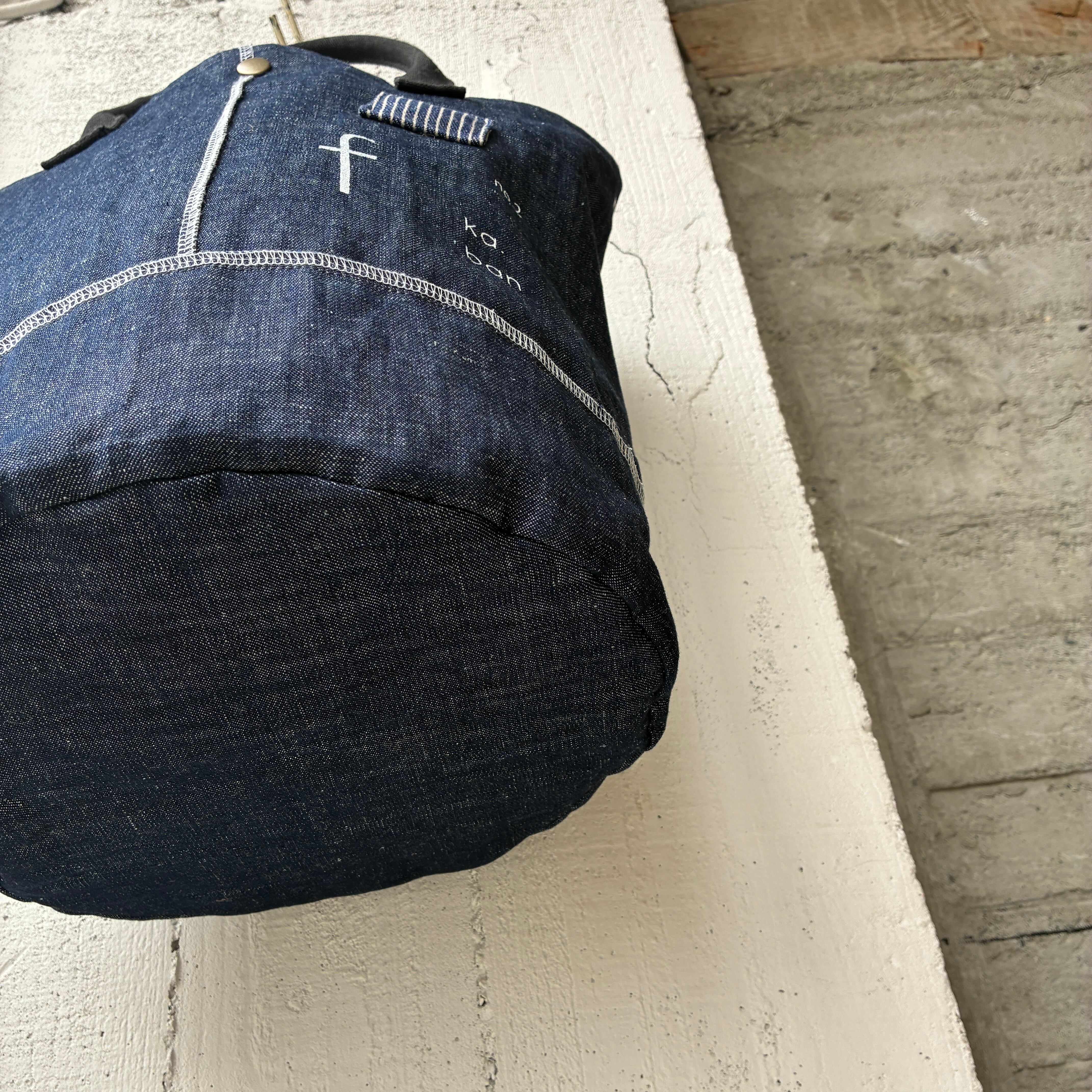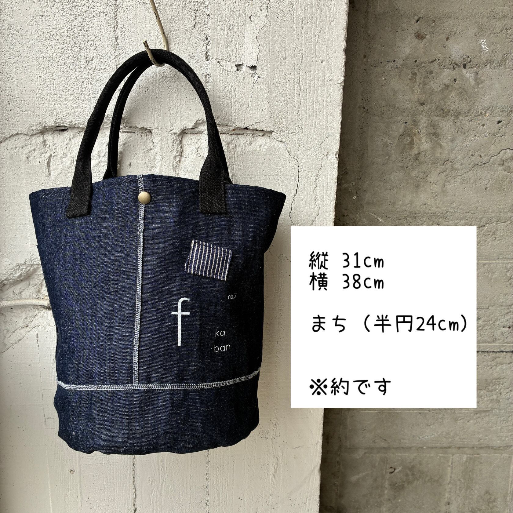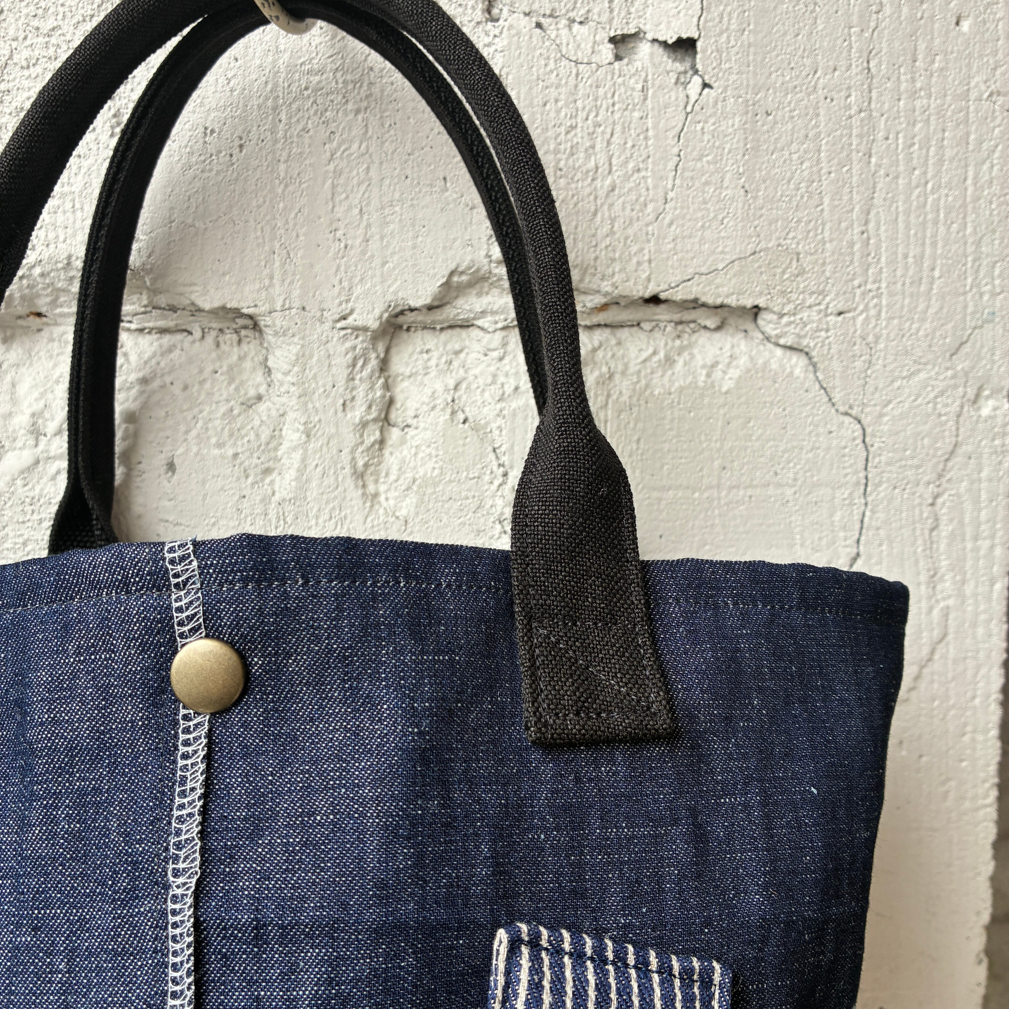 インディゴなので持ち手は違う生地を使用し製作しました。