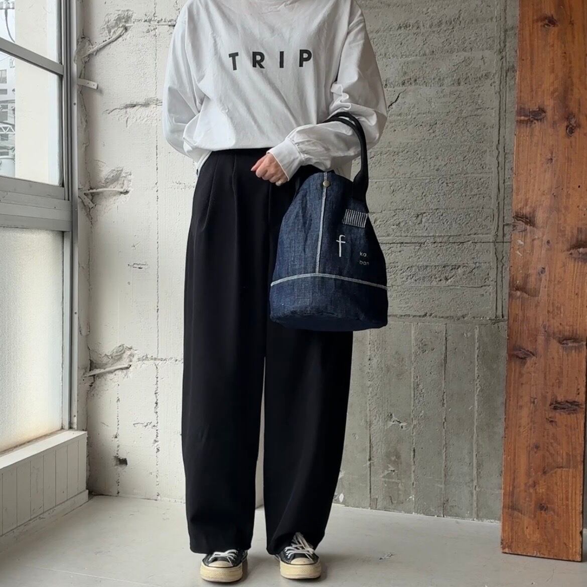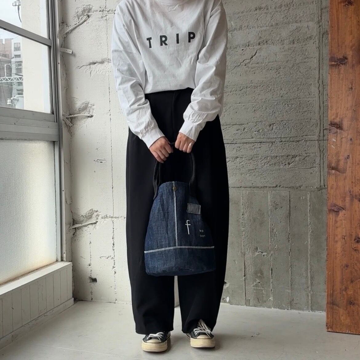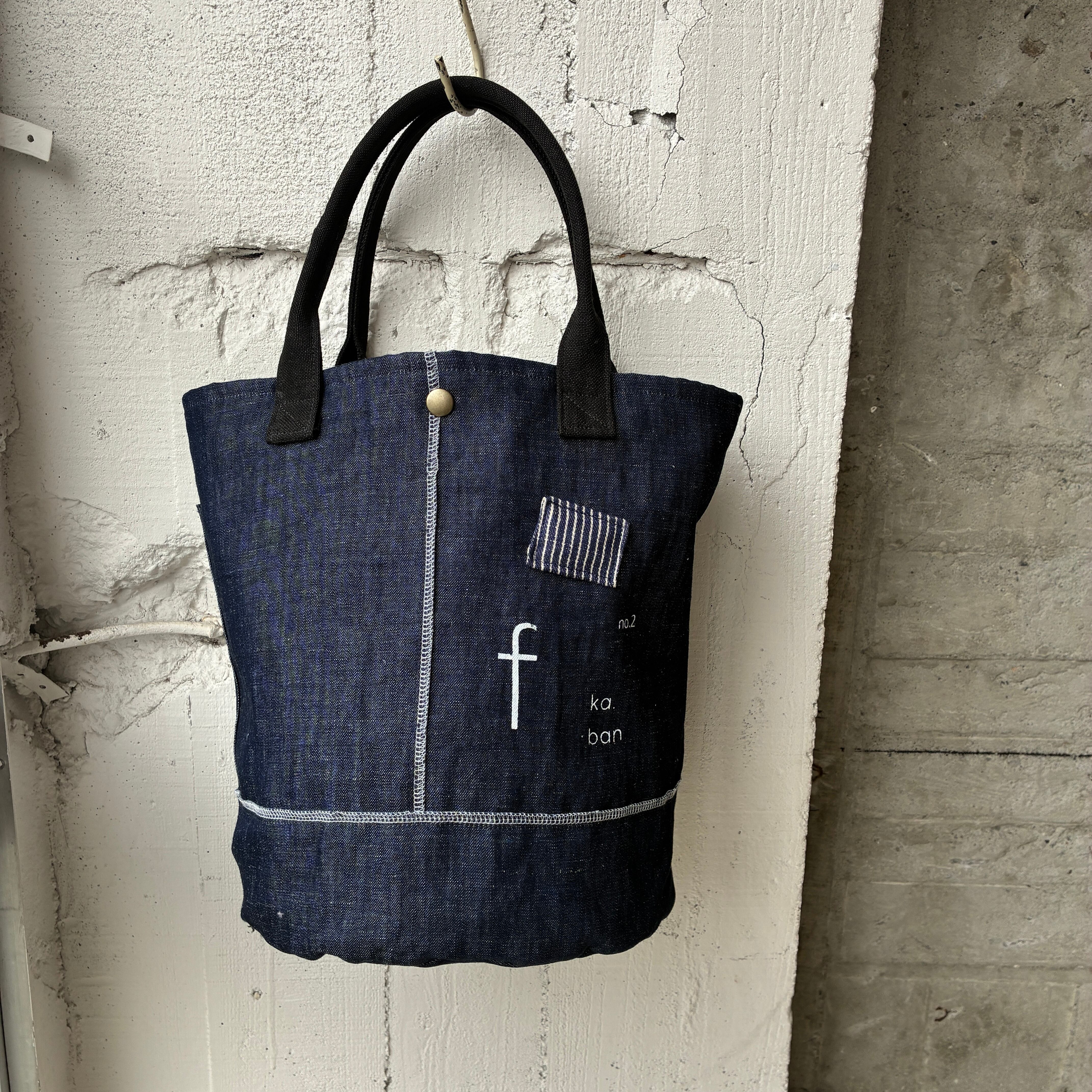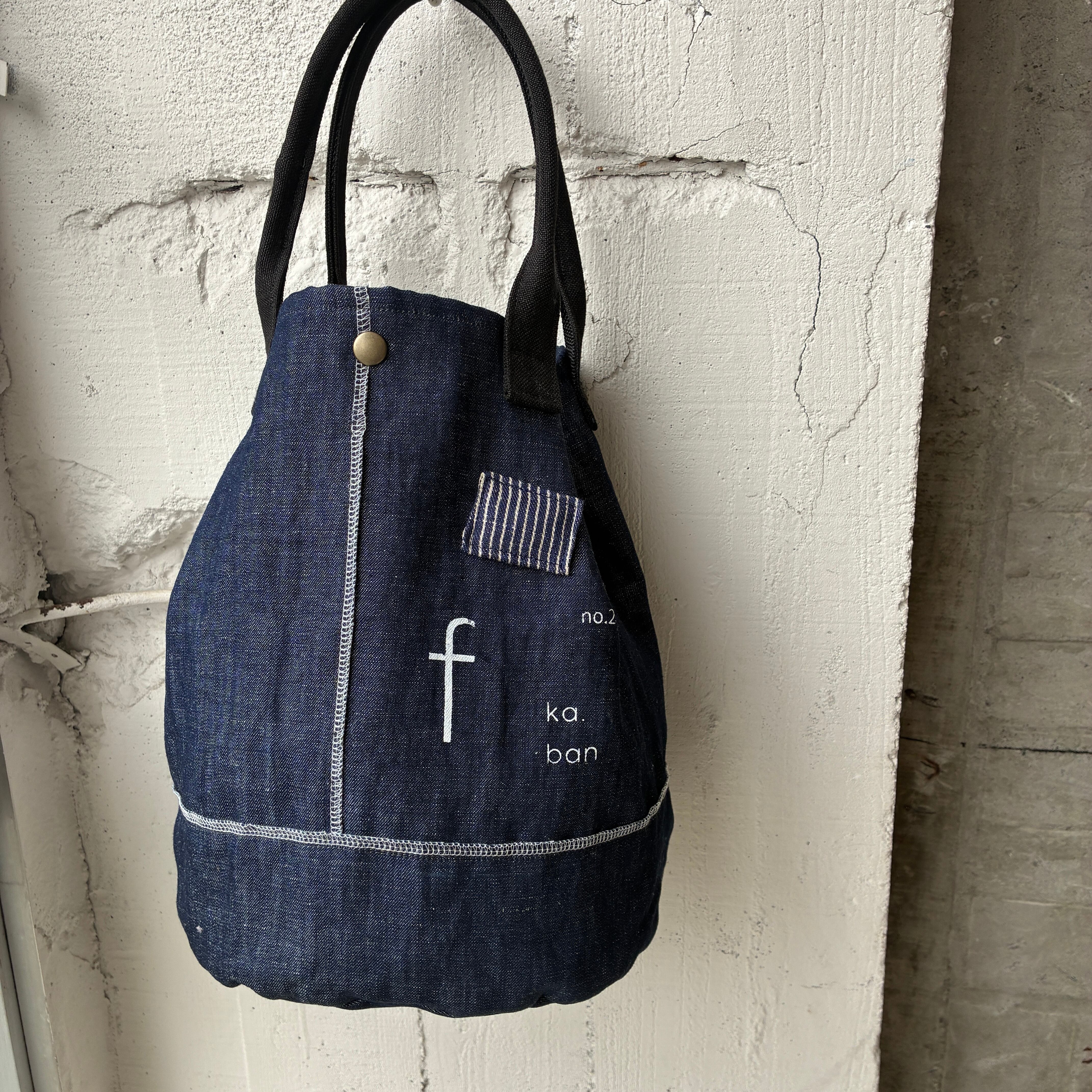 インディゴなので持ち手は違う生地を使用し製作しました。