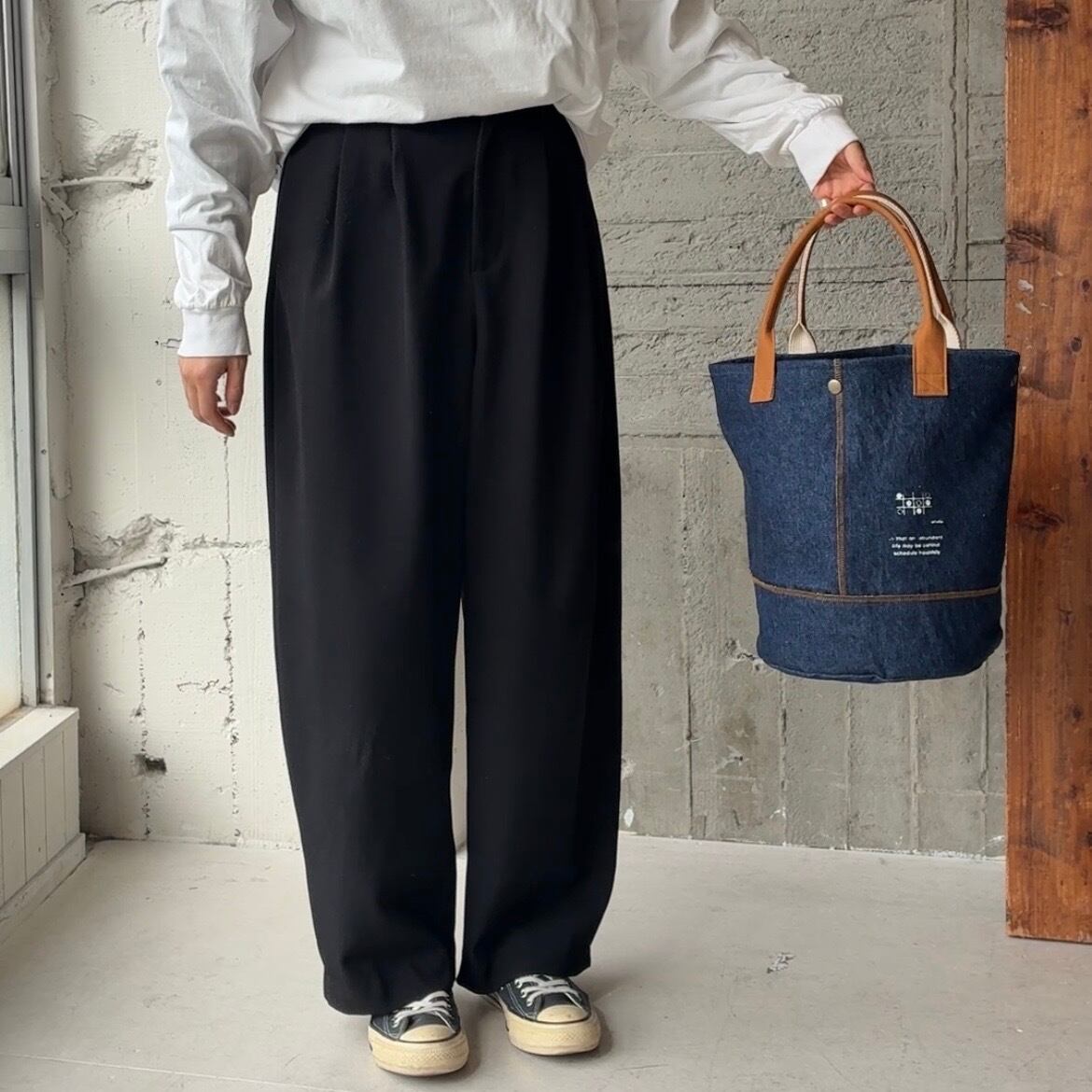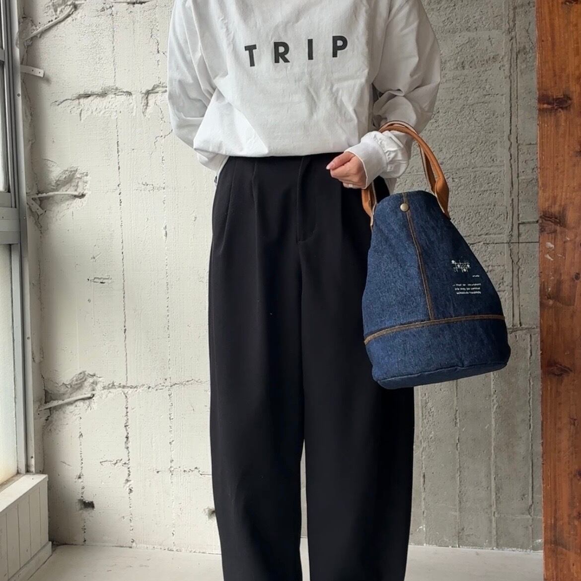 -maruyu- linen:cotton/denimドラムトート