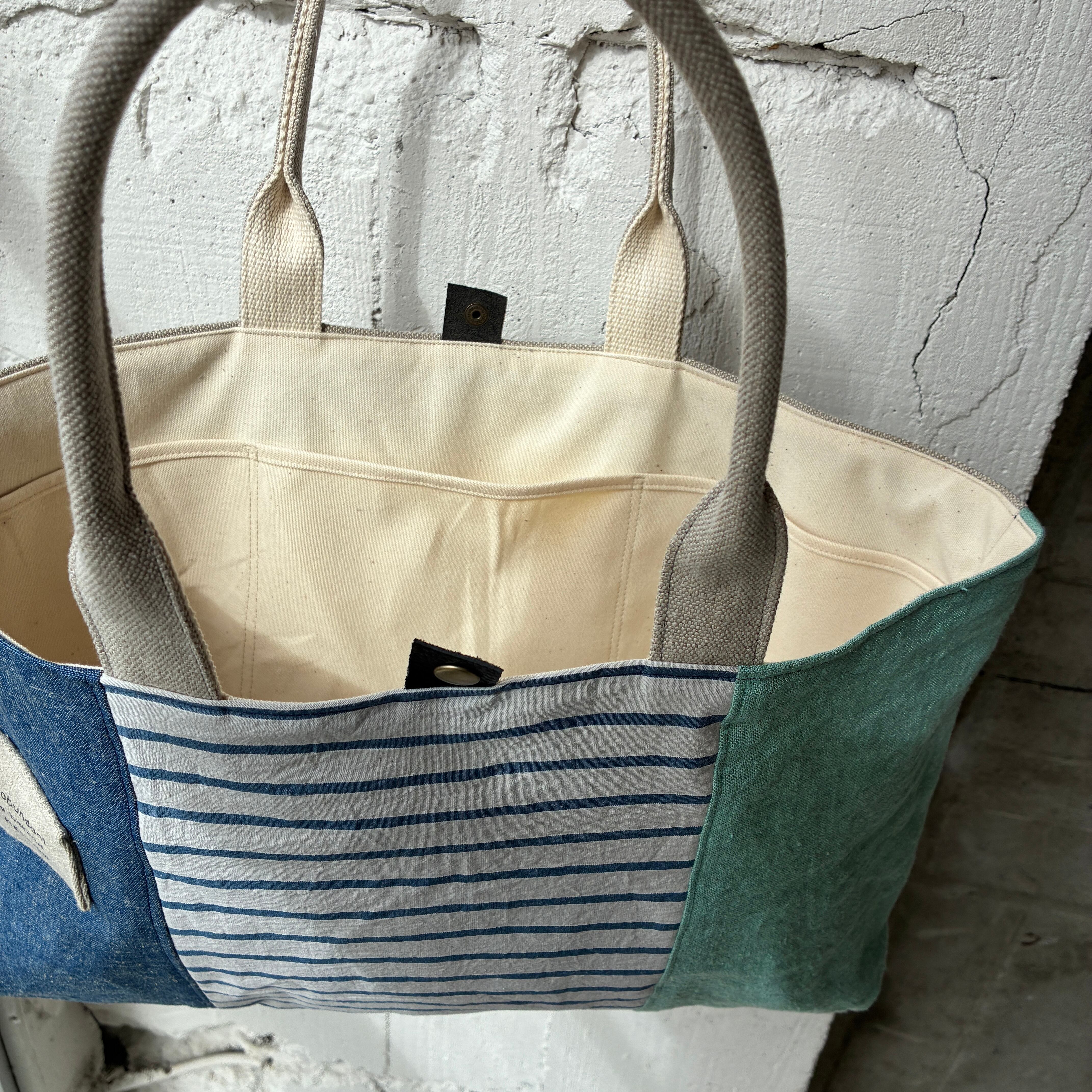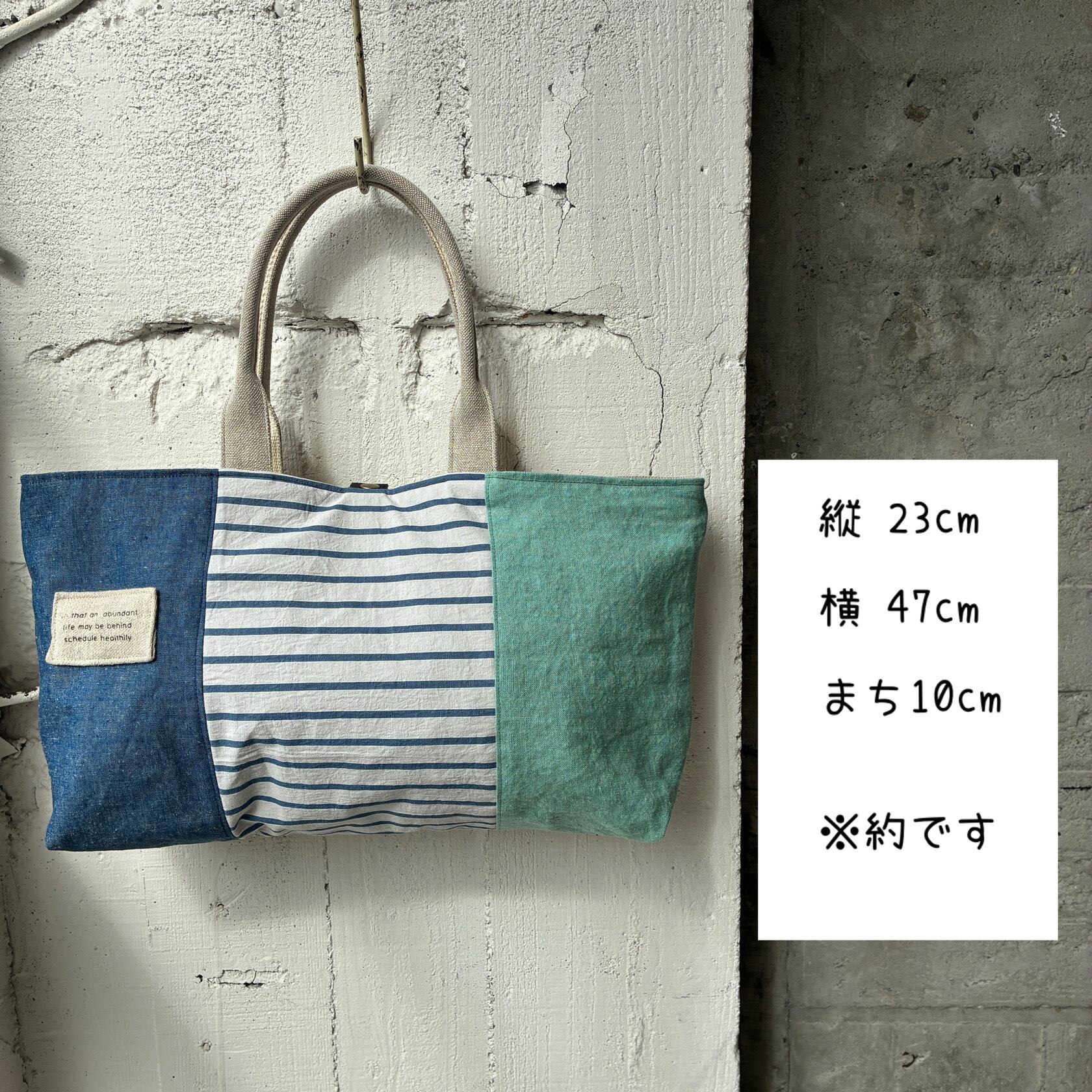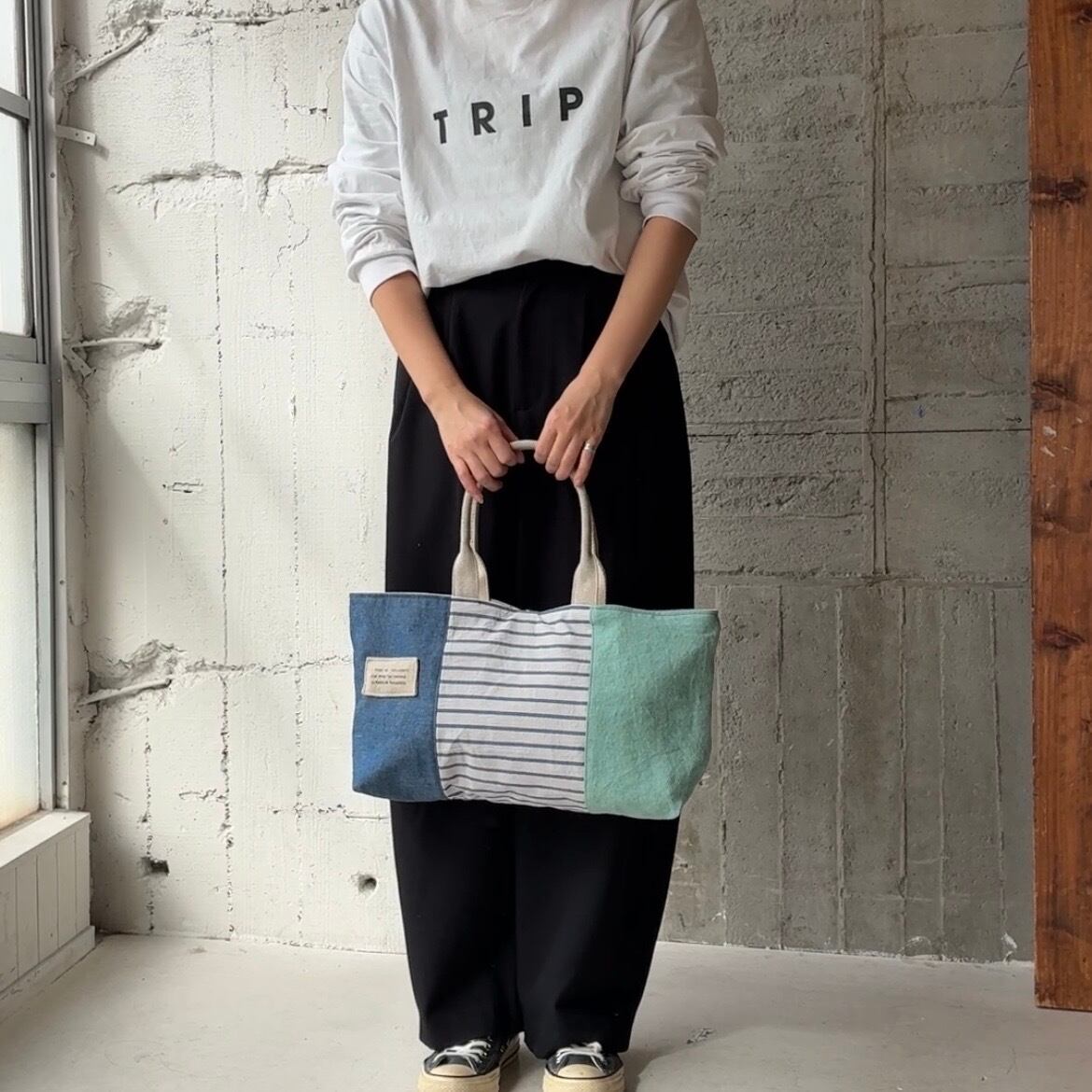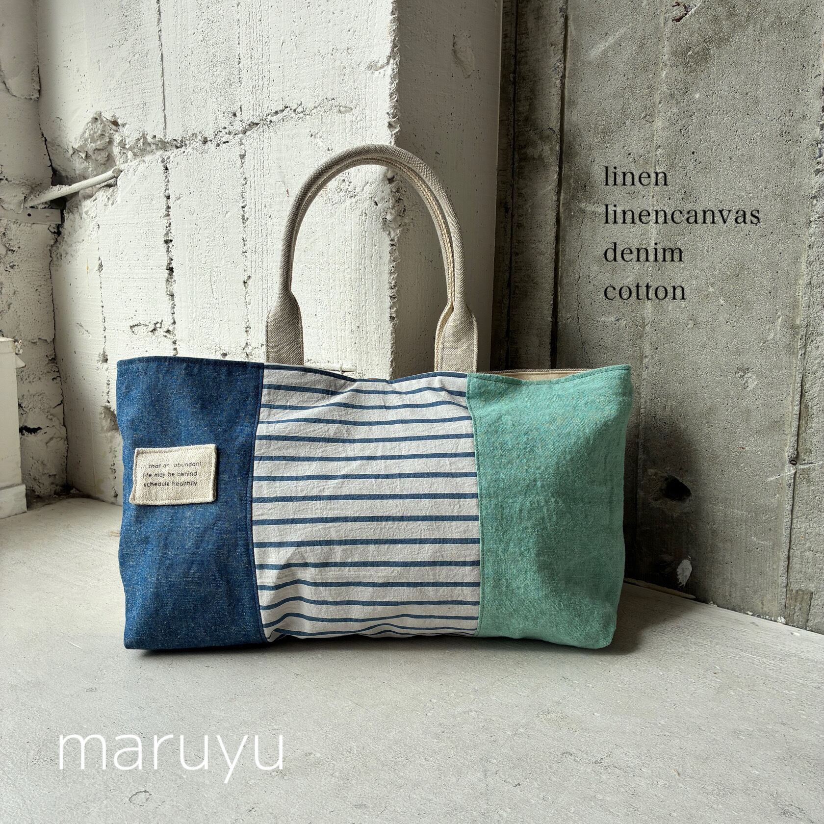 -maruyu- 異素材3パネル/横長トート