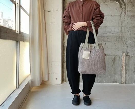 A4ファイルの入るサイズ感のゴムギャザーのトートです。