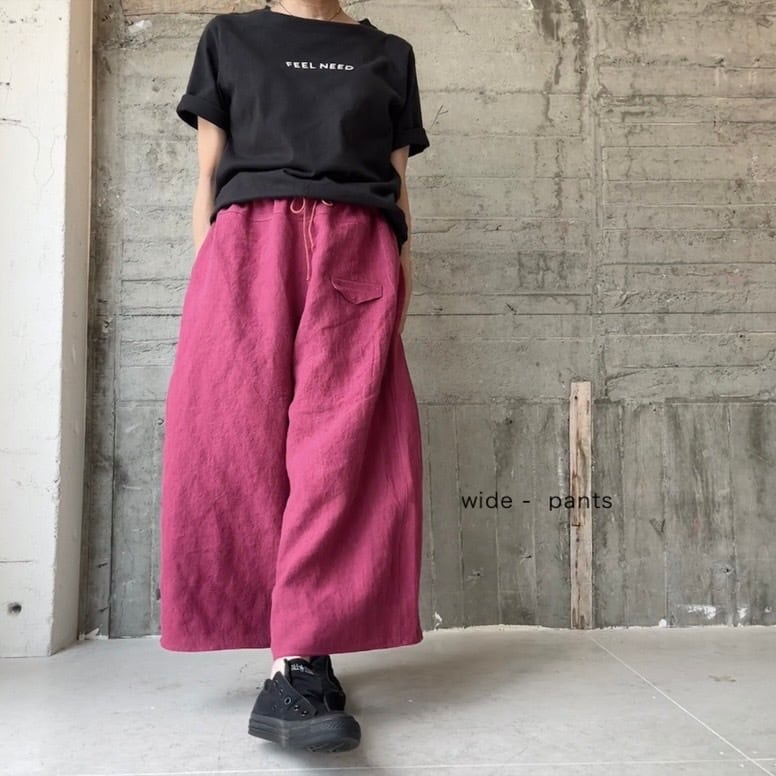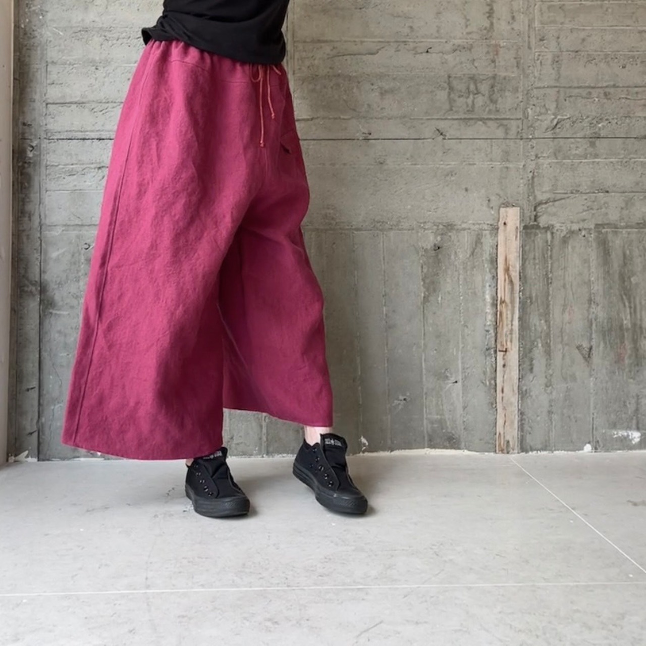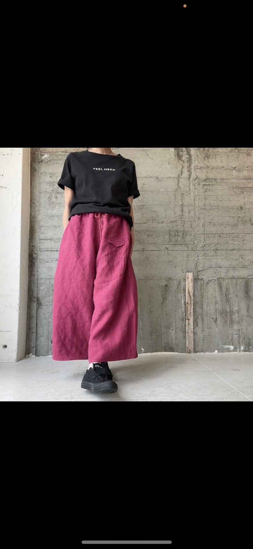 販売中のサルエルパンツ(チェリーピンク)と同じ素材のワイドパンツになります